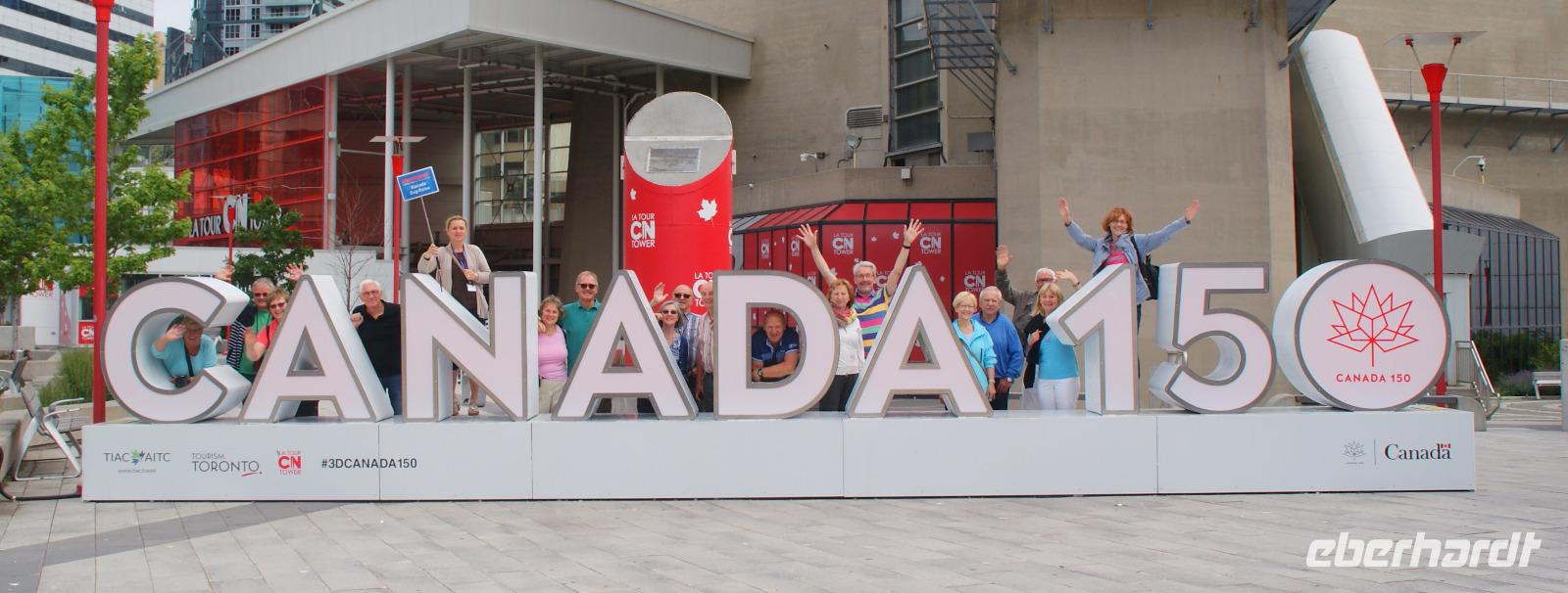 Leider müssen wir das schöne Ottawa und unsere quirlige Reiseleiterin Steffi verlassen und ziehen weiter mit dem „Corridor" nach Toronto. Erneut sitzen wir nun gemütlich im Zug und lassen die Landschaft an uns vorbeiziehen. Beeindruckt von der Freundlichkeit des kanadischen Zugpersonals, welches immer ein freundliches Wort und einen Spaß mit den Gästen bereit hält kommen wir Mittags in Toronto, welches am Ontario See liegt, an und werden von unserer neuen deutschen Reiseleiterin Barbara und Busfahrer Poobal aus Sri Lanka erwartet. Zunächst machen wir eine idyllische Mittagspause im Destillery District, einer ehemaligen Schnapsbrennerei, die nun in historischer Fassade Gastronomie und Verkaufsläden bereithält. Danach folgt ein Fotostopp am „Bügeleisengebäude" und dem St. Lawrence Market. Barbara zeigt uns die Younge Street, die an der Waterfront beginnt, unglaubliche 1896 Km lang ist und in Rainy River endet. Vorbei geht es am Royal York Hotel, welches bis in die 60er Jahre das höchste Gebäude der Stadt war und heute zwischen den Hochhäusern eher unscheinbar wirkt. Wir amüsieren uns über den Trump Tower, der extra noch eine Antenne errichtet bekam um somit höher zu sein als die danebengelegene Scotia Bank. Einen weiteren Fotostopp legen wir am Nathan Philips Square ein und viele schöne Fotos entstehen vor dem „Toronto" Schild, dazu ein toller Blick auf das neue Rathaus. Weiter geht es entlang des Universitätsviertels und durch China Town. Nachdem uns Barbara noch unzählige Highlights Torontos zeigt, fahren wir in den Industriehafen, von wo wir einen tollen Blick auf die Skyline Torontos haben. Am Abend erfolgt ein kleiner Spaziergang zum Hot House, in dem wir vorzüglich speisen und einen geselligen Abend verbringen werden....