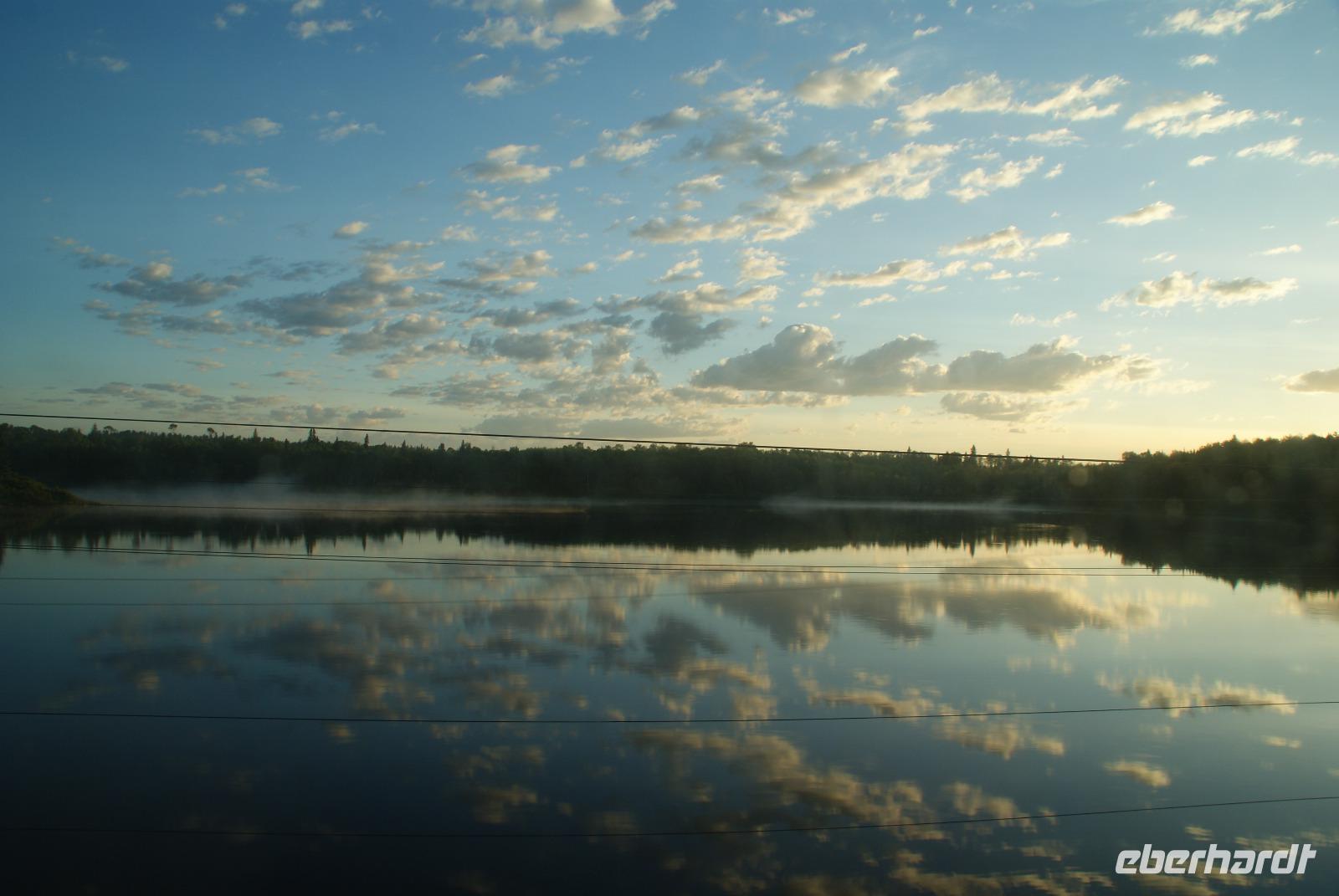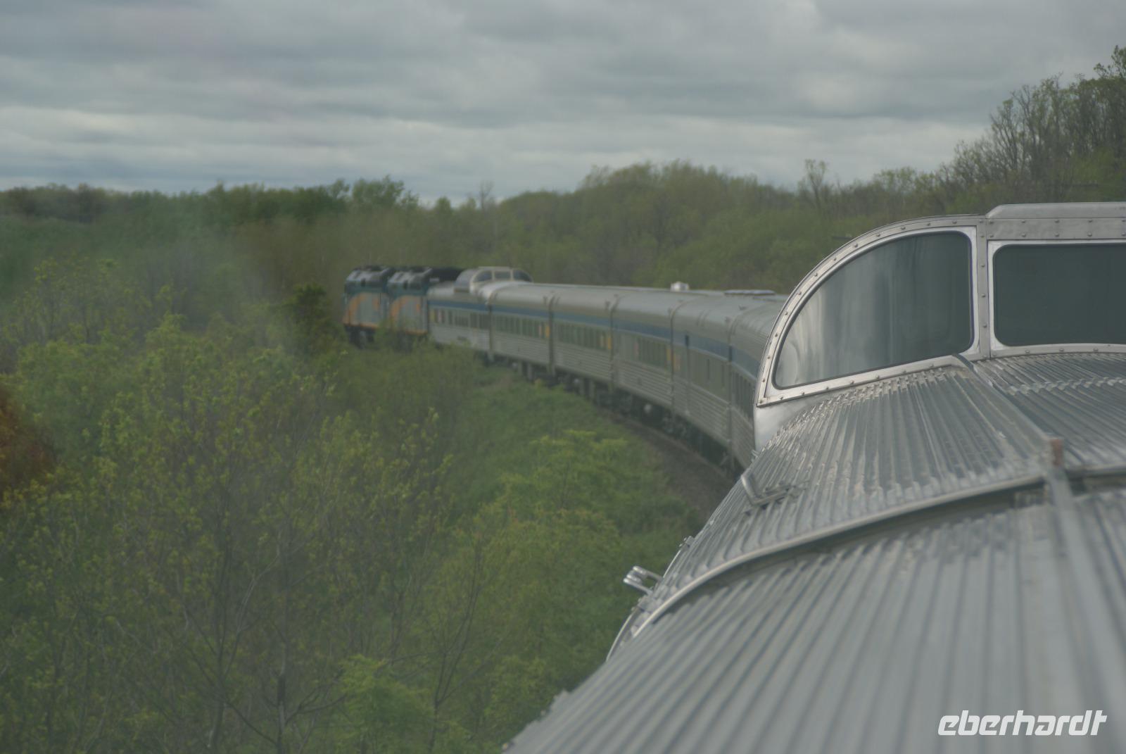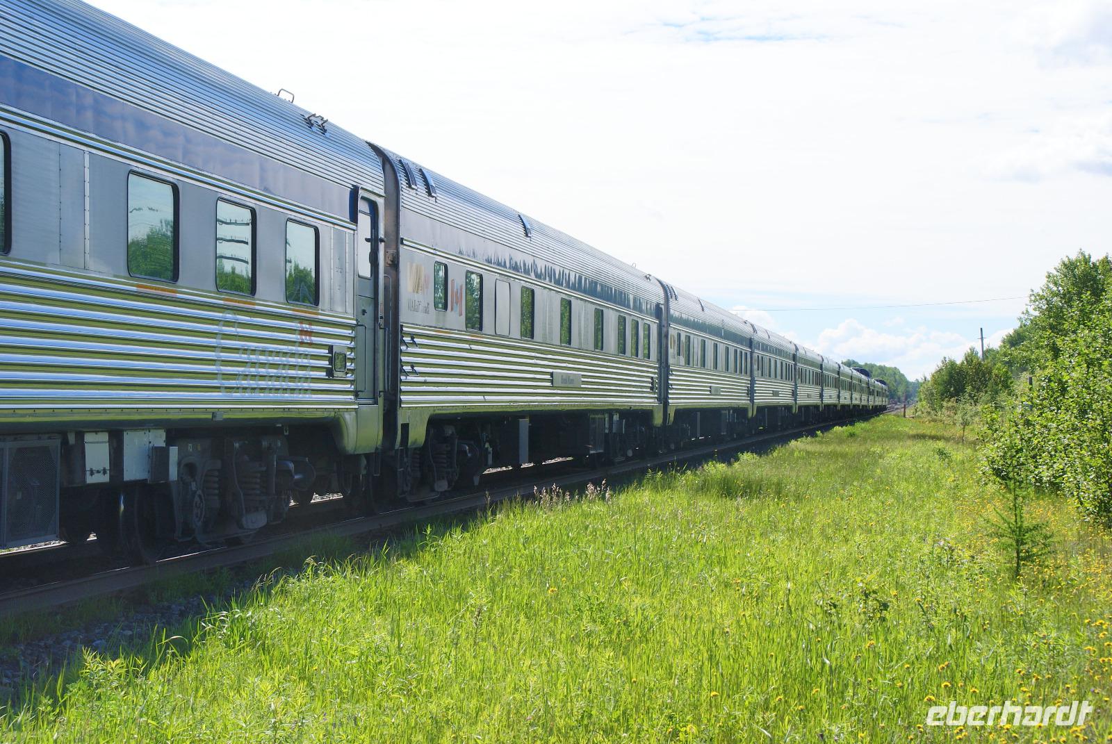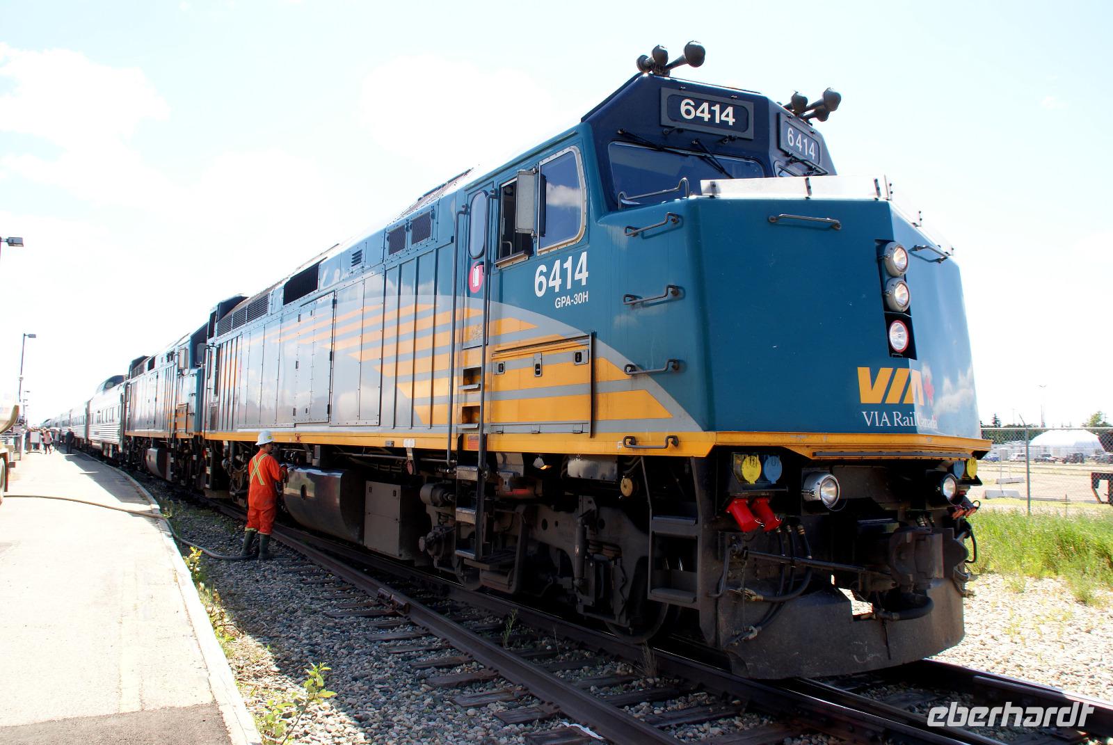 Als wir morgens in unseren Betten wach werden, erschleicht uns das Gefühl, dass wir irgendwie noch nicht so weit sind, wie wir eigentlich sein sollten. Leider bestätigt sich diese Vermutung und bedingt durch einen Zugunfall vor uns auf der Strecke hängen wir beachtliche Stunden. Wir gewöhnen uns an den Gedanken- was bleibt uns übrig. So genießen wir weitere Stunden an Bord und lassen die kanadische Landschaft an uns vorbeiziehen.