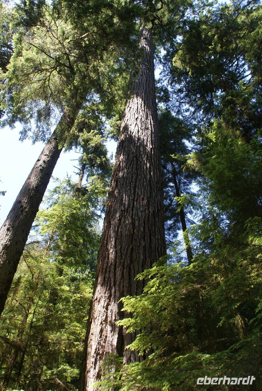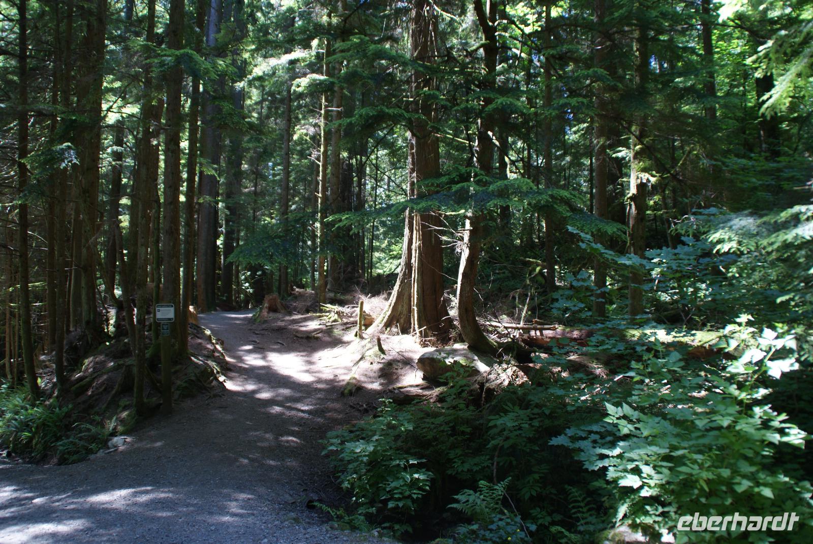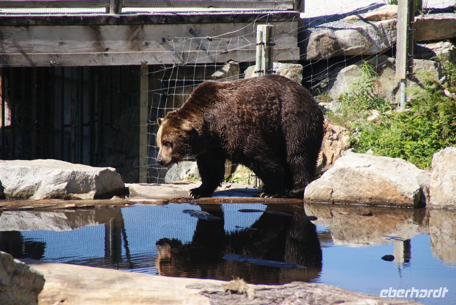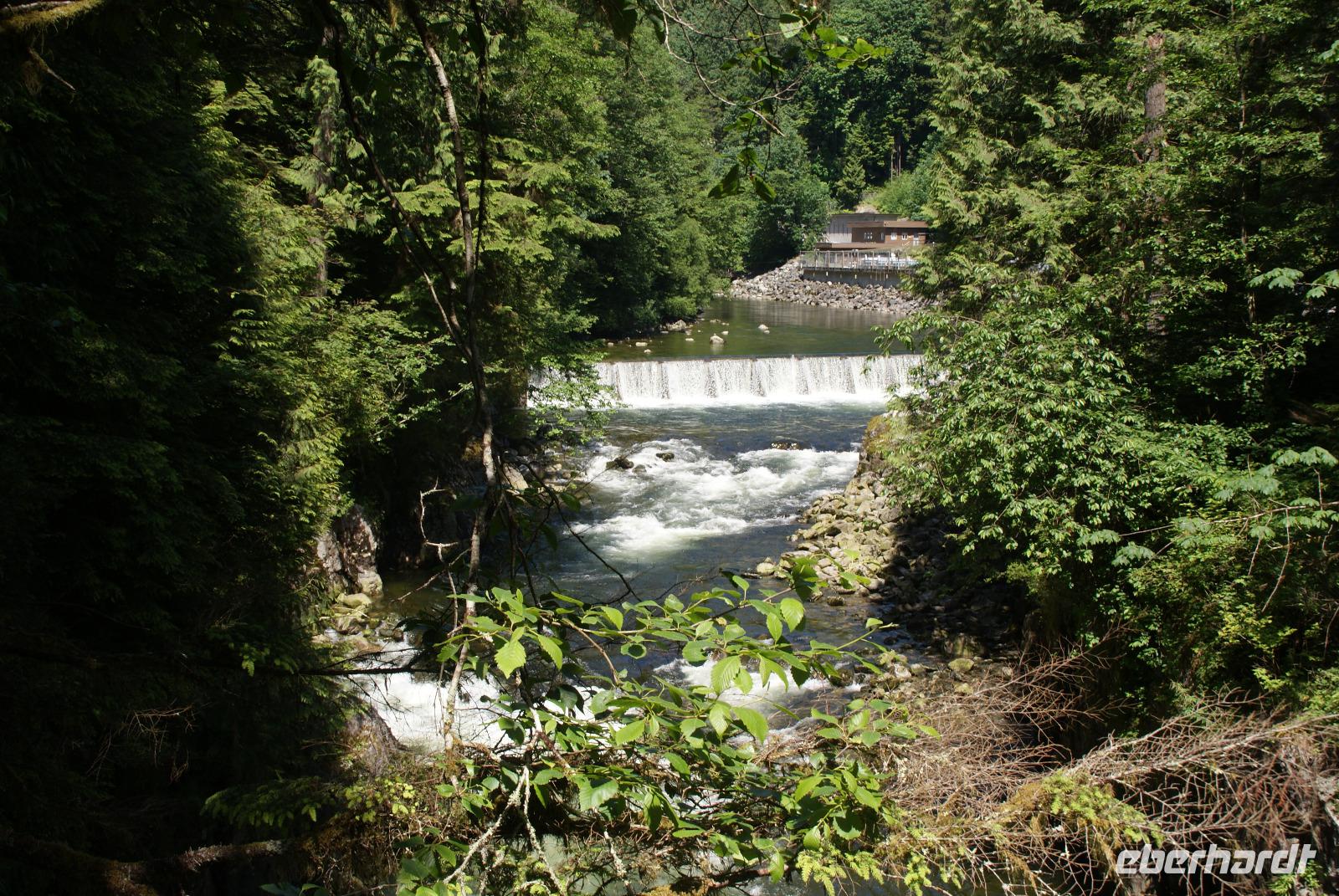 Kanada meint es wirklich gut mit uns und so empfängt uns unser letzter Reisetag mit strahlendblauem Himmel und wir lachen mit der Sonne um die Wette. Nach einem kanadischen Frühstück im Hotel ziehen wir los Richtung Grouse Mountain, was so viel wie „Waldhuhn Berg" bedeutet. Über die bekannte Lionsgate Bridge hinweg fahren wir zur Talstation und per Seilbahn mit grandioser Aussicht auf das gegenüberliegende Vancouver hoch hinauf auf den Grouse Mountain. Oben angekommen empfangen uns milde Temperaturen und wir staunen über den vielen Schnee, den wir ab und an noch liegen sehen! Zunächst laufen wir den gemalten Grizzlytatzen auf dem Boden hinterher, die uns zum Grizzlygehege führen. Dort angekommen treffen wir auf die beiden 16 Jahre alten Bärenbrüder Grinder und Cooler, die dort als Waisenkinder aufgenommen wurden und ihr eigenes Areal haben. (wer diese per Webcam verfolgen möchte, siehe: https://www.grousemountain.com/wildlife-refuge/bear-cam) Wir haben Glück und die beiden zeigen sich uns, so dass wir viele schöne Bilder machen können...Danach wartet die Lumberjack Show (Holzfällershow) auf uns und wir amüsieren uns köstlich über diese (wenn auch sehr amerikanische) Show. Wir hätten sie nicht missen wollen! Anschließend geht es per Gondel wieder bergab und es erfolgt entlang eines beachtlichen Damms ein schöner Spaziergang durch den Regenwald. Wir staunen wie viel Natur es in unmittelbarer Nähe der quirligen Stadt Vancouver gibt. Einfach toll. Der Spaziergang endet an einer Lachsaufzuchtstation, wo wir viel Interessantes über die Lachse und deren Wanderung erfahren. Weiter geht die Reise zur Capilano Suspension Bridge (Hängebrücke) und wir spazieren (wackeln) über die 137m lange und 70 m hohe Hängebrücke auf die andere Seite, wo weitere sieben Hängebrücken uns von Baumgipfel zu Baumgipfel leiten. Wieder zurück wartet noch der Cliff Walk auf uns, ein weiteres Highlight auf dem man in beachtlicher Höhe entlang der Felsen mit Blick auf den darunterliegenden Canyon und Fluss wandern kann. Nach so viel Bewegung darf natürlich ein kleiner Snack und oder ein kühles Bier nicht fehlen. Gut gestärkt ziehen wir los zurück über die Lionsgate Brücke Richtung Stanley Park und genießen die Sicht auf die Skyline von Vancouver gegenüber. Hier erfahren wir von Gini noch viel Interessantes über die dort aufgestellten Totem Pfähle. Noch eine kurze Fahrt und schon sind wir wieder mitten in der Stadt, welch einen Kontrast wir am heutigen Tag erlebt haben. Zur Abfahrt zum Abendessen versammeln wir uns in der Lobby und werden von einem Eberhardt TRAVEL-Service der besonderen Art überrascht...wir fahren mit drei schwarzen Stretch-Limousinen "Hollywood like" vom Hotel zum Cloud Nine Dreh-Restaurant des Empire Landmark Hotels auf die 42. Etage. Zwei Überraschungen, die wohl mehr als gelungen sind. Zweifelsfrei lässt sich sagen, dass ein letzter Reisetag nicht besser hätte ausklingen können. Dieser besondere Fahrservice und dann das Abendessen mit Rundumblick über Vancouver und Umgebung bei besten Wetterbedingungen, einfach genial.