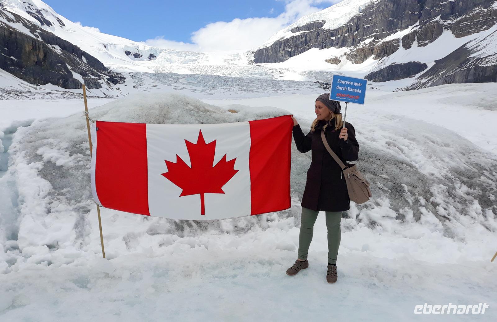 Die erste Nacht ohne Zug haben wir herrlich geschlafen und erwachen morgens mit äsenden und ruhenden Wapitihirschen vor unseren Haustüren auf. Gut gefrühstückt reisen wir ab und halten für einen Spaziergang an den Athabasca Fällen, an denen der Athabasca Fluss durch enge Passagen beeindruckend in die Tiefe stürzt. Unser Vormittagsziel ist heute das berühmte Columbia Icefield, wo wir mit dem Ice Explorer auf den Athabasca Gletscher hinauf fahren. Zunächst bringt uns ein Shuttlebus auf eine Bergstation, wo wir in die sogenannten Snowcoaches umsteigen. Von diesen Gefährten gibt es weltweit nur 24 Stück, von denen 23 auf dem Gletscher im Einsatz sind. Wir erfahren, dass diese 1,3 Millionen Dollar pro Stück und ein einzelner Reifen der insgesamt 6 Stück bereits 4.000 Dollar kostet. So fährt uns dieser Snowcoach nun unterhaltsam mit „Captain Jack" unserem Fahrer auf das 265m dicke Gletscherfeld hinauf. Dieser erklärt uns, dass die Eisschicht noch so dick und tief ist, dass der Pariser Eiffelturm aufgestellt darunter verschwinden würde. Dimensionen, die man sich kaum vorstellen kann. Wir befinden uns nun auf 2200m Höhe und dürfen aussteigen. Es entstehen tolle Aufnahmen und wir haben Riesenglück, der Himmel reißt auf, die Sonne strahlt, was wollen wir mehr. Zurück geht es auf gleichem Weg und auf ein solch schönes Erlebnis, die vielen schönen Momente und das gute Gelingen der Reise wollen wir doch mal gebührend mit einem Gläschen Sekt feiern. So führt uns Helga an einen tollen Picknick Platz am Saskatchewan Fluss und wir stoßen auf die tolle Reise mit ihren unzähligen Höhepunkten an. Unser Mittagessen nehmen wir am Rastplatz von Saskatchewan Crossing ein und der Icefield Parkway, bekannt als eine der schönsten Panoramastrecken der Welt, führt uns am Nachmittag vorbei an Banff zu unserem Übernachtungsort Canmore. Nach einer kleinen Orientierungsfahrt durch den Ort checken wir in die neue Unterkunft Chateau Canmore ein, speisen vorzüglich im Sage Bistro und spazieren abschließend noch durch den Ortskern mit vielen Geschäften, Restaurants und so mach schönen Häusern aus vergangenen Zeiten.