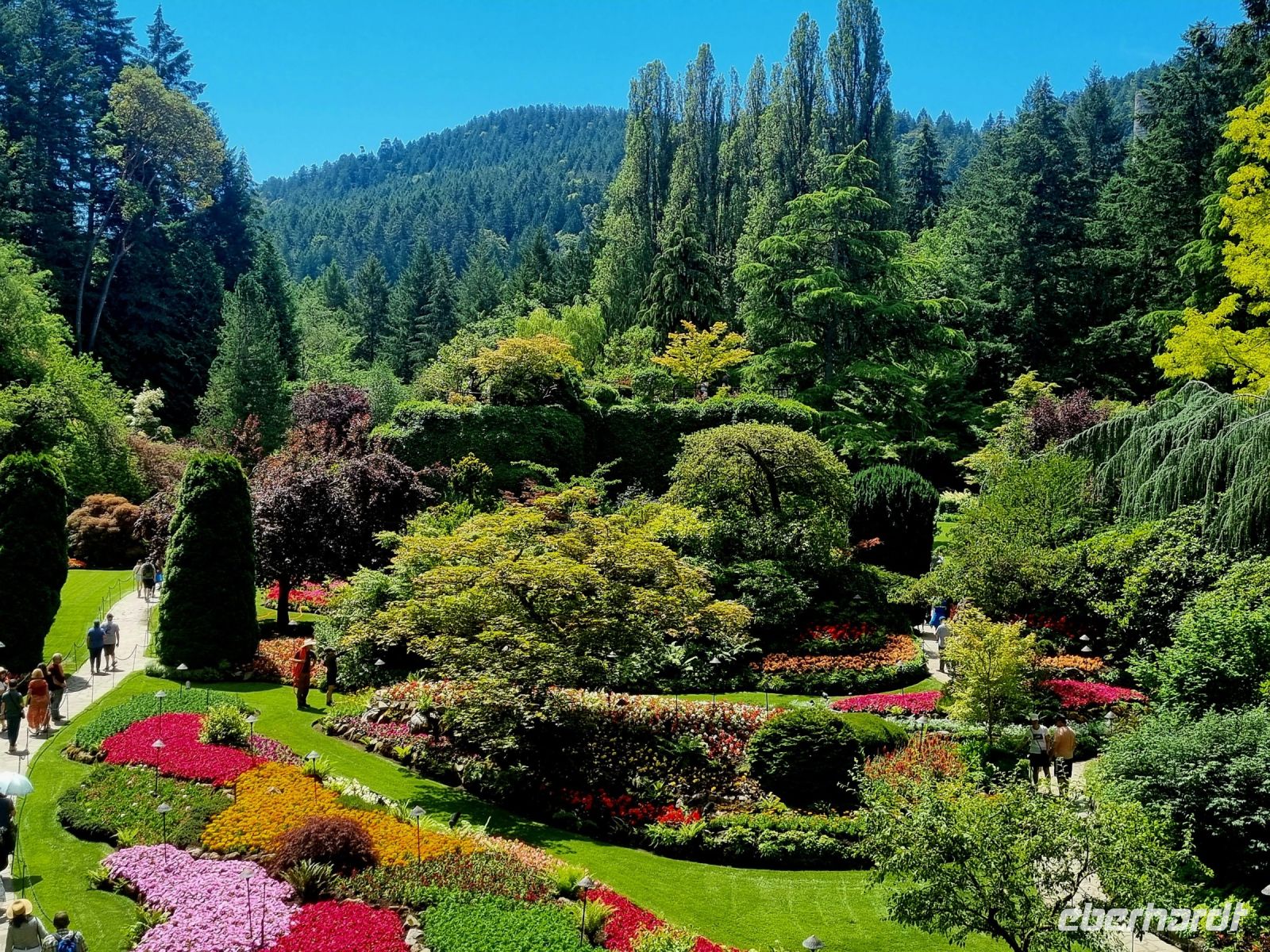 Wir frühstücken denn auch schon um 06:30 zusammen mit einer ungarischen Reisegruppe, die das gleiche Ziel am heutigen Tag haben und die wir auch unterwegs immer wieder treffen. Um 07:50 ist ein Shuttle Bus von Gray Line vorm Hotel, der uns zu einem größeren Bus in der Innenstadt bringt. Von dort aus geht es dann mit dem Bus quer durch die Stadt Richtung Süden zum Fähranleger Tsawwassen . In 90 Minuten bringt uns die Fähre über die Strait of Georgia bei einer sehr schönen Überfahrt mit Blick auf Berge in den USA nach Swatz Bay auf Vancouver Island. Von dort steuern wir erst Buchardt Garden, ein privat vor ungefähr 100 Jahren angelegter Garten auf dem ehemaligen Industriegeländer der Familie. Für das Blumenparadies haben wir 2 Stunden zur Verfügung allerdings bei gut 30 Grad, den Rundgang durch die Gartenanlage gestalten wir individuell, der Schatten und das Eis werden zum besten Freund der Reiselustigen. Dann geht es weiter in die Hauptstadt nach Victoria Hier haben wir Zeit zur freien Verfügung die schöne Innenstadt zu erkunden. Schöne Bars und Restaurants laden zum Verweilen ein . Nach unzähligen Fotos der beeindruckenden Bauten und toller Architektur der City fahren wir mit dem Bus die landschaftlich beeindruckende Küstenstrasse entlang. Hier säumen Villen über Kilometer die Straße links und rechts und auch Hirsche lassen sich blicken. Gegen 18.30 Uhr erreichen wir den Fähranleger. Die Überfahrt ist wieder wunderschön und die Abendstimmung zaubert eine besondere Atmosphäre bei sehr sommerlichen Temperaturen. Um 21.45 Uhr erreichen wir unser Hotel. In der Lobby wird dann gemeinsam der Online Check in vollzogen und dann heißt es Kofferpacken für den Rückflug.