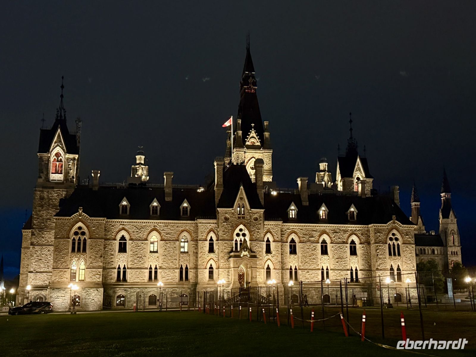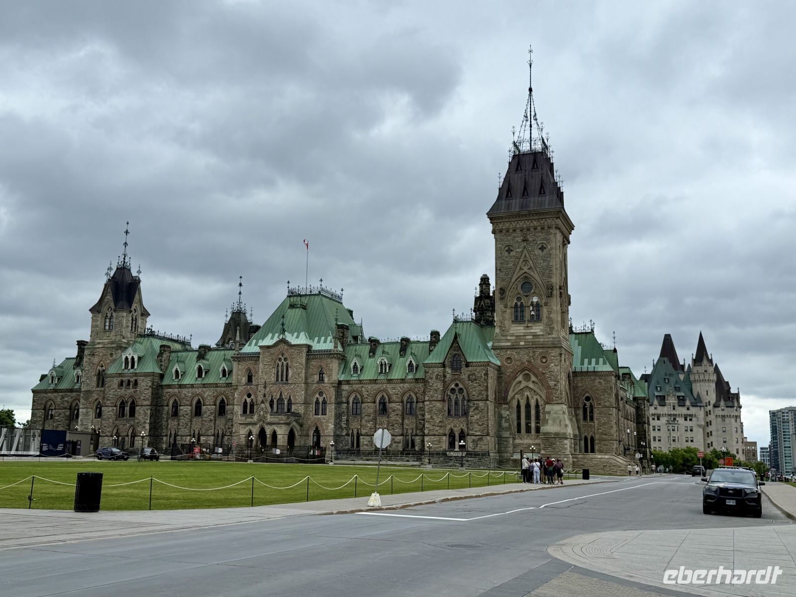 Heute begann unsere erste Zugfahrt in Kanada – Ziel war Ottawa, die Hauptstadt des Landes. Nach einer angenehmen Fahrt durch die abwechslungsreiche Landschaft erreichten wir die Stadt am späten Vormittag. Dort wurden wir herzlich von unserer neuen Reiseleiterin Steffi empfangen, die uns direkt mit interessanten Fakten versorgte: Ottawa ist mit rund einer Million Einwohnern die sechstgrößte Stadt Kanadas und liegt an der Grenze der Provinzen Ontario und Québec. Die Stadt ist offiziell zweisprachig – Englisch und Französisch werden hier gleichermaßen gesprochen. Kanada zählt insgesamt etwa 41 Millionen Einwohner, und das kanadische Parlament besteht aus 338 Abgeordneten, die ihre Wahlkreise im House of Commons vertreten.