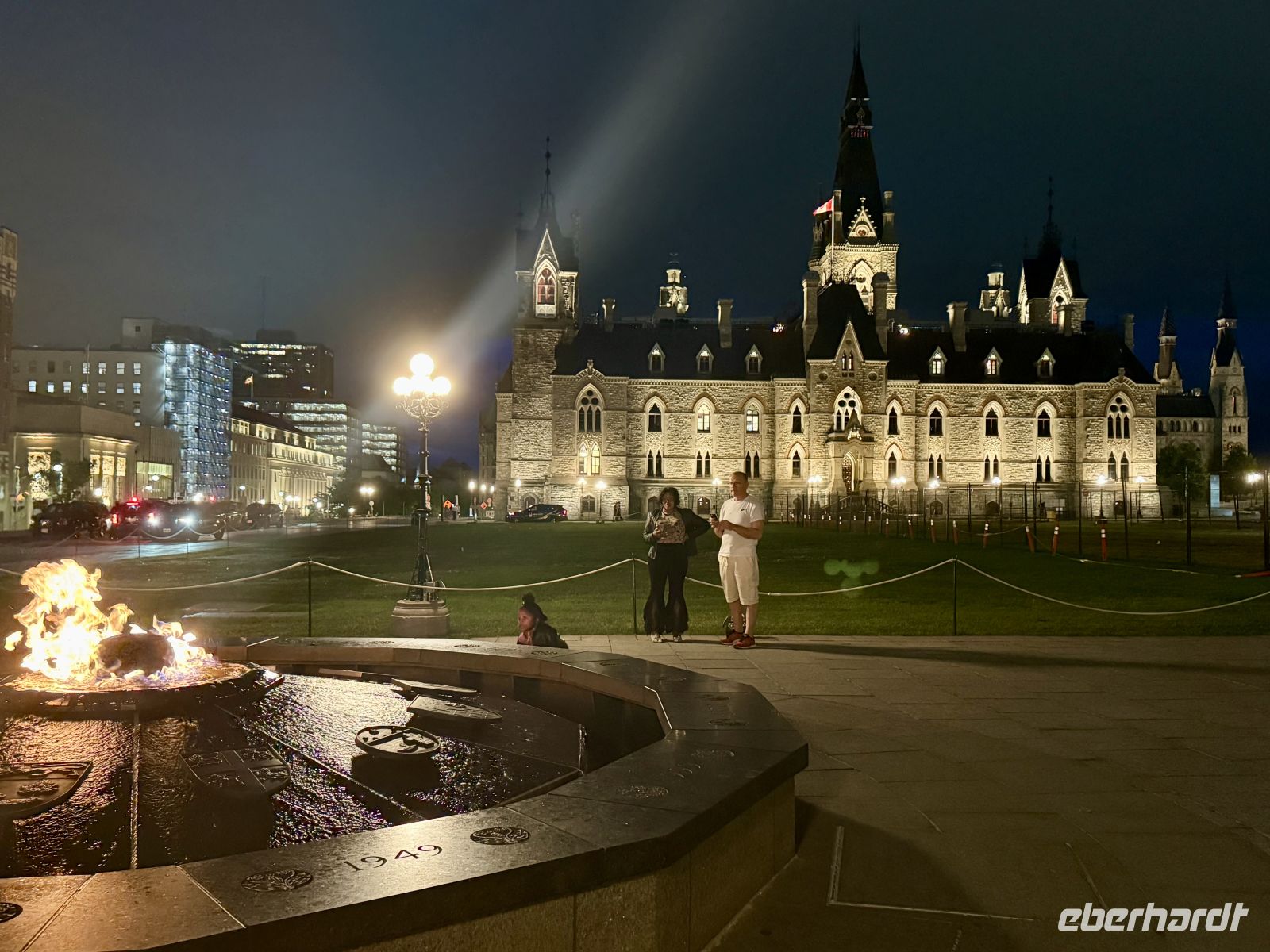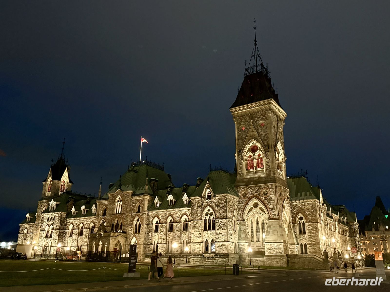 Unsere Stadtbesichtigung führte uns zu den eindrucksvollen Regierungsgebäuden auf dem Parliament Hill, wo sich das politische Herz Kanadas befindet. Besonders imposant ist der Peace Tower, der über dem gesamten Komplex thront. Von dort aus ging es durch das elegante Botschaftsviertel zum Rockcliffe Park, einem gehobenen Wohnviertel mit großzügigen Villen und Ausblicken auf den Ottawa River. Wir besichtigten außerdem die Basilika Notre-Dame, die älteste Kirche der Stadt, die mit ihrer neogotischen Architektur und dem prachtvoll gestalteten Innenraum beeindruckte.