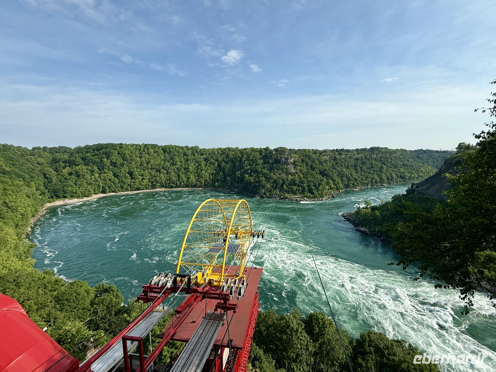 Nach einer unvergesslichen Nacht an den Niagarafällen hieß es heute Abschied nehmen von diesem beeindruckenden Naturschauspiel. Wir verließen die Wasserfälle am Vormittag und machten noch eine letzte Abschiedsrunde, bevor wir uns auf den Weg zurück nach Toronto machten. Unterwegs legten wir zunächst einen kurzen Fotostopp am Whirlpool Aero Car ein. Dieser natürliche Strudel, der sogenannte Niagara Whirlpool, ist ein riesiger Wasserstrudel im Niagara River, der durch geologische Verschiebungen vor etwa 4.200 Jahren entstanden ist. Besonders beeindruckend ist die Aussicht von der historischen Seilbahn aus dem Jahr 1916, die in luftiger Höhe über den Strudel führt – ein spektakuläres Fotomotiv.