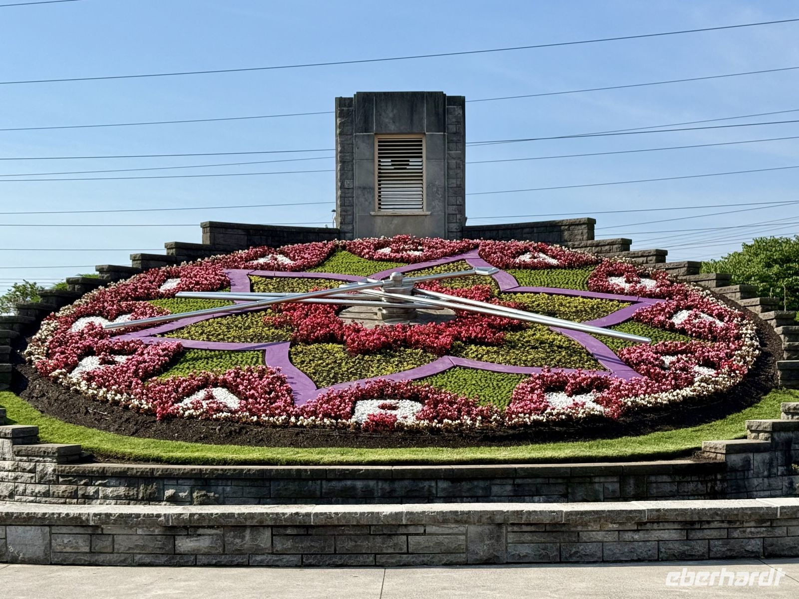 Nicht weit davon entfernt machten wir Halt an der bekannten Blumenuhr („Floral Clock“), die mit einem Durchmesser von über 12 Metern zu den größten funktionstüchtigen Blumenuhren der Welt zählt. Sie wurde 1950 errichtet und ist saisonal mit mehr als 15.000 Pflanzen gestaltet. Die Uhr ist nicht nur ein beliebtes Fotomotiv, sondern auch ein Symbol für die Gartenkunst und Präzision der Region.