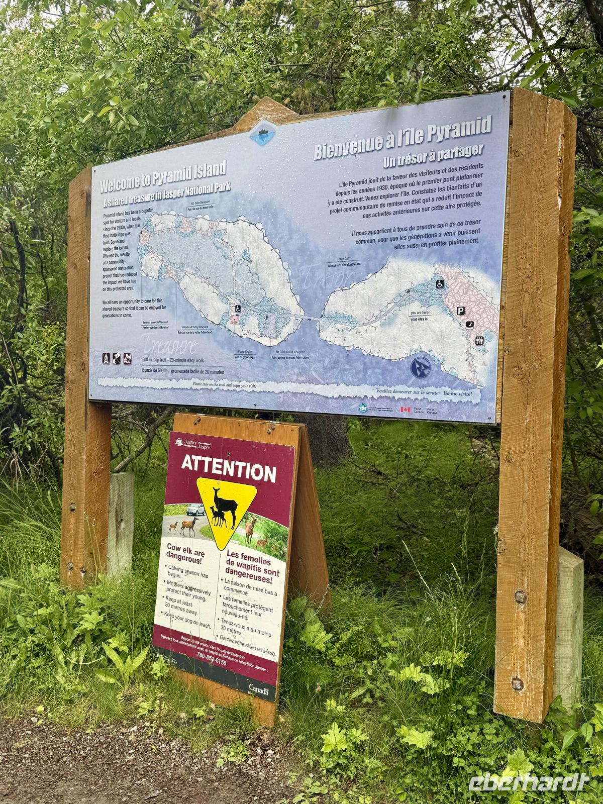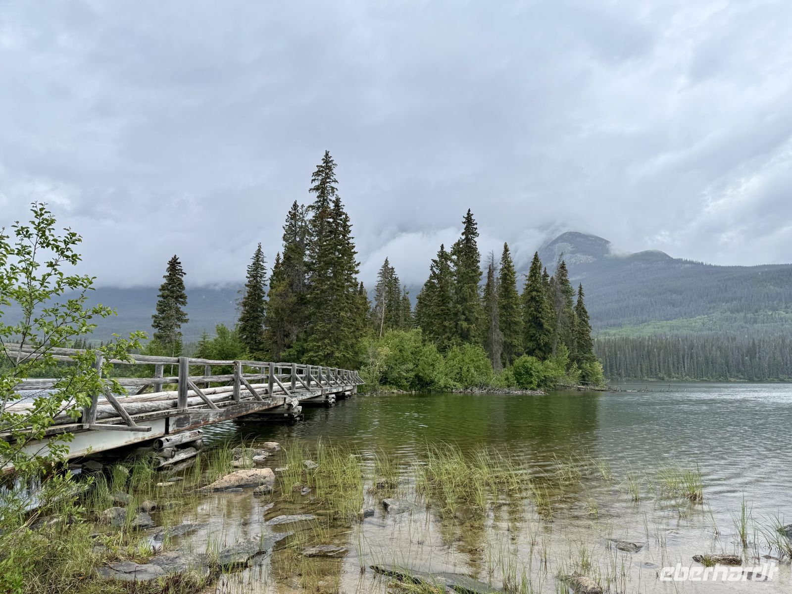 Wir nahmen den Yellowhead Highway in Richtung Maligne Lake. Zunächst legten wir einen Zwischenstopp an der Pyramid Island ein, wo wir einen kurzen Spaziergang unternahmen und die friedliche Natur am Ufer des Pyramid Lake genossen.