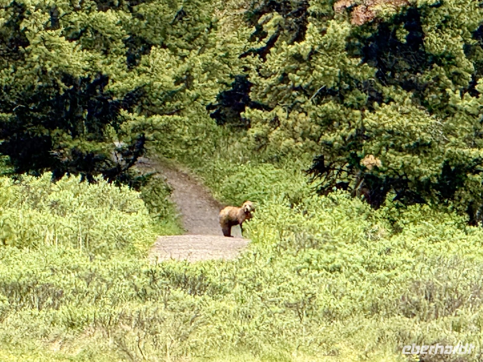 Auf dem Weg zum Maligne Lake begegneten wir einigen Wildtieren, darunter putzigen Murmeltieren, majestätische Weißkopfseeadler und eine mutige Bergziege, die uns neugierig beobachtete. Das wohl faszinierendste Erlebnis war jedoch die Sichtung von Grizzlybären, die wir am Ufer des Sees beobachten konnten. Sogar einige kleine Grizzlyjunge zeigten sich kurz, was für alle ein ganz besonderes Highlight war.