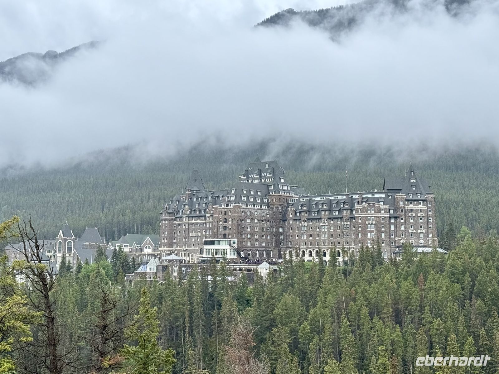 Etwas wehmütig verließen wir Banff und machten uns auf den Rückweg nach Jasper. Doch bevor wir die Stadt hinter uns ließen, statteten wir noch dem imposanten Fairmont Banff Springs Hotel einen Besuch ab. Das im Stil eines schottischen Schlosses erbaute Hotel wurde 1888 eröffnet und zählt heute zu den berühmtesten Luxushotels Kanadas. Es gehört zu den historischen Eisenbahnhotels, die einst von der Canadian Pacific Railway gebaut wurden, um wohlhabende Reisende in die Rocky Mountains zu locken. Mit seiner malerischen Lage oberhalb des Bow River und seinem Blick auf die umliegenden Berge ist das Hotel selbst eine Sehenswürdigkeit.