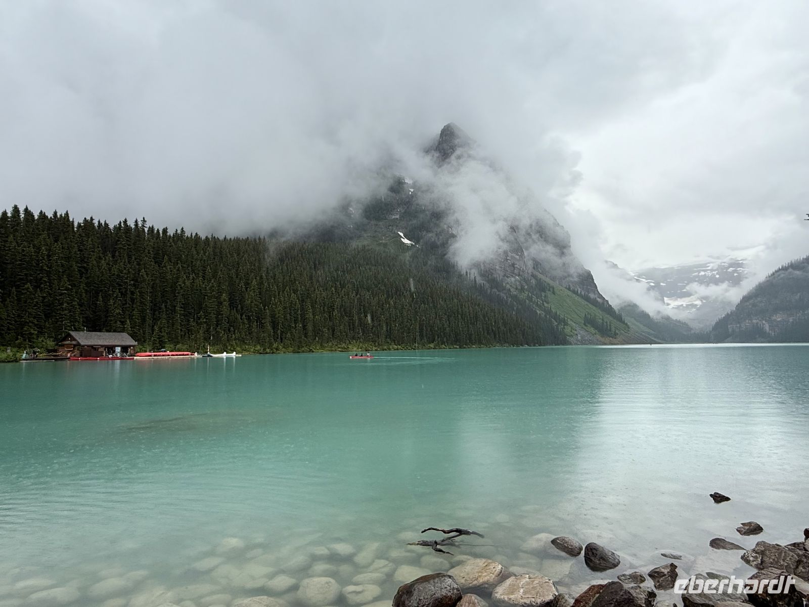 Unsere Reise führte uns anschließend weiter zum weltberühmten Lake Louise. Der See ist bekannt für sein smaragdgrünes Wasser, das durch feine Gletscherpartikel im Schmelzwasser entsteht. Umgeben von den Gipfeln der Rocky Mountains und dem Victoria-Gletscher im Hintergrund, zählt der See zu den meistfotografierten Orten Kanadas. Am Ufer thront das elegante Fairmont Chateau Lake Louise, ein weiteres geschichtsträchtiges Hotel aus der Zeit der Eisenbahnexpansion.