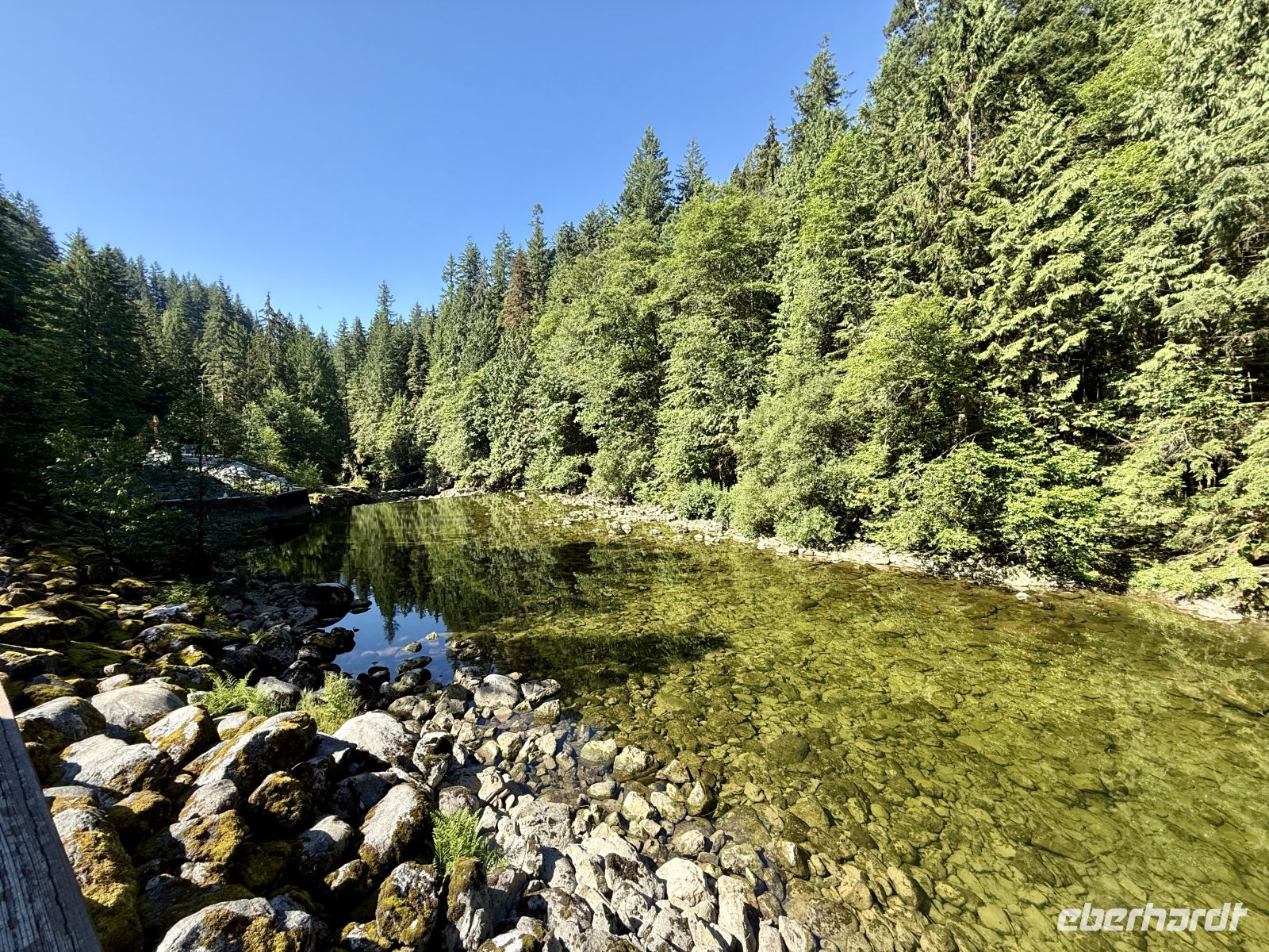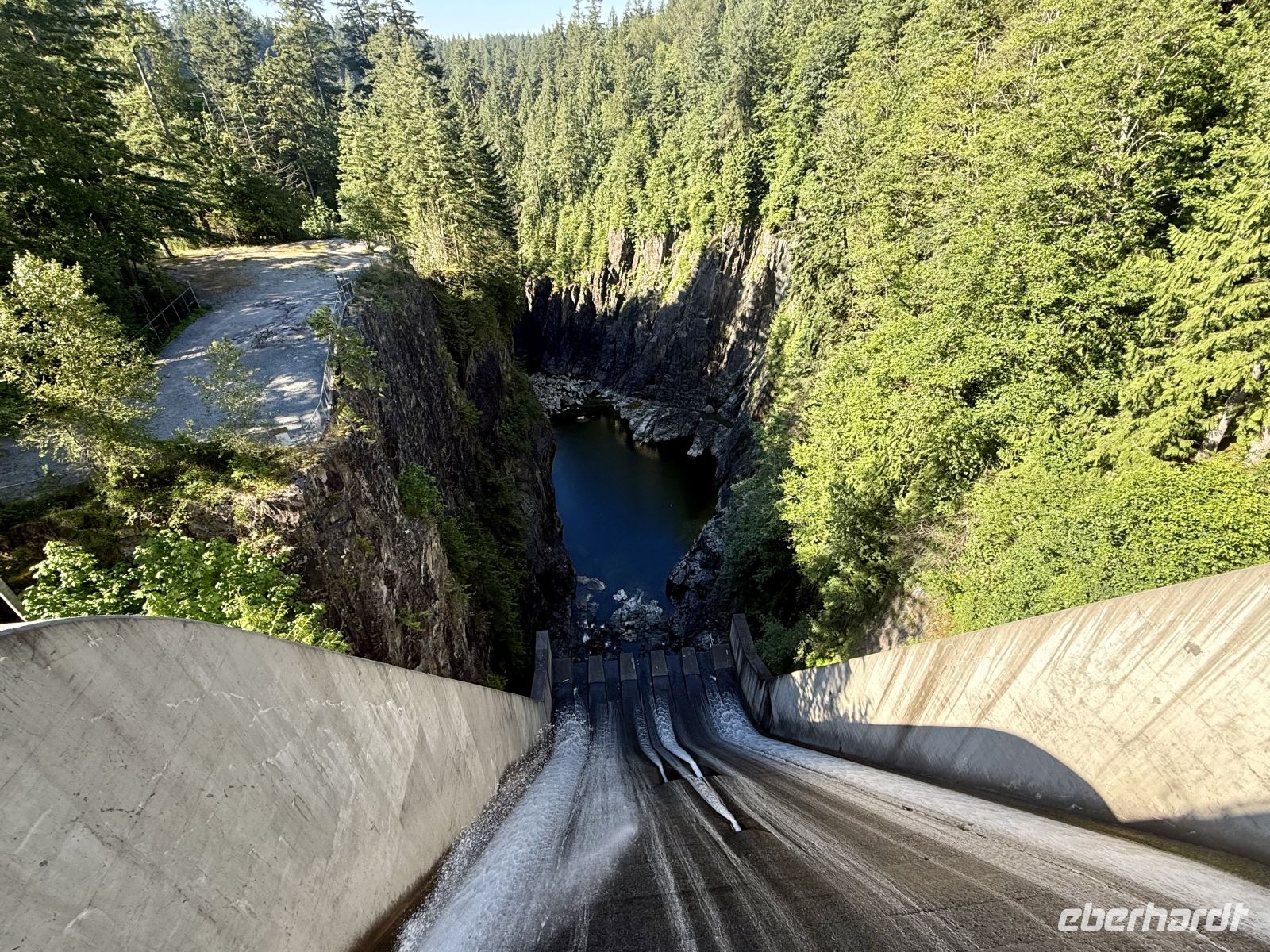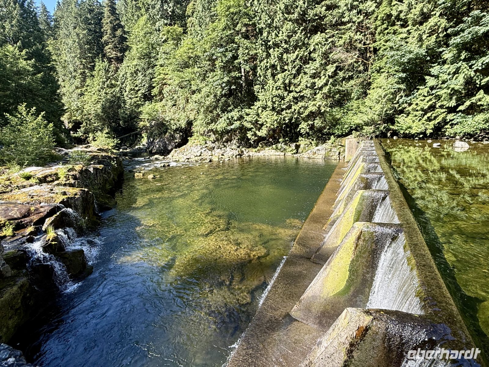 Unsere erste Station war der Capilano Park, wo wir zunächst einen kurzen Halt am Capilano Lake und dem Cleveland Dam machten. Der Staudamm wurde 1954 erbaut und dient als wichtige Trinkwasserquelle für die Region. Von dort aus hatten wir einen schönen Blick über den See und das bewaldete Tal. Danach besuchten wir die Capilano River Monitoring Station, eine Aufsichtsstation zur Beobachtung des Wasserstands und zur Überwachung der Lachswanderung.