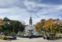 Jetzt können alle Gäste noch auf eigene Faust Montreal erkunden. Viele entdecken noch interessante Plätze der Stadt, sammeln Fotos bei dem Bilderbuchwetter, oder verweilen im Cafés oder Parks am Ufer des St. Lorenz Stroms. Wir treffen uns wieder am Place d`Armes am Maisonneuve-Denkmal.