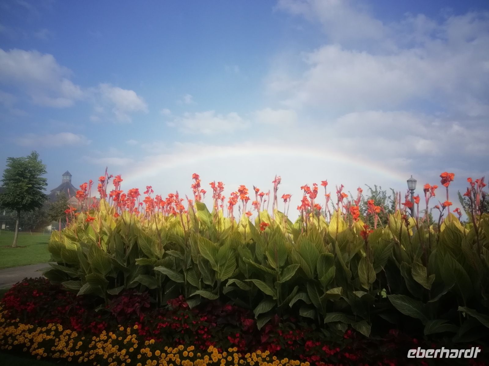 Nach dem „feucht-fröhlichen“ Highlight, amüsieren wir uns noch über unser „Aussehen“, doch die Sonne trocknet uns bald und wir haben noch ausreichend Zeit, die Niagara von der Uferpromenade zu bewundern, um Bilder in unserem Köpfen festzuhalten. Kurz vor der Rückkehr zum Bus beschert uns ein kurzer Schauer noch einen wundereschönen Regenbogen und so ist das Spektakel perfekt.