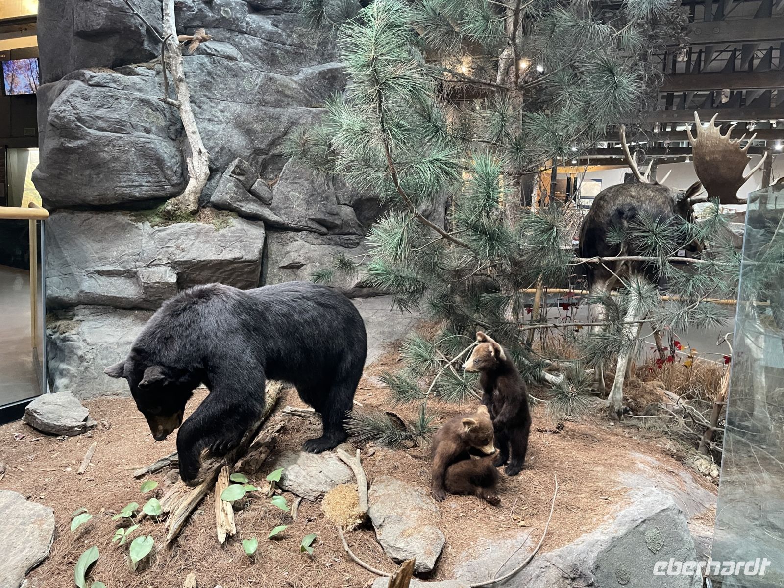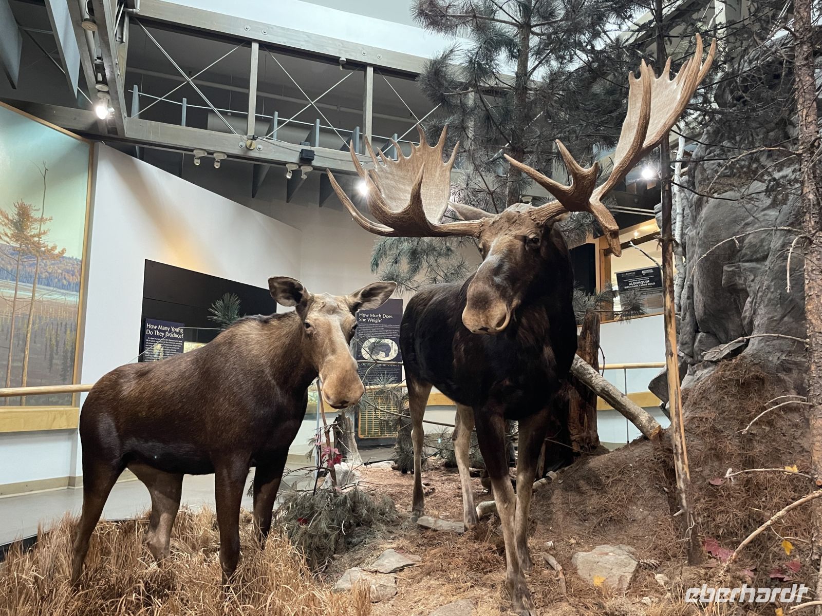 Nach unserem Fotostopp fuhren wir über den Ottawa River und sagten Goodbye Ontario und Bonjour Quebec, denn der Fluss, welcher die Stadt teilt, ist gleichzeitig die Grenze der beiden Provinzen. Angekommen im französischsprachigen Teil der Stadt – Gatineau – erreichten wir das Canadian Museum of History, dessen Architektur bereits Geschichten erzählt, indem sie verschiedene indigene Formen aufgreift. Im großen Foyer wurden wir von den riesengroßen Totempfählen der Natives aus Westkanada empfangen. Auf der Aussichtsplattform des Museums hatten wir die Möglichkeit, tolle Panoramafotos des Parliament Hill und des Château Laurier zu schießen. Anschließend verließen wir die Hauptstadt, um mit den heimischen Wildtieren in Kontakt zu kommen. Angekommen im Omega Wildpark und mit drei großen Säcken Möhren bewaffnet, stiegen wir in einen umgebauten Schulbus und öffneten erst einmal alle Fenster. Keine zwei Minuten unterwegs, wurden wir schon von unseren neuen Freunden, den Wapiti-Hirschen, empfangen. Diese waren sichtlich erfreut über unsere Leckereien. Während einige von uns zögerlich waren, die Tiere zu füttern, versuchten andere durch wildes Herumwedeln mit den Möhren, die süßen Tiere anzulocken. Im Wildpark hatten wir die Gelegenheit, viele weitere Tiere zu beobachten: Bisons, Wildgänse, Elche, Wölfe und Polarfüchse. Sogar der ein oder andere Schwarz- und Zimtbär ließ sich blicken. Manchmal war es jedoch schwer zu unterscheiden, ob es sich um einen Haufen Geröll, einen Busch oder doch um ein ruhendes Tier handelte, denn einige Tiere schienen an diesem Tag ihren Faulpelztag zu genießen.