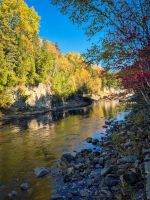 An unserem Ziel wurden wir mit einem kleinen Wasserfall belohnt. Der Ausstieg gestaltete sich aufgrund des niedrigen Wasserstands zwar etwas abenteuerlich, doch die Mühe wurde mit einem idyllischen Platz für unsere Mittagspause belohnt. Bei bestem Wetter, umgeben von herbstlich leuchtenden Bäumen und dem Rauschen des Wassers, genossen wir die Ruhe der Natur. Danach hieß es wieder einsteigen – was mit etwas Geduld und gegenseitiger Hilfe auch gelang. Eine tolle Teamleistung! Dann hieß es noch einmal, die Paddel zu schwingen, denn wir mussten ja zurück zu unserem Bus. Erschöpft, aber glücklich, erreichten wir schließlich unseren Heimatsteg, wo wir uns von Liz verabschiedeten und den Rückweg zum Hotel antraten.