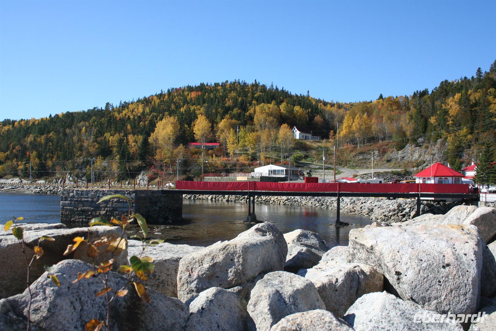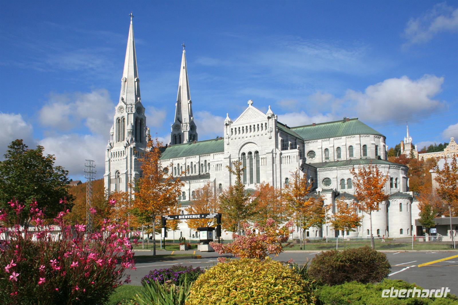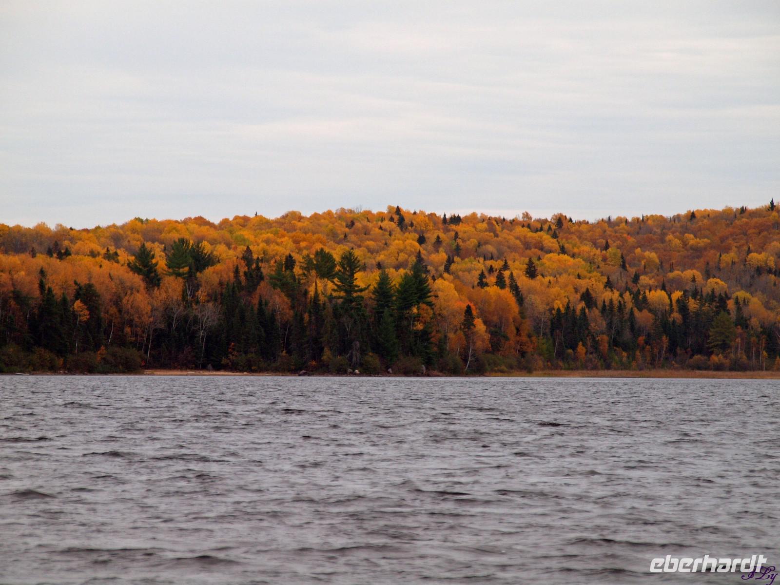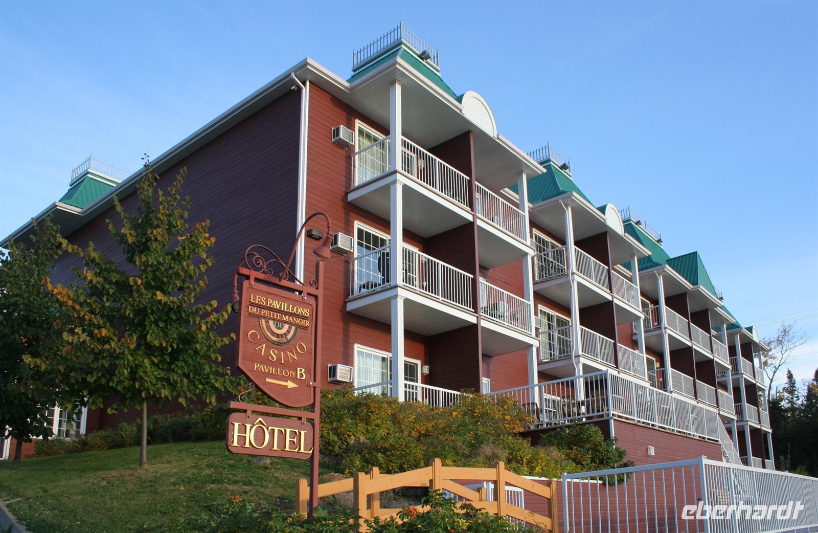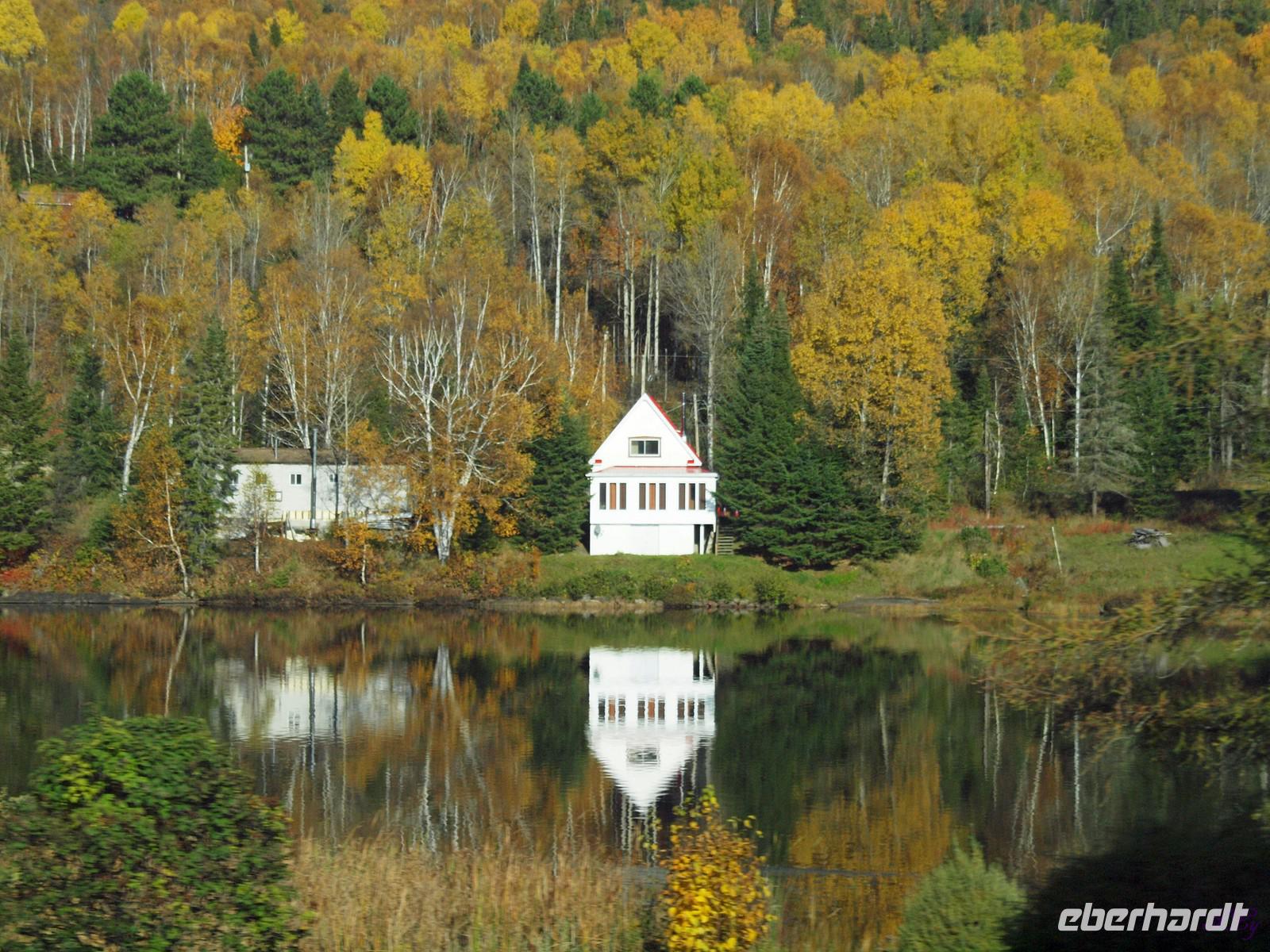 Ab 7.30 Uhr Frühstück im Hotel. Es gibt ein kleines Buffet und eine Mitarbeiterin des Hotels hält warme Milch für das Müsli und Bohnen, eine Spezialität der Region, auf Wunsch bereit. Wir nutzen den schönen Sonnenaufgang über dem St. Lorenz Strom auch schon für die ersten Fotomotive des Tages. Um 8.30 Uhr fahren wir los. Heute liegt eine weite Strecke von etwa 300 Kilometern vor uns. Wir fahren am St. Lorenz Strom entlang zurück in Richtung Quebec City. Unterwegs sehen wir am Ufer des St. Lorenz Stromes hunderte Schneegänse fliegen, die sich hier Anfang Oktober für ihren Flug gen Süden sammeln.Dann besichtigen wir die Basilika Sainte Anne de Beaupre. Wunderschön liegt die helle Kirche vor den Herbstfarben der Bäume. Hier gibt es auch jede Menge öffentlicher Toiletten. Dann besichtigen wir die riesige Kirche von innen. Aufgrund einiger Wunderheilungen, die hier geschehen sein sollen, zieht die Wallfahrtskirche bis heute viele katholische Gläubige an. Im Inneren kann man kunstvolle Mosaike und Bleiglasfenster bestaunen. Nach etwa 30 Minuten Aufenthalt fahren wir weiter in Richtung Quebec und biegen am Stadtrand in Richtung Nordwesten ab. Die Autobahn führt durch herrliche rot und orange gefärbte Wälder. Selbst die Hügelketten am Horizont erstrahlen in roten Tönen. Das bekommt man wirklich nur hier in Ostkanada zu sehen! Die Farben sind einfach unglaublich und wir haben riesiges Glück mit dem schönen Wetter! Um 13.00 Uhr legen wir eine Mittagspause wieder an der Kathedrale am Cap Madeleine am St. Lorenz Strom ein. Die Cafeteria hat leider schon Winterpause. Wir nutzen die Toiletten und die Getränkeautomaten und bummeln durch den Park, in dem es von Eichhörnchen nur so wimmelt. Gern posieren sie für die Kamera. Weiterfahrt um 13.45 Uhr. Nun verlassen wir den St. Lorenz Strom und es geht in Richtung Norden. Hier gibt es nur noch ländliche Regionen mit Landwirtschaft und kleinen, beschaulichen Dörfern. Die hübschen Holzhäuschen vor den bunten Laubbäumen, die Bauernhöfe und die rot bewaldeten Hügelketten sind eine Augenweide! Gegen 16.00 Uhr legen wir einen letzten Fotostopp in Saint Zenon ein. Hier gibt es neben der kleinen Kirche einen schönen Aussichtspunkt, von dem man über das Tal blicken kann. Dann sind es nur noch etwa 30 Minuten bis zu unserem Hotel in der Nähe von Saint Michel des Saints.Wir erreichen das Resort „Auberge du Lac Taureau“ am gleichnamigen See gegen 17.15 Uhr.Die Zimmer sind im Landhausstil eingerichtet, eher klein und gemütlich. Es gibt wie üblich TV, Telefon, Radiowecker, Föhn, Kosmetikartikel, Klimaanlage, Bügeleisen, Kaffeemaschine und teilweise auch einen Kühlschrank. Um 19.00 Uhr treffen wir uns alle zum Abendessen. Das Restaurant liegt in dem Gebäude rechts von der Rezeption. Es gibt ein 3-Gang-Menü mit Salat, Fisch oder Steak als Hauptgericht und Dessert mit Kaffee. Ein Glas Wein kostet 10 bis 11 CAD, das Trinkgeld ist bereits inkludiert. Das Personal ist freundlich und schnell. Im Untergeschoss befinden sich das Schwimmbad (ca. 12 x 5 Meter) und die Sauna. Da die Herrensauna geschlossen ist, können alle die Damensauna benutzen. Handtücher liegen in den Umkleideräumen extra bereit. Einen Bademantel kann man sich kostenlos an der Rezeption ausleihen. In die Sauna geht man hier übrigens, wie in Amerika üblich, mit Badebekleidung und nicht nackt. Die gemütliche Bar im Untergeschoss lädt zu einem Gute-Nacht-Getränk ein. Mittwoch, 12.10.2011