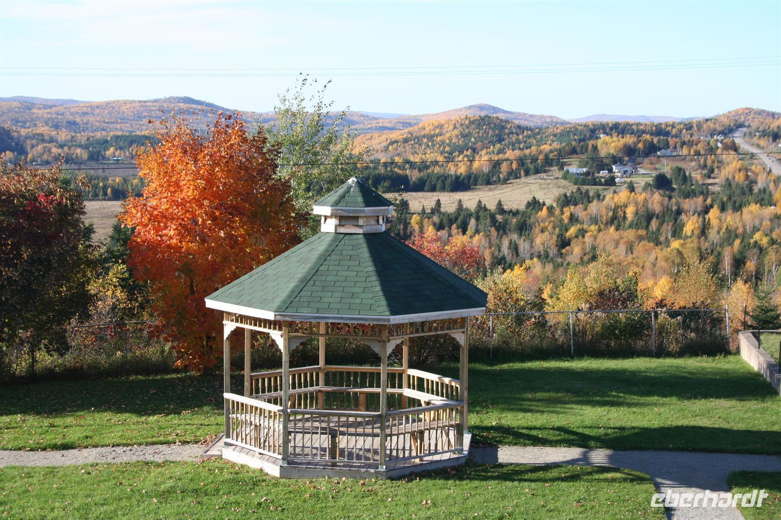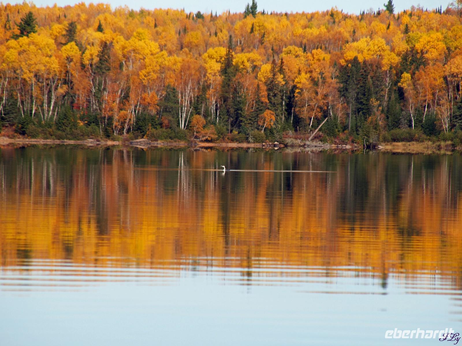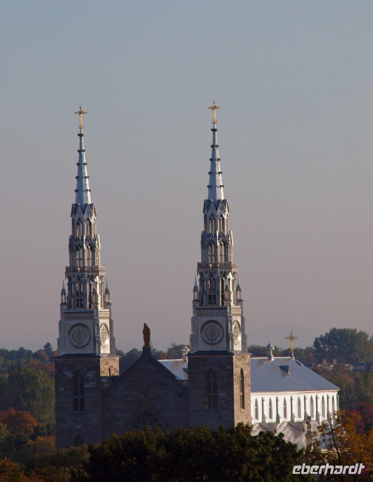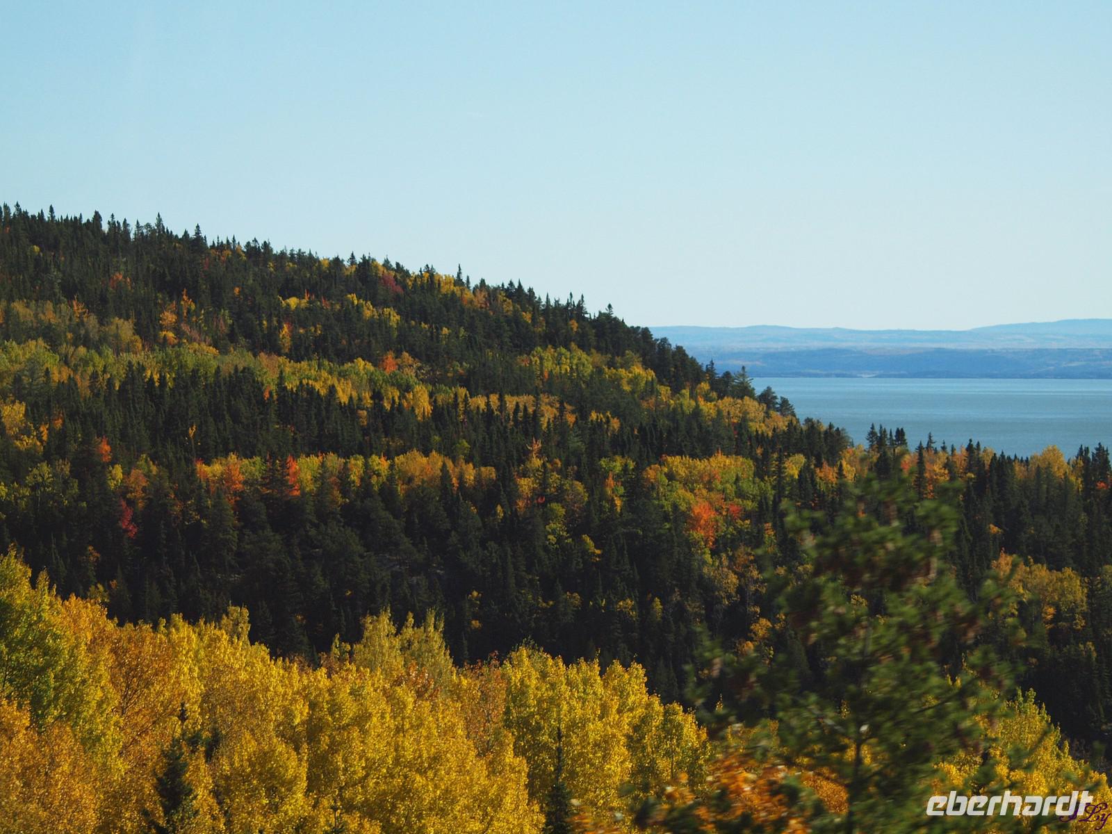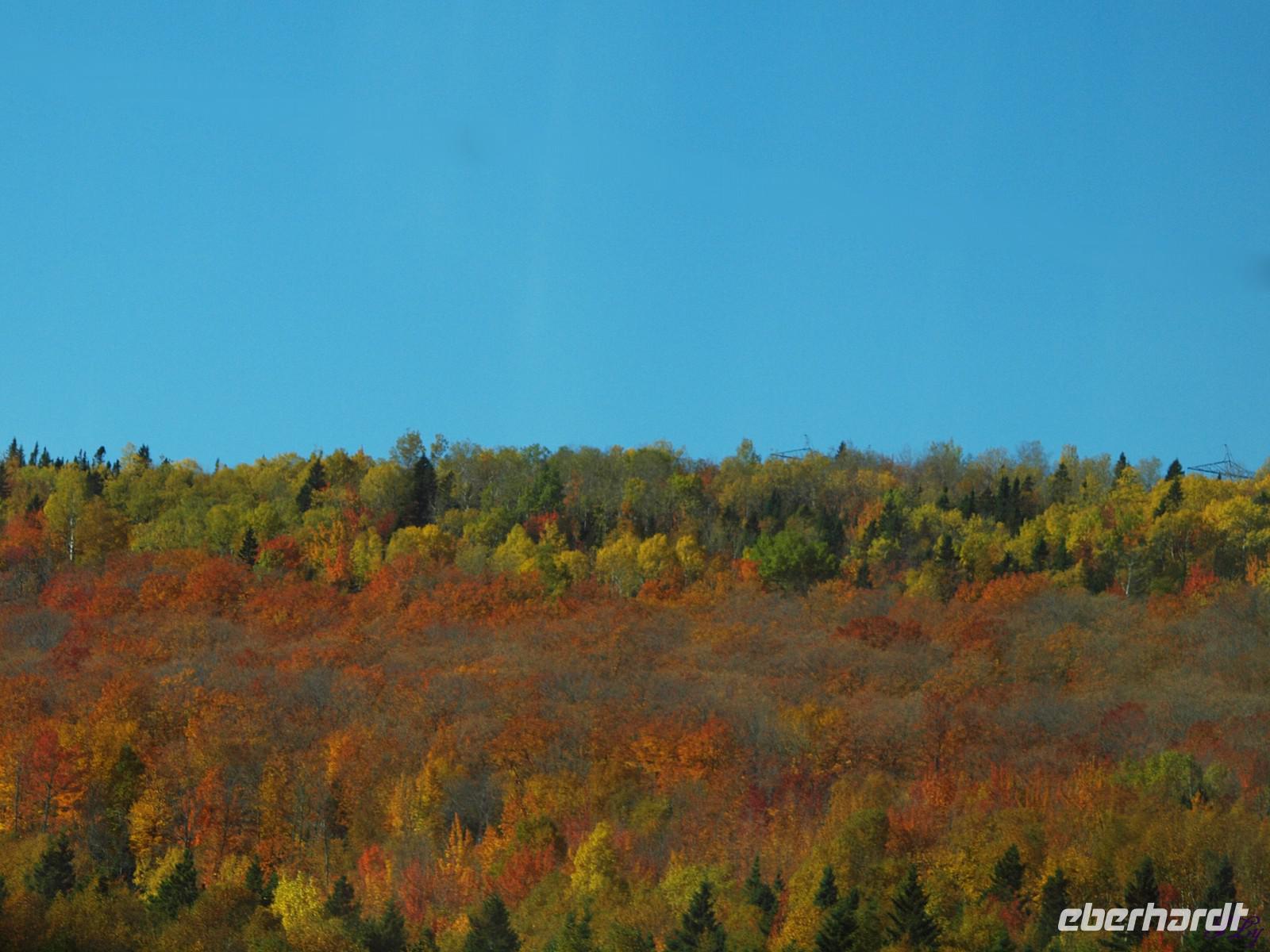Ab 7.30 Uhr Frühstück im Hotel. Es gibt ein kleines Buffet und eine Mitarbeiterin des Hotels hält warme Milch für das Müsli und Bohnen, eine Spezialität der Region, auf Wunsch bereit. Wir nutzen den schönen Sonnenaufgang über dem St. Lorenz Strom auch schon für die ersten Fotomotive des Tages. Um 8.30 Uhr fahren wir los. Heute liegt eine weite Strecke von etwa 300 Kilometern vor uns. Wir fahren am St. Lorenz Strom entlang zurück in Richtung Quebec City. Unterwegs sehen wir am Ufer des St. Lorenz Stromes hunderte Schneegänse fliegen, die sich hier Anfang Oktober für ihren Flug gen Süden sammeln.Dann besichtigen wir die Basilika Sainte Anne de Beaupre. Wunderschön liegt die helle Kirche vor den Herbstfarben der Bäume. Hier gibt es auch jede Menge öffentlicher Toiletten. Dann besichtigen wir die riesige Kirche von innen. Aufgrund einiger Wunderheilungen, die hier geschehen sein sollen, zieht die Wallfahrtskirche bis heute viele katholische Gläubige an. Im Inneren kann man kunstvolle Mosaike und Bleiglasfenster bestaunen. Nach etwa 30 Minuten Aufenthalt fahren wir weiter in Richtung Quebec und biegen am Stadtrand in Richtung Nordwesten ab. Die Autobahn führt durch herrliche rot und orange gefärbte Wälder. Selbst die Hügelketten am Horizont erstrahlen in roten Tönen. Das bekommt man wirklich nur hier in Ostkanada zu sehen! Die Farben sind einfach unglaublich und wir haben riesiges Glück mit dem schönen Wetter! Um 13.00 Uhr legen wir eine Mittagspause wieder an der Kathedrale am Cap Madeleine am St. Lorenz Strom ein. Die Cafeteria hat leider schon Winterpause. Wir nutzen die Toiletten und die Getränkeautomaten und bummeln durch den Park, in dem es von Eichhörnchen nur so wimmelt. Gern posieren sie für die Kamera. Weiterfahrt um 13.45 Uhr. Nun verlassen wir den St. Lorenz Strom und es geht in Richtung Norden. Hier gibt es nur noch ländliche Regionen mit Landwirtschaft und kleinen, beschaulichen Dörfern. Die hübschen Holzhäuschen vor den bunten Laubbäumen, die Bauernhöfe und die rot bewaldeten Hügelketten sind eine Augenweide! Gegen 16.00 Uhr legen wir einen letzten Fotostopp in Saint Zenon ein. Hier gibt es neben der kleinen Kirche einen schönen Aussichtspunkt, von dem man über das Tal blicken kann. Dann sind es nur noch etwa 30 Minuten bis zu unserem Hotel in der Nähe von Saint Michel des Saints.Wir erreichen das Resort „Auberge du Lac Taureau“ am gleichnamigen See gegen 17.15 Uhr.Die Zimmer sind im Landhausstil eingerichtet, eher klein und gemütlich. Es gibt wie üblich TV, Telefon, Radiowecker, Föhn, Kosmetikartikel, Klimaanlage, Bügeleisen, Kaffeemaschine und teilweise auch einen Kühlschrank. Um 19.00 Uhr treffen wir uns alle zum Abendessen. Das Restaurant liegt in dem Gebäude rechts von der Rezeption. Es gibt ein 3-Gang-Menü mit Salat, Fisch oder Steak als Hauptgericht und Dessert mit Kaffee. Ein Glas Wein kostet 10 bis 11 CAD, das Trinkgeld ist bereits inkludiert. Das Personal ist freundlich und schnell. Im Untergeschoss befinden sich das Schwimmbad (ca. 12 x 5 Meter) und die Sauna. Da die Herrensauna geschlossen ist, können alle die Damensauna benutzen. Handtücher liegen in den Umkleideräumen extra bereit. Einen Bademantel kann man sich kostenlos an der Rezeption ausleihen. In die Sauna geht man hier übrigens, wie in Amerika üblich, mit Badebekleidung und nicht nackt. Die gemütliche Bar im Untergeschoss lädt zu einem Gute-Nacht-Getränk ein. Mittwoch, 12.10.2011