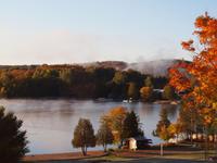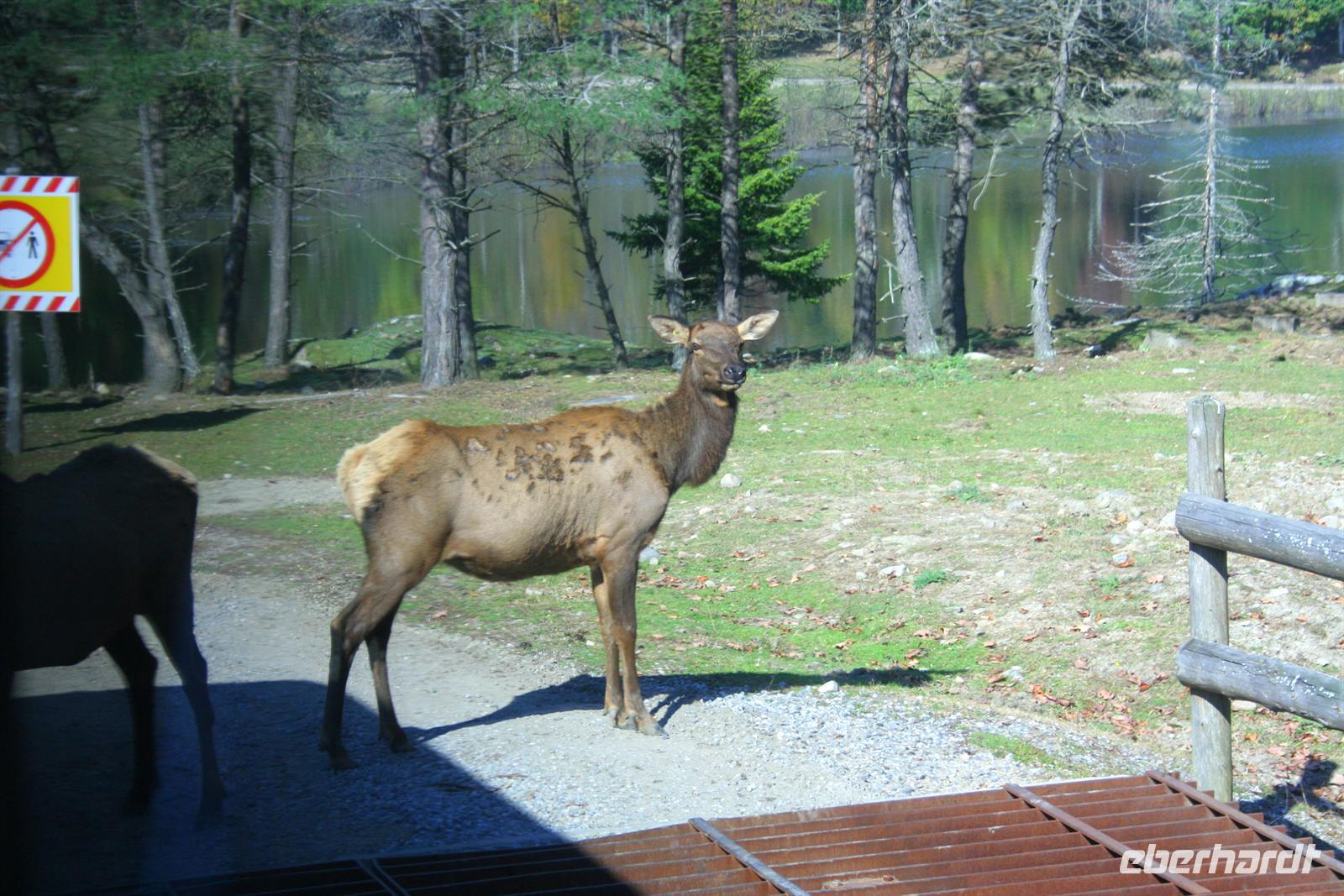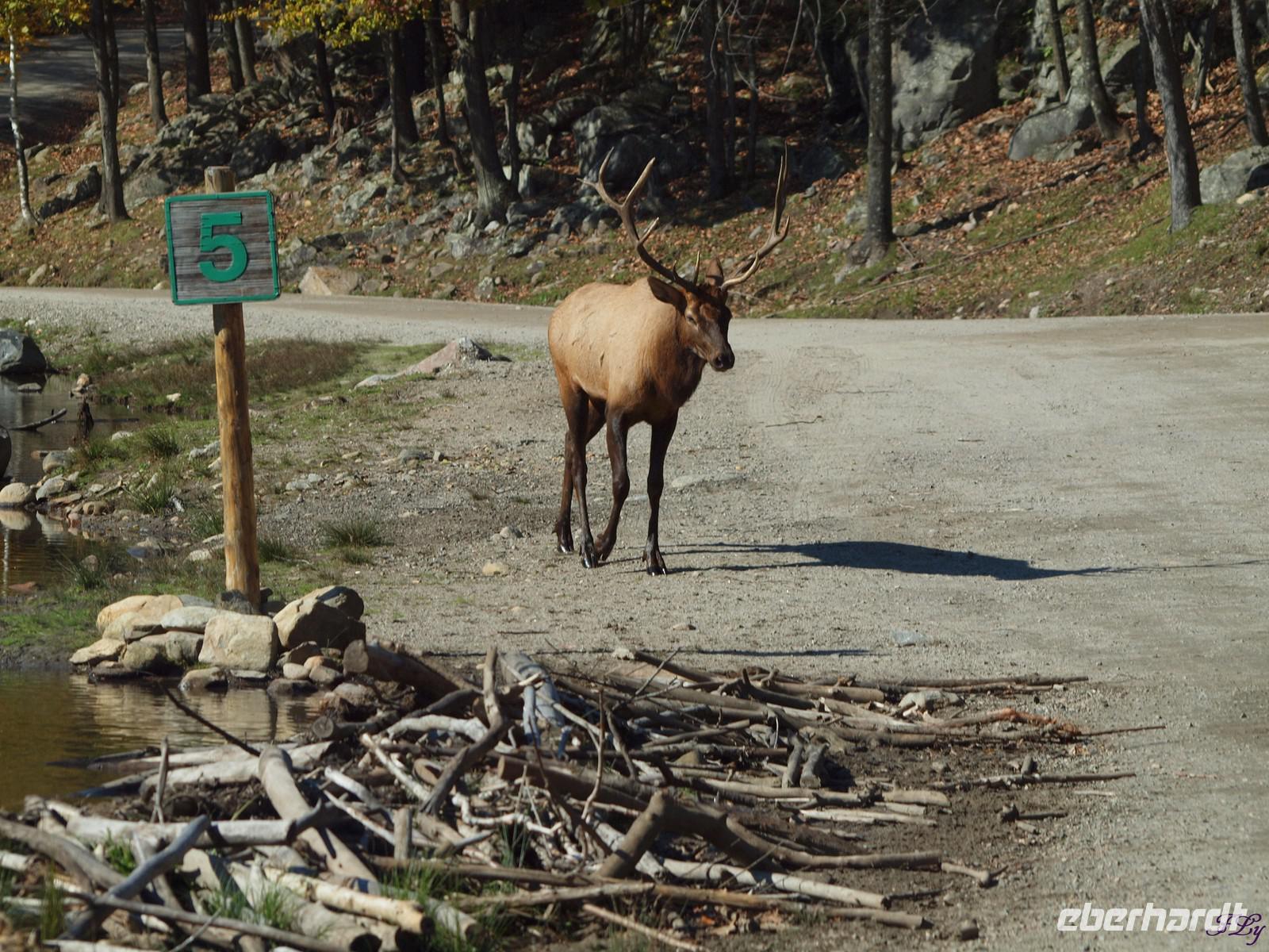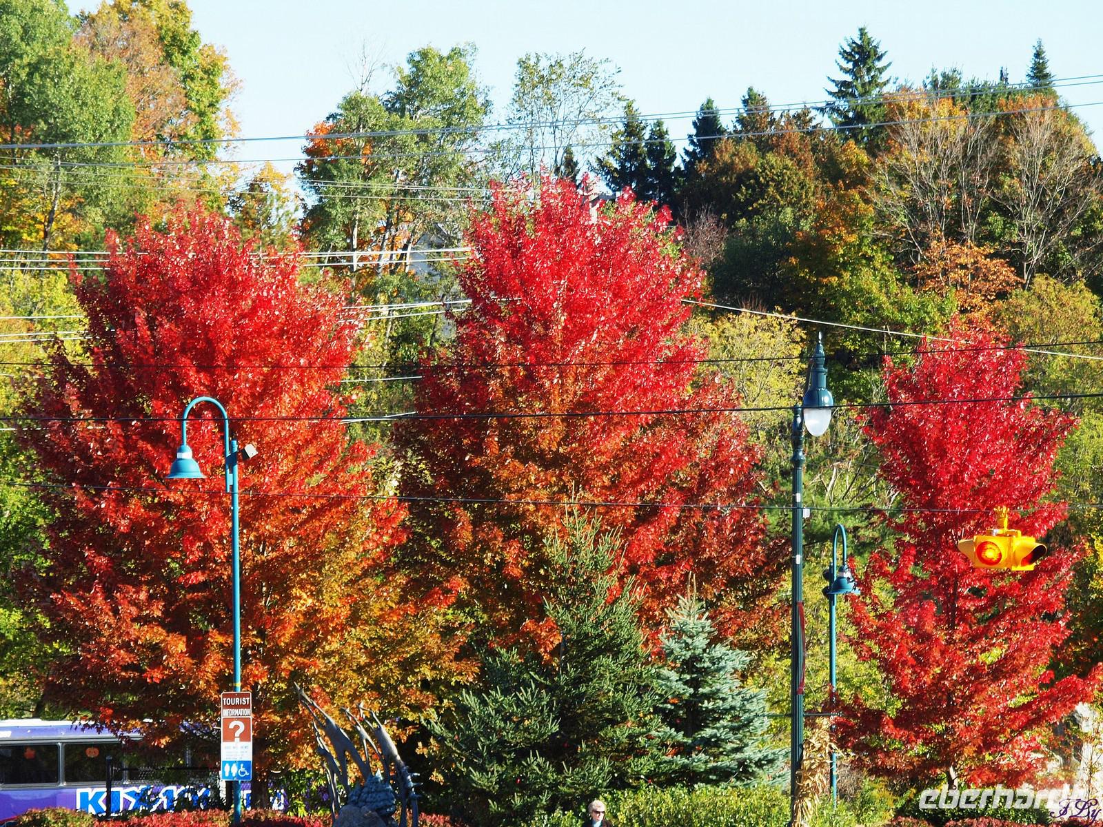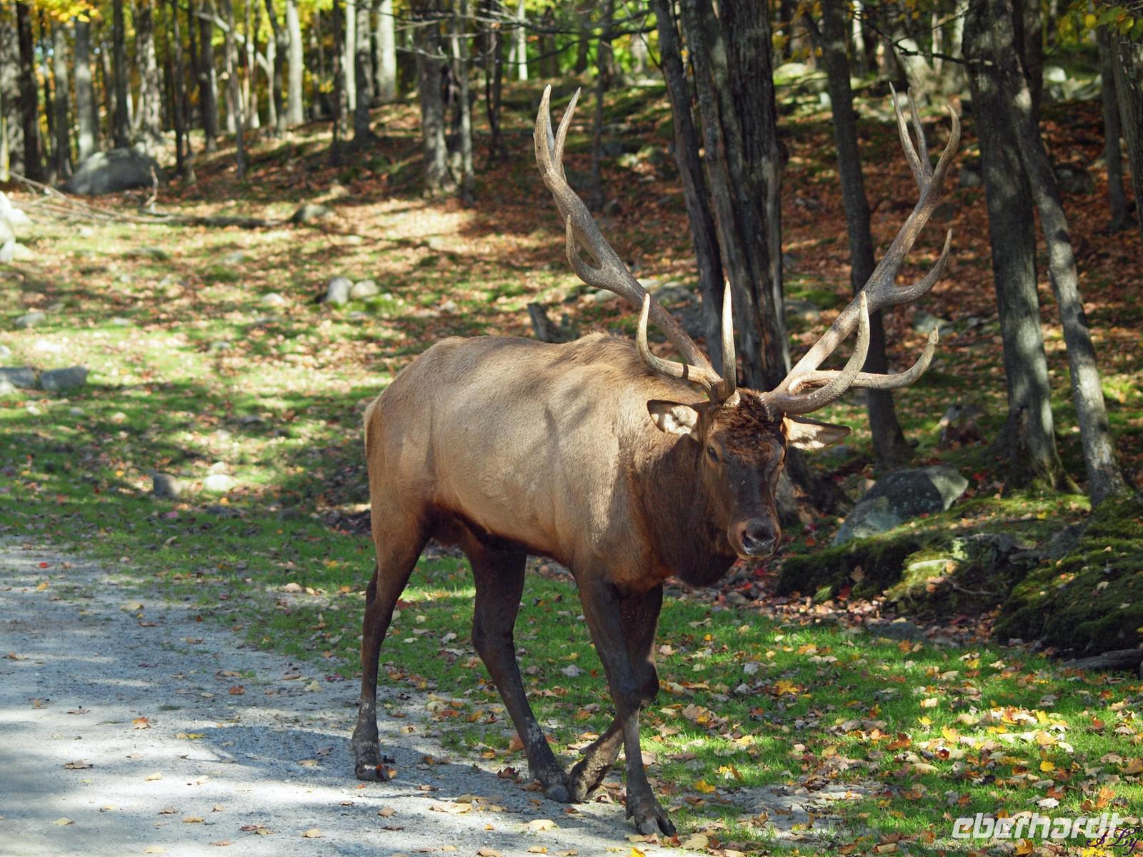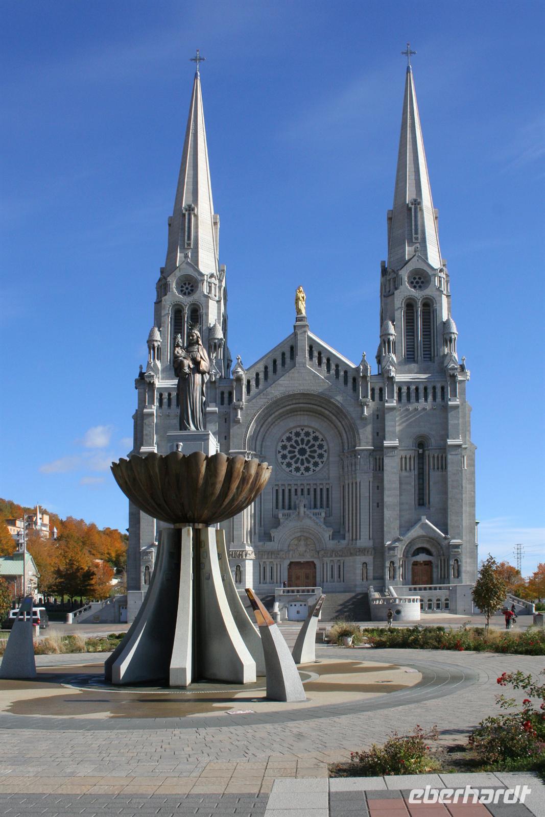 Ab 7.30 Uhr Frühstück im Hotel. Es gibt ein kleines Buffet und eine Mitarbeiterin des Hotels hält warme Milch für das Müsli und Bohnen, eine Spezialität der Region, auf Wunsch bereit. Wir nutzen den schönen Sonnenaufgang über dem St. Lorenz Strom auch schon für die ersten Fotomotive des Tages. Um 8.30 Uhr fahren wir los. Heute liegt eine weite Strecke von etwa 300 Kilometern vor uns. Wir fahren am St. Lorenz Strom entlang zurück in Richtung Quebec City. Unterwegs sehen wir am Ufer des St. Lorenz Stromes hunderte Schneegänse fliegen, die sich hier Anfang Oktober für ihren Flug gen Süden sammeln.Dann besichtigen wir die Basilika Sainte Anne de Beaupre. Wunderschön liegt die helle Kirche vor den Herbstfarben der Bäume. Hier gibt es auch jede Menge öffentlicher Toiletten. Dann besichtigen wir die riesige Kirche von innen. Aufgrund einiger Wunderheilungen, die hier geschehen sein sollen, zieht die Wallfahrtskirche bis heute viele katholische Gläubige an. Im Inneren kann man kunstvolle Mosaike und Bleiglasfenster bestaunen. Nach etwa 30 Minuten Aufenthalt fahren wir weiter in Richtung Quebec und biegen am Stadtrand in Richtung Nordwesten ab. Die Autobahn führt durch herrliche rot und orange gefärbte Wälder. Selbst die Hügelketten am Horizont erstrahlen in roten Tönen. Das bekommt man wirklich nur hier in Ostkanada zu sehen! Die Farben sind einfach unglaublich und wir haben riesiges Glück mit dem schönen Wetter! Um 13.00 Uhr legen wir eine Mittagspause wieder an der Kathedrale am Cap Madeleine am St. Lorenz Strom ein. Die Cafeteria hat leider schon Winterpause. Wir nutzen die Toiletten und die Getränkeautomaten und bummeln durch den Park, in dem es von Eichhörnchen nur so wimmelt. Gern posieren sie für die Kamera. Weiterfahrt um 13.45 Uhr. Nun verlassen wir den St. Lorenz Strom und es geht in Richtung Norden. Hier gibt es nur noch ländliche Regionen mit Landwirtschaft und kleinen, beschaulichen Dörfern. Die hübschen Holzhäuschen vor den bunten Laubbäumen, die Bauernhöfe und die rot bewaldeten Hügelketten sind eine Augenweide! Gegen 16.00 Uhr legen wir einen letzten Fotostopp in Saint Zenon ein. Hier gibt es neben der kleinen Kirche einen schönen Aussichtspunkt, von dem man über das Tal blicken kann. Dann sind es nur noch etwa 30 Minuten bis zu unserem Hotel in der Nähe von Saint Michel des Saints.Wir erreichen das Resort „Auberge du Lac Taureau“ am gleichnamigen See gegen 17.15 Uhr.Die Zimmer sind im Landhausstil eingerichtet, eher klein und gemütlich. Es gibt wie üblich TV, Telefon, Radiowecker, Föhn, Kosmetikartikel, Klimaanlage, Bügeleisen, Kaffeemaschine und teilweise auch einen Kühlschrank. Um 19.00 Uhr treffen wir uns alle zum Abendessen. Das Restaurant liegt in dem Gebäude rechts von der Rezeption. Es gibt ein 3-Gang-Menü mit Salat, Fisch oder Steak als Hauptgericht und Dessert mit Kaffee. Ein Glas Wein kostet 10 bis 11 CAD, das Trinkgeld ist bereits inkludiert. Das Personal ist freundlich und schnell. Im Untergeschoss befinden sich das Schwimmbad (ca. 12 x 5 Meter) und die Sauna. Da die Herrensauna geschlossen ist, können alle die Damensauna benutzen. Handtücher liegen in den Umkleideräumen extra bereit. Einen Bademantel kann man sich kostenlos an der Rezeption ausleihen. In die Sauna geht man hier übrigens, wie in Amerika üblich, mit Badebekleidung und nicht nackt. Die gemütliche Bar im Untergeschoss lädt zu einem Gute-Nacht-Getränk ein. Mittwoch, 12.10.2011