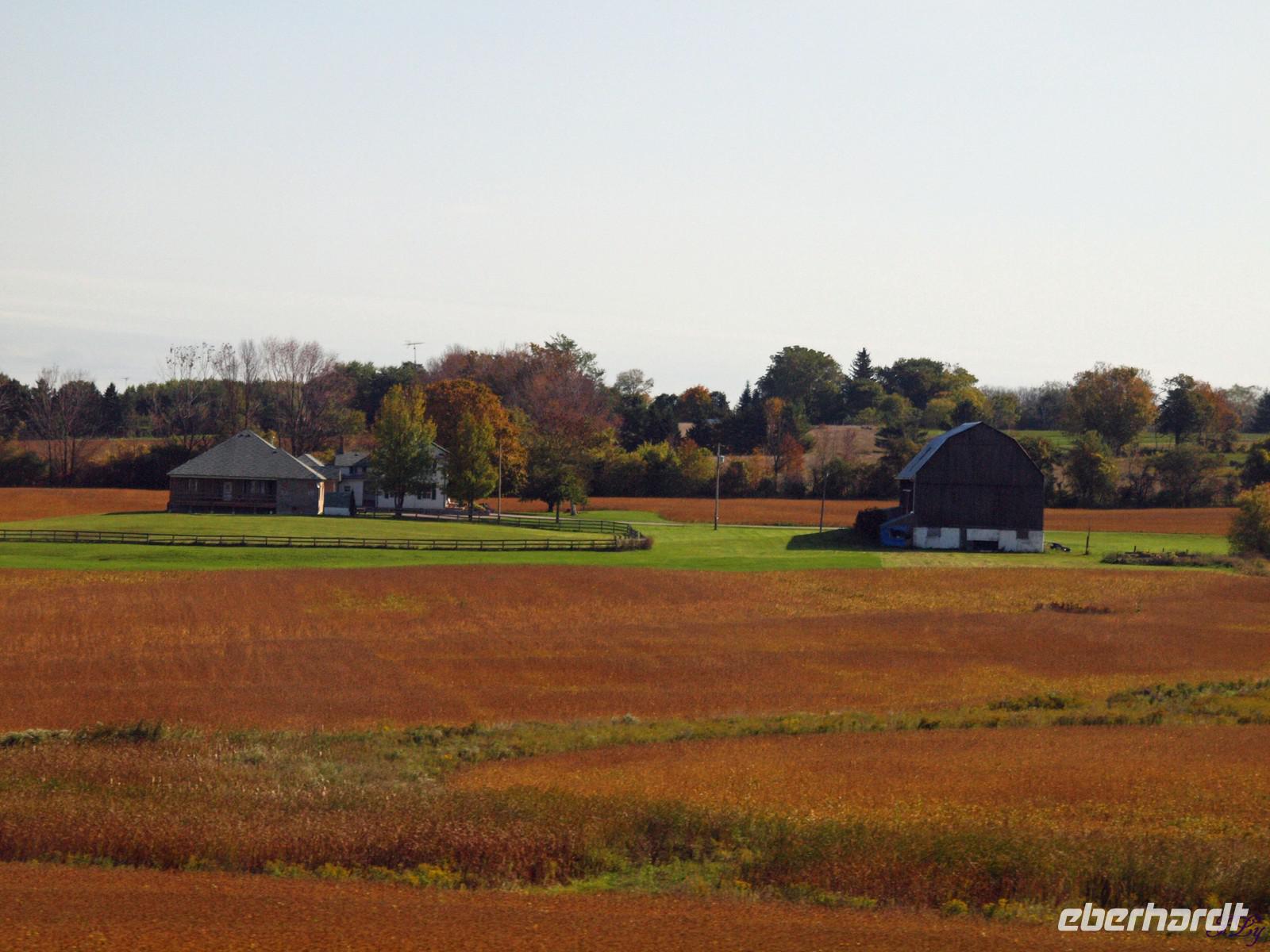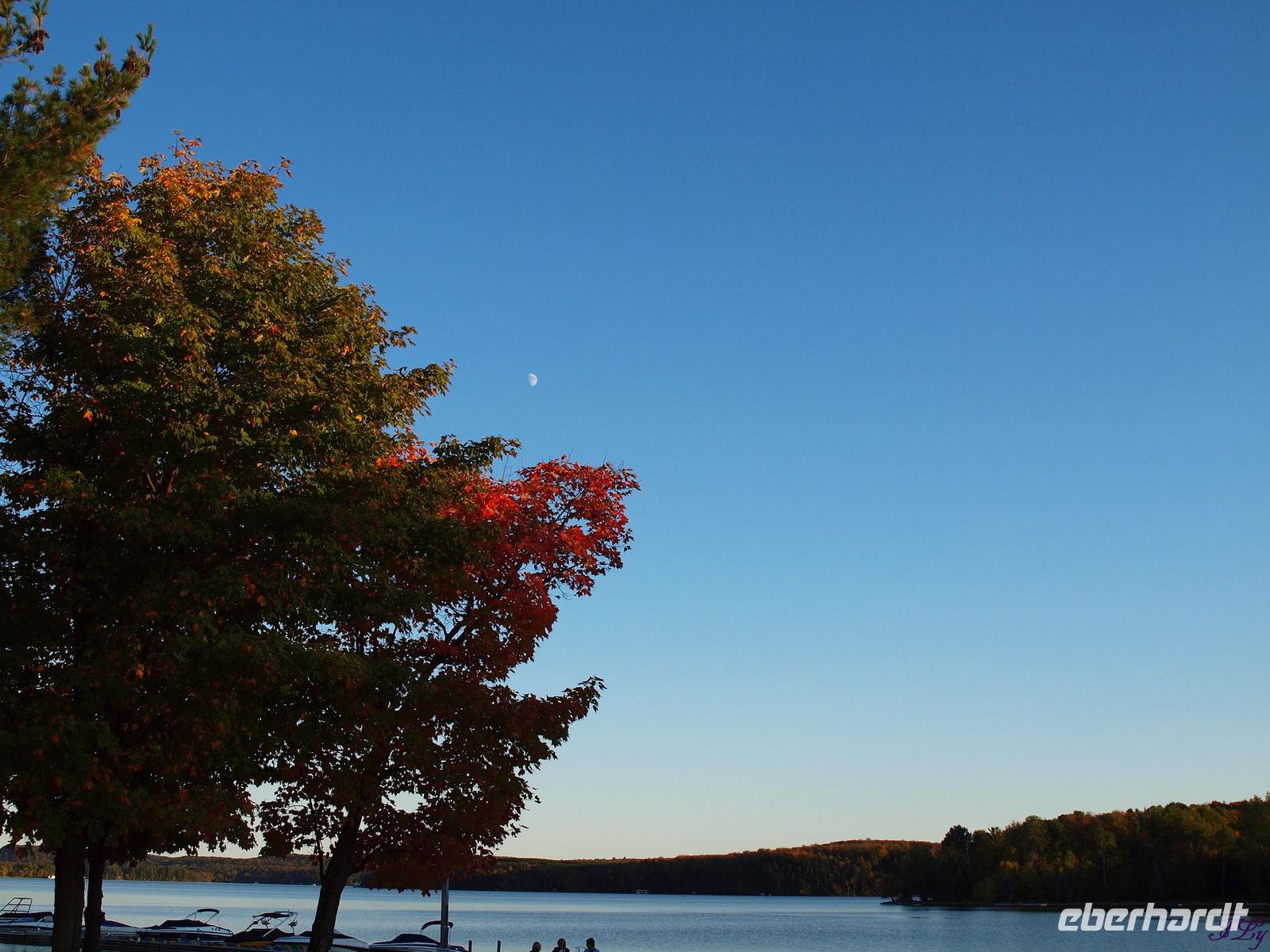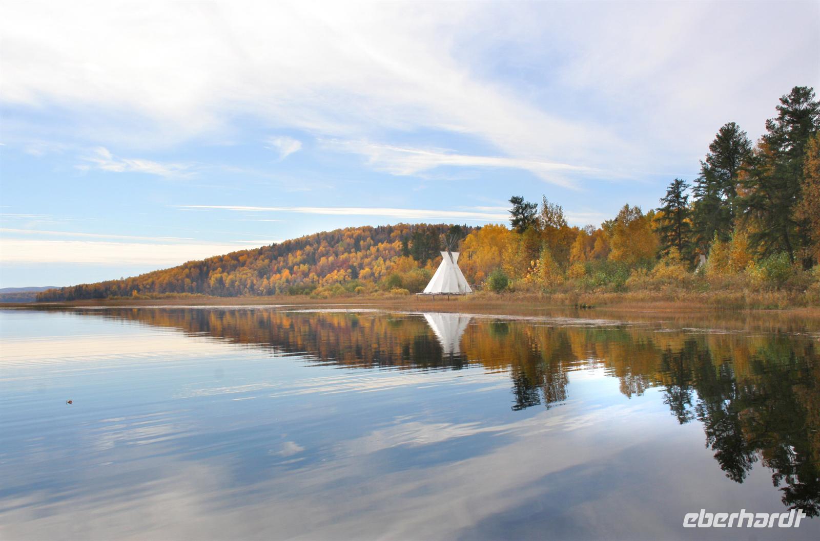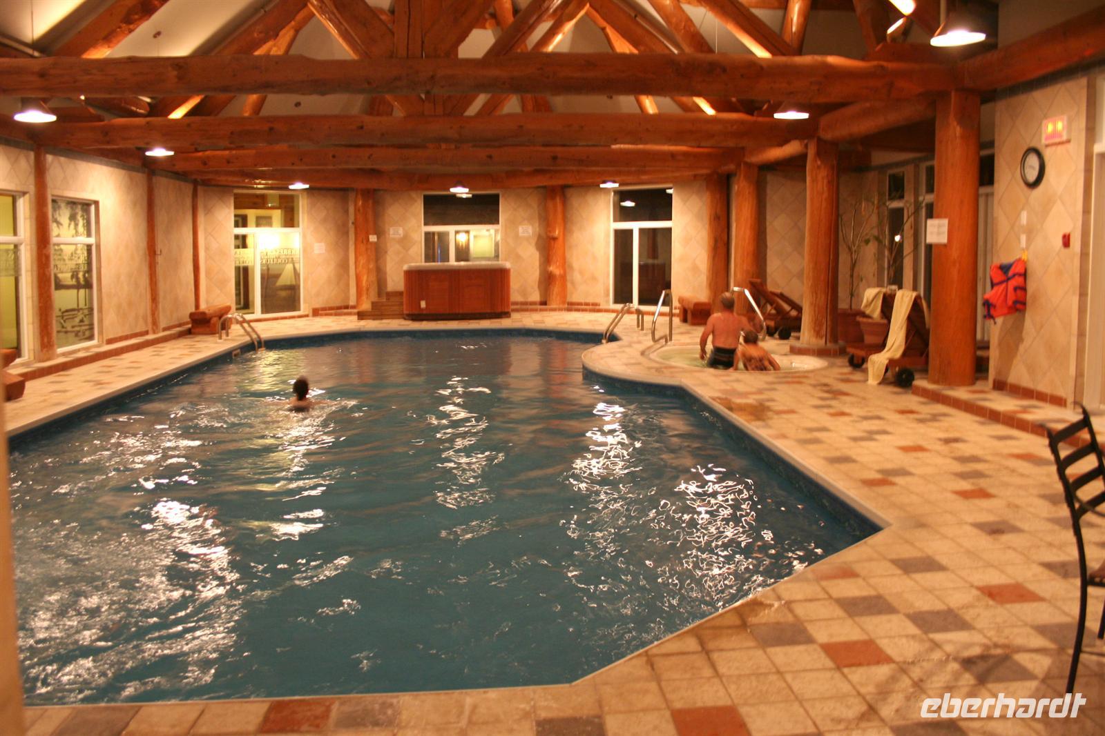 Weckruf um 6.30 Uhr. Frühstück im Hotelrestaurant um 7.30 Uhr. Das Frühstück erfolgte direkt am Tisch. Es standen große Platten mit Wurst und Käse sowie Obst auf dem Tisch und jeder bekam einen Teller mit Rührei, Toast und kleinen Croissants dazu. Das Frühstück kam sehr gut an und war sehr reichlich. Schön ist das frische Obst: Melone, Weintrauben, Erdbeeren.8.30 Uhr Koffer verladen und Abfahrt zurück in Richtung Toronto und weiter in die Muskoka-Region nördlich von Toronto. In Midland besuchen wir die rekonstruierte Jesuitenmission Sainte-Marie among the Hurons. Das kleine mit Holzpalisaden umrahmte Dorf wurde originalgetreu rekonstruiert und zeigt die Gebäude der Jesuiten und Huronen-Indianer, die hier zeitweise gemeinsam lebten. Die Führung in Deutsch übernimmt eine örtliche Führerin Ilse, die selbst aus Deutschland stammt. Sie zeigt uns die Gebäude und erklärt uns alles Wissenswerte zum Leben der Jesuiten und Indianer. Jeder bekommt ein Prospekt mit Lageplan und Erklärungen in Deutsch. Wir sehen die Gebetshäuser, die Lager und Ställe, die einfachen Wohnräume der Jesuiten, Indianer-Tipis aus Holz und Rinde sowie die typischen Langhäuser der Indianer. Es ist sehr interessant.Im Museumsgebäude essen wir zu Mittag. Es gibt Salat, Lasagne, Hackfleisch und Kartoffeln, Möhren und Kuchen, Kaffee und Obst zum Dessert. Im Souvenirgeschäft kann man Indianer-Souvenirs kaufen: Traumfänger, Bücher, Schmuck, Tassen, Bilder ... alles wurde hier in Kanada hergestellt. Gegen 15.00 Uhr fahren wir weiter in Richtung Norden bzw. Nordosten. Unser Ziel ist das „Hidden Valley Resort" am Rande des Algonquin-Nationalparks. Etwa 10 Minuten vor dem Hotel kaufen wir noch einmal in einem Supermarkt ein. So kann sich jeder etwas zum Essen und ein Fläschchen Wein für abends besorgen. Natürlich besteht auch die Möglichkeit, individuell im Hotelrestaurant zu essen. Um 18.00 Uhr kommen wir am Hotel an. Es liegt wunderschön ruhig an einem See inmitten der Natur. Wir checken hier für die nächsten beiden Nächte ein und unternehmen einen kleinen Spaziergang durch die Hotelanlage hinunter zum See. Bei einem Glas Wein oder einem Bier von der Bar lassen wir den Tag gemütlich ausklingen.Die Zimmer sind ausgestattet mit Wanne/WC, Föhn, Bügeleisen, Kosmetikartikeln, TV, Radiowecker, Telefon und Klimaanlage/Heizung sowie Balkon. Es gibt ein Restaurant, eine Bar, einen Innen- und einen Außenpool, Tennisplätze und einen Basketballplatz. In der Lobby ist ein Computer mit kostenlosem Internetzugang. Das funktioniert problemlos.Donnerstag, 06.10.2011