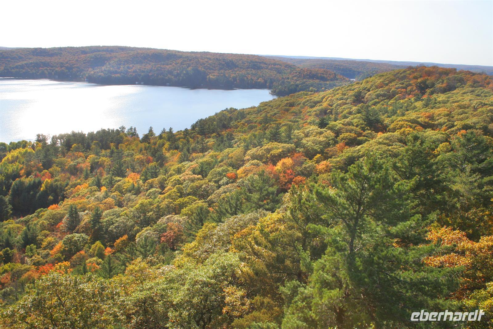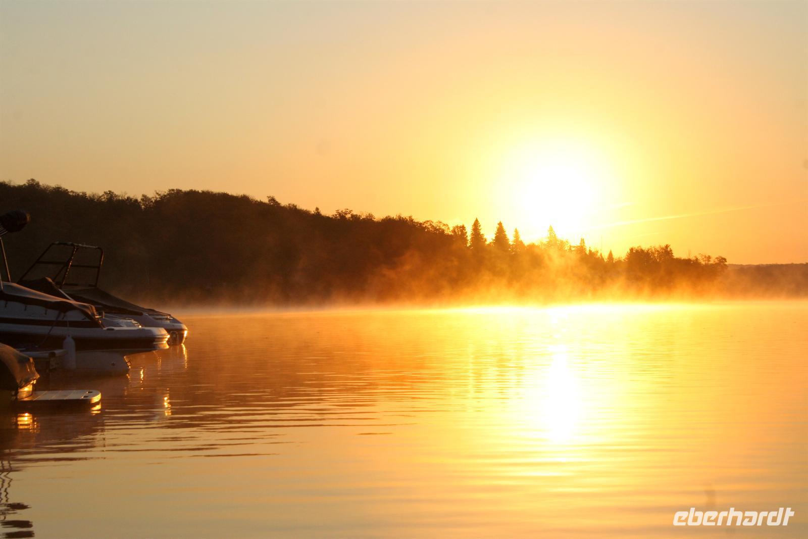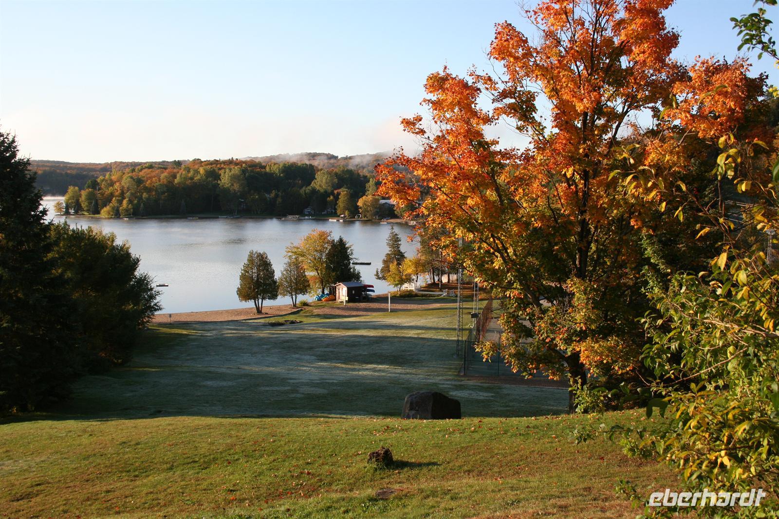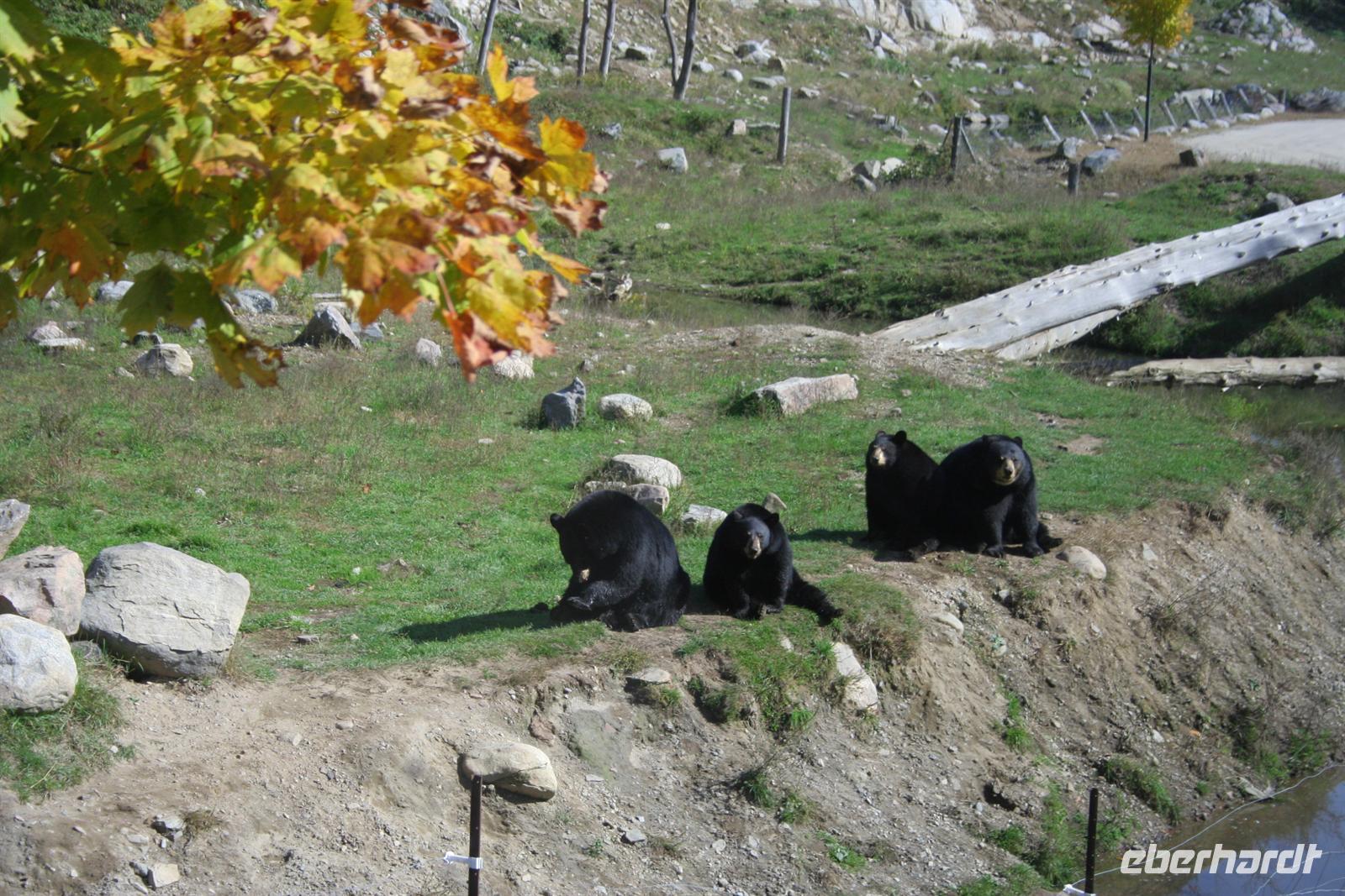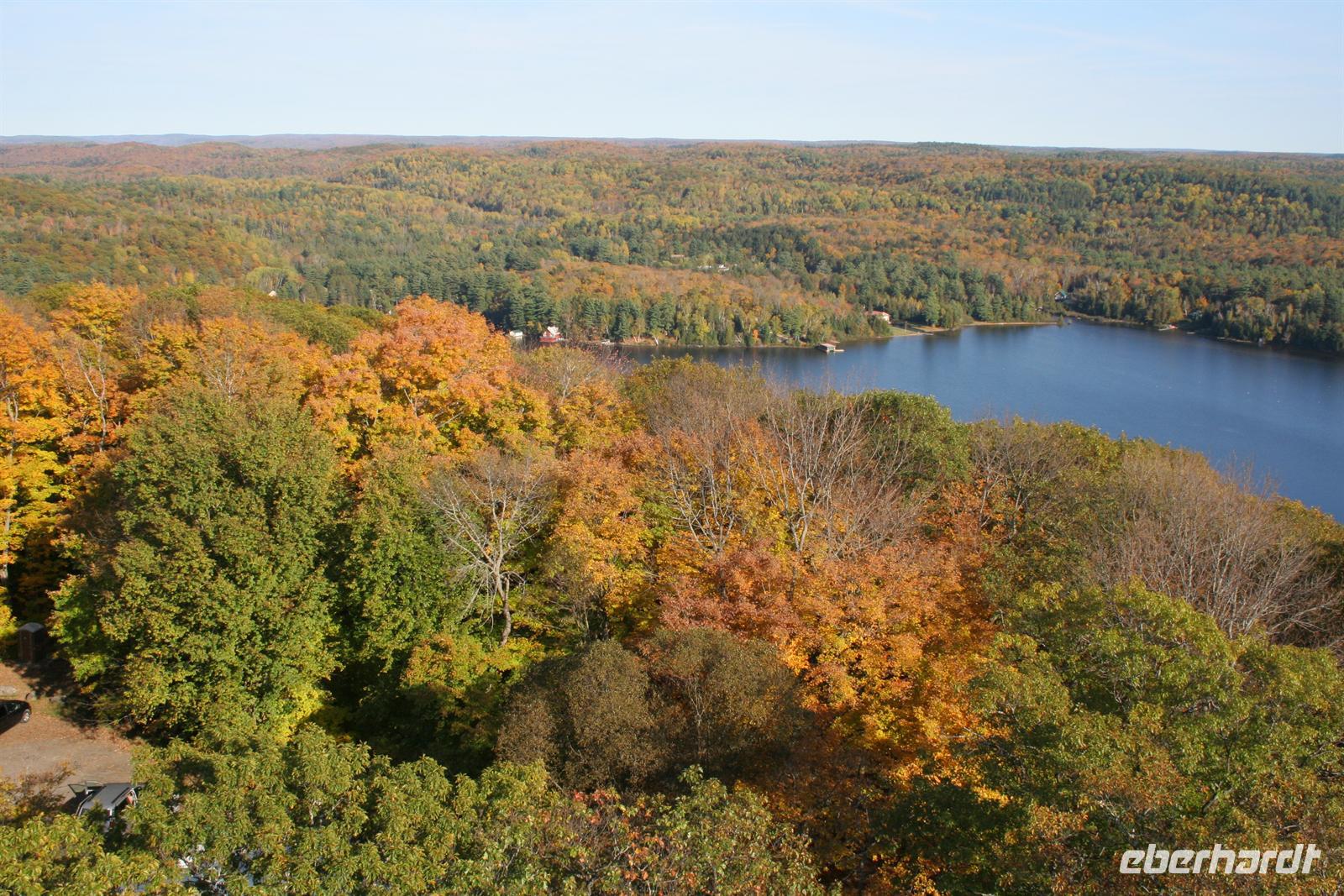 Weckruf um 6.30 Uhr. Frühstück im Hotelrestaurant um 7.30 Uhr. Das Frühstück erfolgte direkt am Tisch. Es standen große Platten mit Wurst und Käse sowie Obst auf dem Tisch und jeder bekam einen Teller mit Rührei, Toast und kleinen Croissants dazu. Das Frühstück kam sehr gut an und war sehr reichlich. Schön ist das frische Obst: Melone, Weintrauben, Erdbeeren.8.30 Uhr Koffer verladen und Abfahrt zurück in Richtung Toronto und weiter in die Muskoka-Region nördlich von Toronto. In Midland besuchen wir die rekonstruierte Jesuitenmission Sainte-Marie among the Hurons. Das kleine mit Holzpalisaden umrahmte Dorf wurde originalgetreu rekonstruiert und zeigt die Gebäude der Jesuiten und Huronen-Indianer, die hier zeitweise gemeinsam lebten. Die Führung in Deutsch übernimmt eine örtliche Führerin Ilse, die selbst aus Deutschland stammt. Sie zeigt uns die Gebäude und erklärt uns alles Wissenswerte zum Leben der Jesuiten und Indianer. Jeder bekommt ein Prospekt mit Lageplan und Erklärungen in Deutsch. Wir sehen die Gebetshäuser, die Lager und Ställe, die einfachen Wohnräume der Jesuiten, Indianer-Tipis aus Holz und Rinde sowie die typischen Langhäuser der Indianer. Es ist sehr interessant.Im Museumsgebäude essen wir zu Mittag. Es gibt Salat, Lasagne, Hackfleisch und Kartoffeln, Möhren und Kuchen, Kaffee und Obst zum Dessert. Im Souvenirgeschäft kann man Indianer-Souvenirs kaufen: Traumfänger, Bücher, Schmuck, Tassen, Bilder ... alles wurde hier in Kanada hergestellt. Gegen 15.00 Uhr fahren wir weiter in Richtung Norden bzw. Nordosten. Unser Ziel ist das „Hidden Valley Resort" am Rande des Algonquin-Nationalparks. Etwa 10 Minuten vor dem Hotel kaufen wir noch einmal in einem Supermarkt ein. So kann sich jeder etwas zum Essen und ein Fläschchen Wein für abends besorgen. Natürlich besteht auch die Möglichkeit, individuell im Hotelrestaurant zu essen. Um 18.00 Uhr kommen wir am Hotel an. Es liegt wunderschön ruhig an einem See inmitten der Natur. Wir checken hier für die nächsten beiden Nächte ein und unternehmen einen kleinen Spaziergang durch die Hotelanlage hinunter zum See. Bei einem Glas Wein oder einem Bier von der Bar lassen wir den Tag gemütlich ausklingen.Die Zimmer sind ausgestattet mit Wanne/WC, Föhn, Bügeleisen, Kosmetikartikeln, TV, Radiowecker, Telefon und Klimaanlage/Heizung sowie Balkon. Es gibt ein Restaurant, eine Bar, einen Innen- und einen Außenpool, Tennisplätze und einen Basketballplatz. In der Lobby ist ein Computer mit kostenlosem Internetzugang. Das funktioniert problemlos.Donnerstag, 06.10.2011