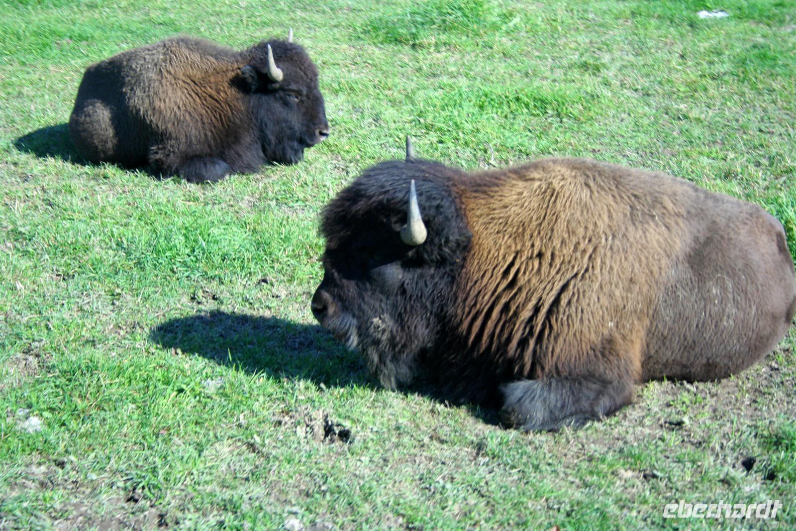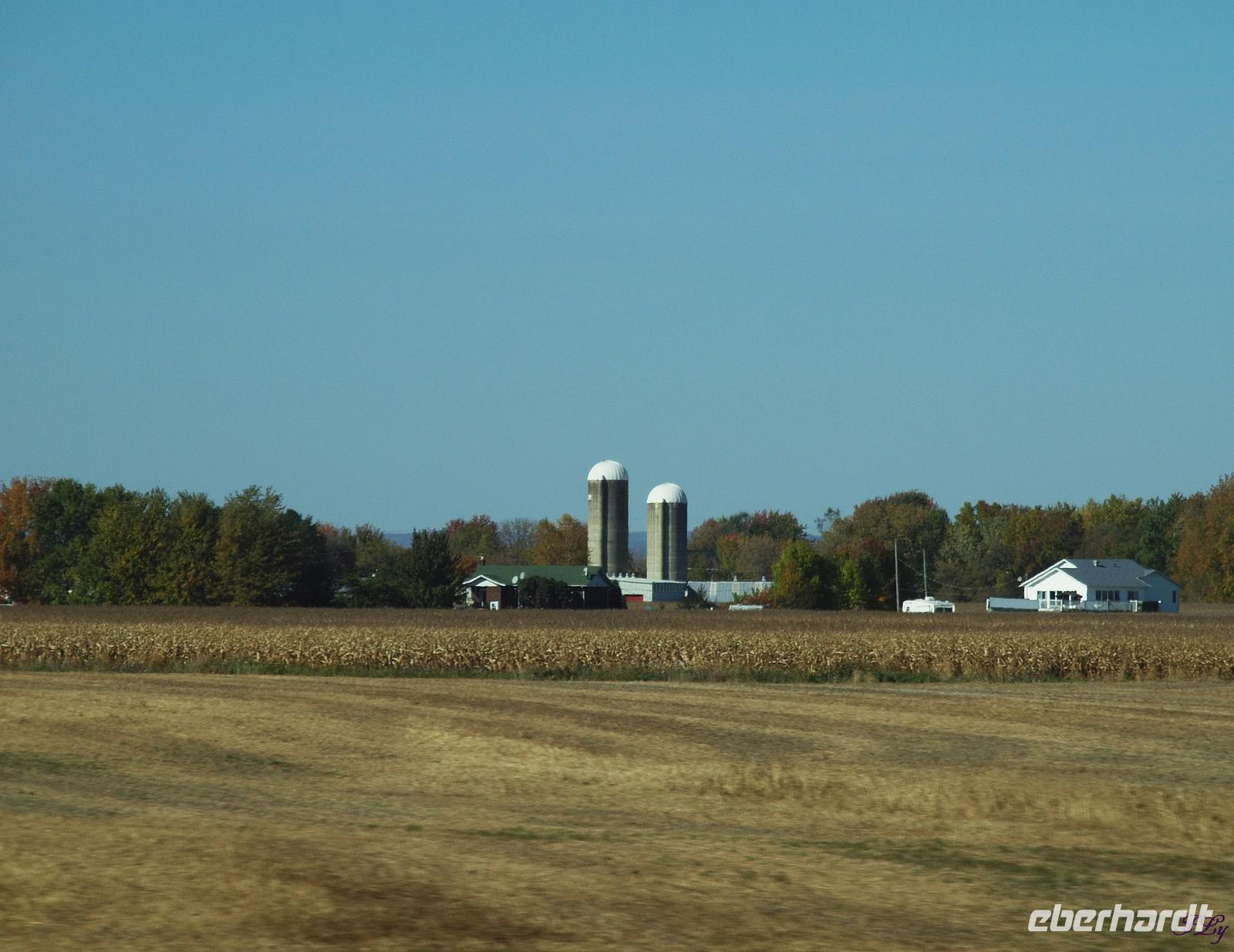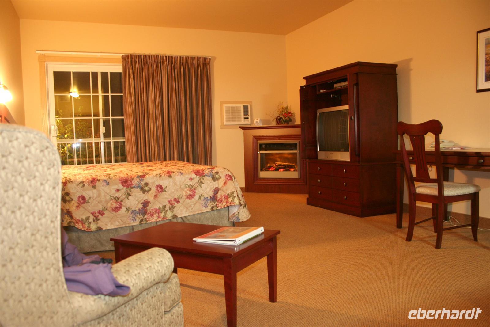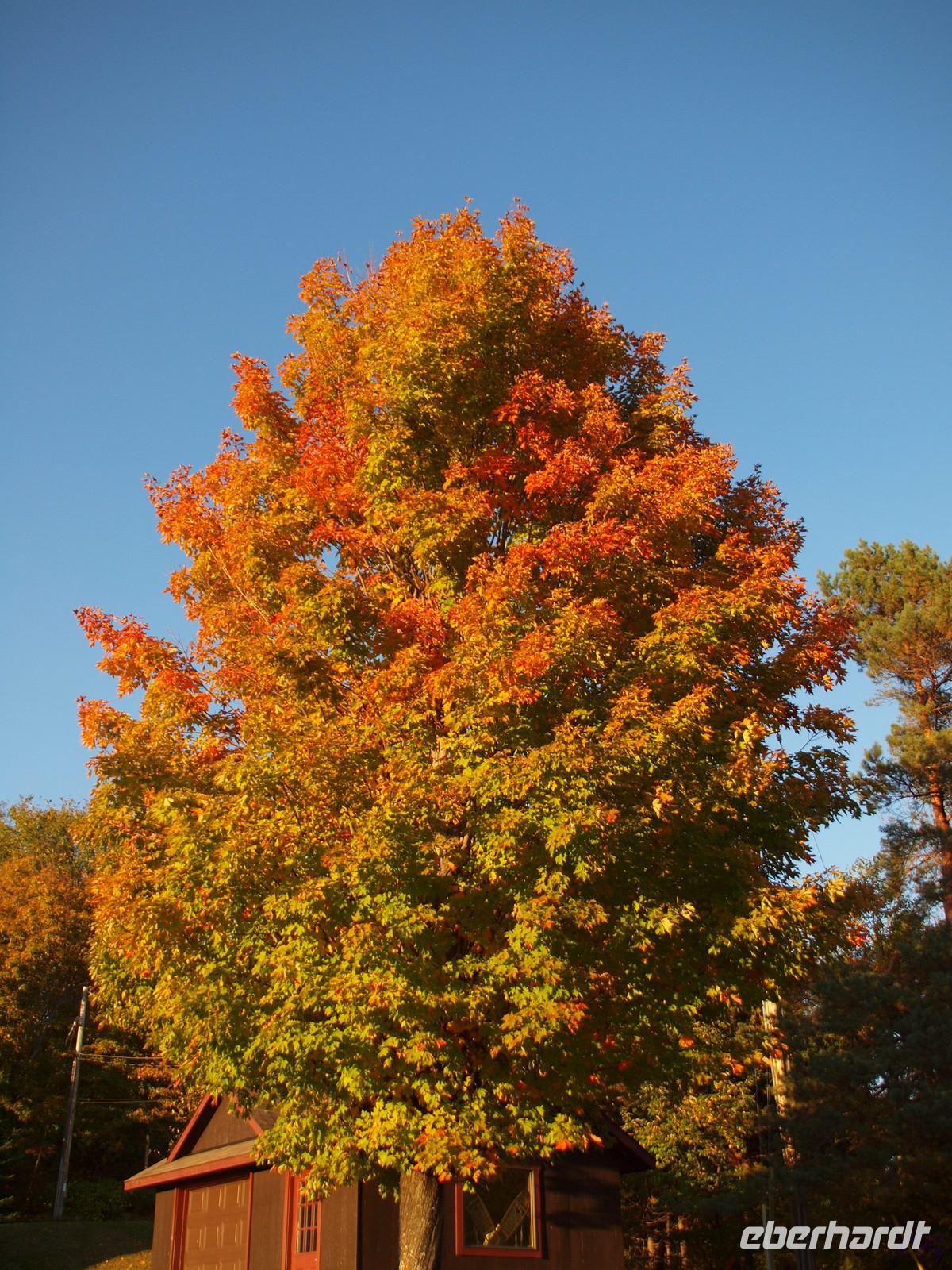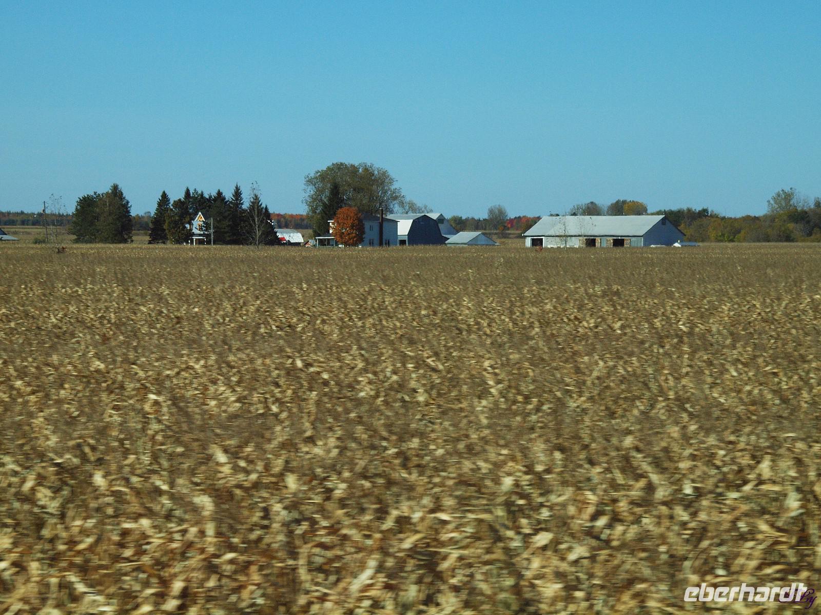 Weckruf um 6.30 Uhr. Frühstück im Hotelrestaurant um 7.30 Uhr. Das Frühstück erfolgte direkt am Tisch. Es standen große Platten mit Wurst und Käse sowie Obst auf dem Tisch und jeder bekam einen Teller mit Rührei, Toast und kleinen Croissants dazu. Das Frühstück kam sehr gut an und war sehr reichlich. Schön ist das frische Obst: Melone, Weintrauben, Erdbeeren.8.30 Uhr Koffer verladen und Abfahrt zurück in Richtung Toronto und weiter in die Muskoka-Region nördlich von Toronto. In Midland besuchen wir die rekonstruierte Jesuitenmission Sainte-Marie among the Hurons. Das kleine mit Holzpalisaden umrahmte Dorf wurde originalgetreu rekonstruiert und zeigt die Gebäude der Jesuiten und Huronen-Indianer, die hier zeitweise gemeinsam lebten. Die Führung in Deutsch übernimmt eine örtliche Führerin Ilse, die selbst aus Deutschland stammt. Sie zeigt uns die Gebäude und erklärt uns alles Wissenswerte zum Leben der Jesuiten und Indianer. Jeder bekommt ein Prospekt mit Lageplan und Erklärungen in Deutsch. Wir sehen die Gebetshäuser, die Lager und Ställe, die einfachen Wohnräume der Jesuiten, Indianer-Tipis aus Holz und Rinde sowie die typischen Langhäuser der Indianer. Es ist sehr interessant.Im Museumsgebäude essen wir zu Mittag. Es gibt Salat, Lasagne, Hackfleisch und Kartoffeln, Möhren und Kuchen, Kaffee und Obst zum Dessert. Im Souvenirgeschäft kann man Indianer-Souvenirs kaufen: Traumfänger, Bücher, Schmuck, Tassen, Bilder ... alles wurde hier in Kanada hergestellt. Gegen 15.00 Uhr fahren wir weiter in Richtung Norden bzw. Nordosten. Unser Ziel ist das „Hidden Valley Resort" am Rande des Algonquin-Nationalparks. Etwa 10 Minuten vor dem Hotel kaufen wir noch einmal in einem Supermarkt ein. So kann sich jeder etwas zum Essen und ein Fläschchen Wein für abends besorgen. Natürlich besteht auch die Möglichkeit, individuell im Hotelrestaurant zu essen. Um 18.00 Uhr kommen wir am Hotel an. Es liegt wunderschön ruhig an einem See inmitten der Natur. Wir checken hier für die nächsten beiden Nächte ein und unternehmen einen kleinen Spaziergang durch die Hotelanlage hinunter zum See. Bei einem Glas Wein oder einem Bier von der Bar lassen wir den Tag gemütlich ausklingen.Die Zimmer sind ausgestattet mit Wanne/WC, Föhn, Bügeleisen, Kosmetikartikeln, TV, Radiowecker, Telefon und Klimaanlage/Heizung sowie Balkon. Es gibt ein Restaurant, eine Bar, einen Innen- und einen Außenpool, Tennisplätze und einen Basketballplatz. In der Lobby ist ein Computer mit kostenlosem Internetzugang. Das funktioniert problemlos.Donnerstag, 06.10.2011