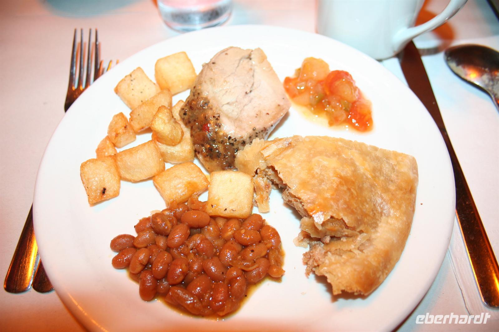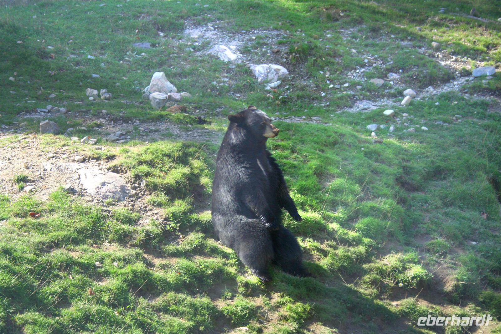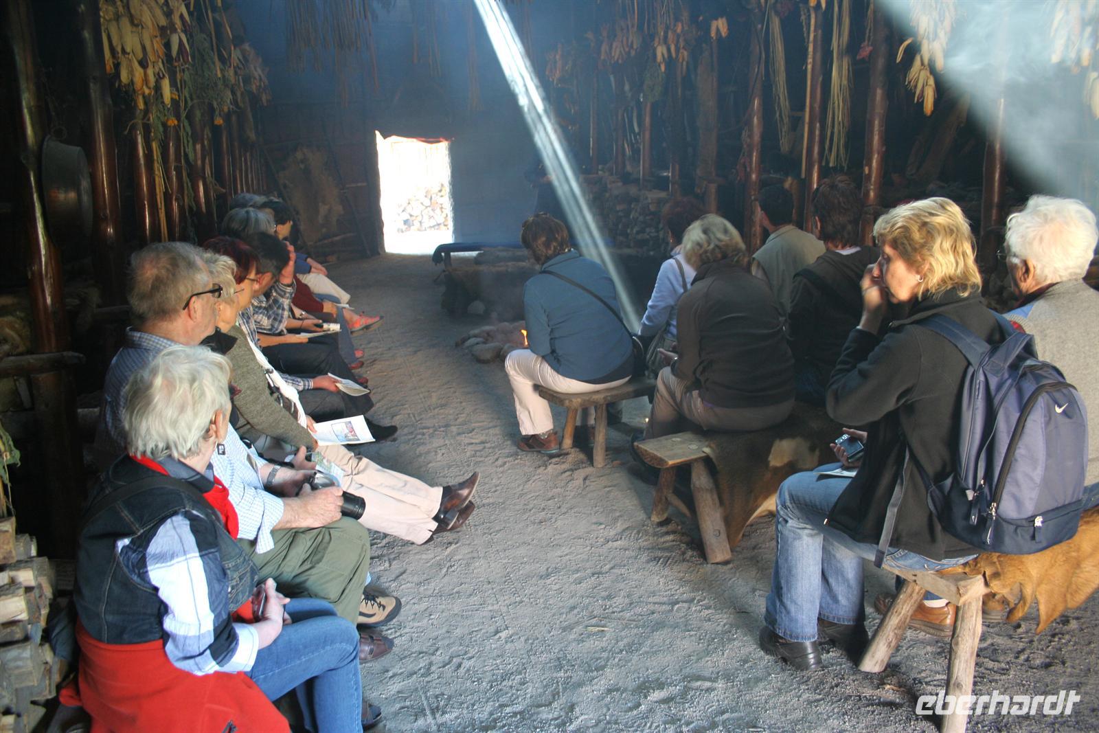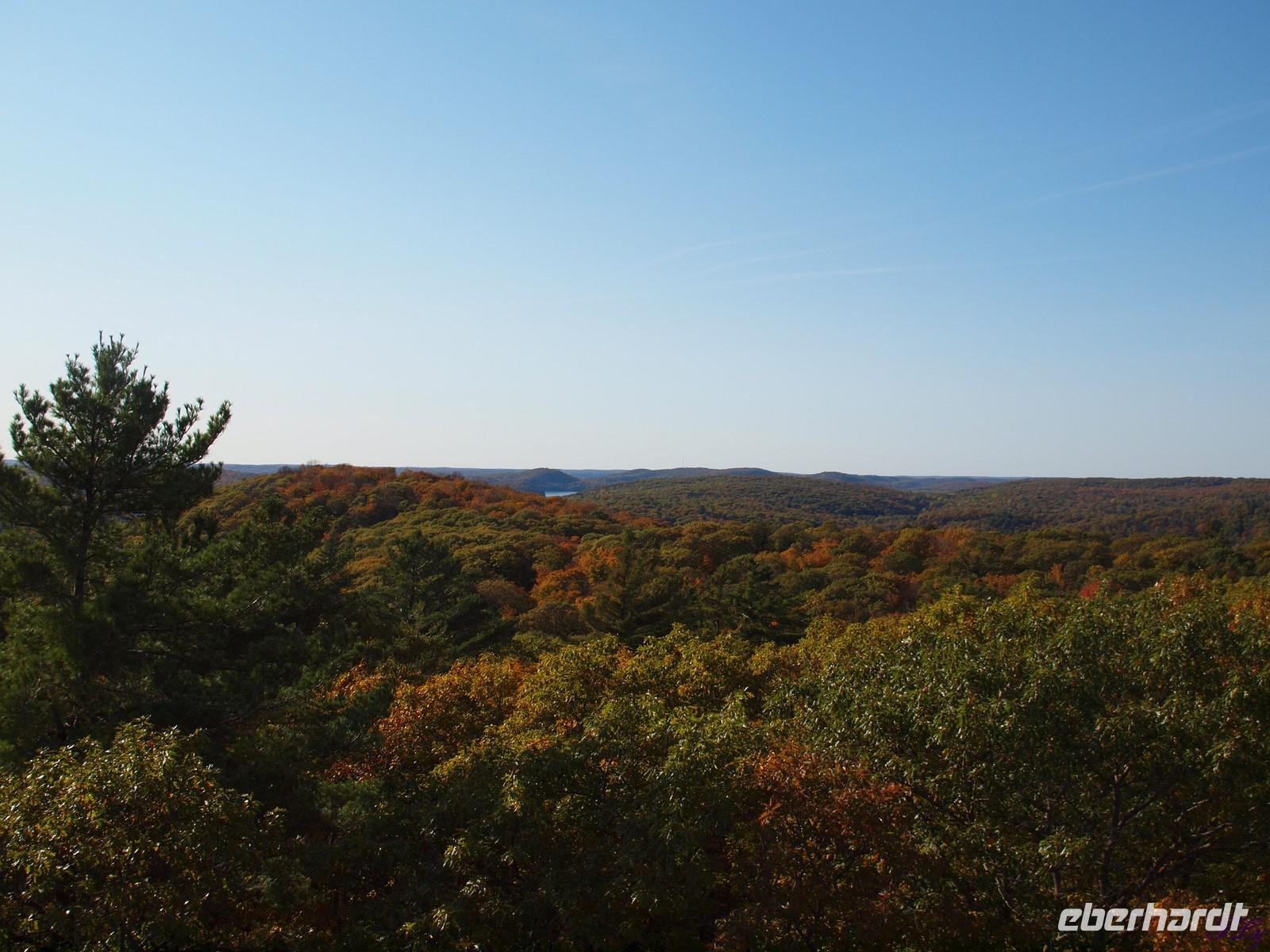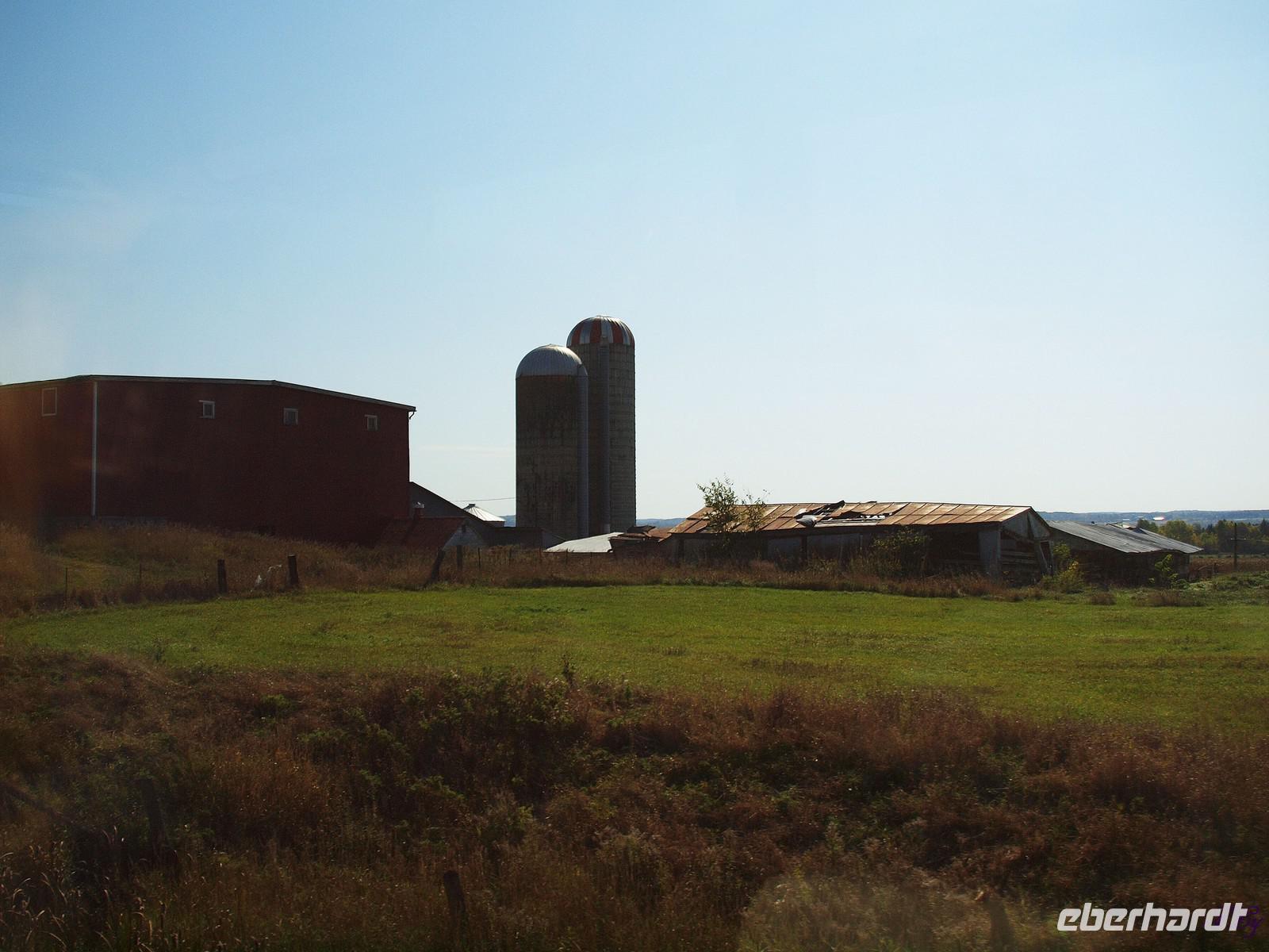 Weckruf um 6.30 Uhr. Frühstück im Hotelrestaurant um 7.30 Uhr. Das Frühstück erfolgte direkt am Tisch. Es standen große Platten mit Wurst und Käse sowie Obst auf dem Tisch und jeder bekam einen Teller mit Rührei, Toast und kleinen Croissants dazu. Das Frühstück kam sehr gut an und war sehr reichlich. Schön ist das frische Obst: Melone, Weintrauben, Erdbeeren.8.30 Uhr Koffer verladen und Abfahrt zurück in Richtung Toronto und weiter in die Muskoka-Region nördlich von Toronto. In Midland besuchen wir die rekonstruierte Jesuitenmission Sainte-Marie among the Hurons. Das kleine mit Holzpalisaden umrahmte Dorf wurde originalgetreu rekonstruiert und zeigt die Gebäude der Jesuiten und Huronen-Indianer, die hier zeitweise gemeinsam lebten. Die Führung in Deutsch übernimmt eine örtliche Führerin Ilse, die selbst aus Deutschland stammt. Sie zeigt uns die Gebäude und erklärt uns alles Wissenswerte zum Leben der Jesuiten und Indianer. Jeder bekommt ein Prospekt mit Lageplan und Erklärungen in Deutsch. Wir sehen die Gebetshäuser, die Lager und Ställe, die einfachen Wohnräume der Jesuiten, Indianer-Tipis aus Holz und Rinde sowie die typischen Langhäuser der Indianer. Es ist sehr interessant.Im Museumsgebäude essen wir zu Mittag. Es gibt Salat, Lasagne, Hackfleisch und Kartoffeln, Möhren und Kuchen, Kaffee und Obst zum Dessert. Im Souvenirgeschäft kann man Indianer-Souvenirs kaufen: Traumfänger, Bücher, Schmuck, Tassen, Bilder ... alles wurde hier in Kanada hergestellt. Gegen 15.00 Uhr fahren wir weiter in Richtung Norden bzw. Nordosten. Unser Ziel ist das „Hidden Valley Resort" am Rande des Algonquin-Nationalparks. Etwa 10 Minuten vor dem Hotel kaufen wir noch einmal in einem Supermarkt ein. So kann sich jeder etwas zum Essen und ein Fläschchen Wein für abends besorgen. Natürlich besteht auch die Möglichkeit, individuell im Hotelrestaurant zu essen. Um 18.00 Uhr kommen wir am Hotel an. Es liegt wunderschön ruhig an einem See inmitten der Natur. Wir checken hier für die nächsten beiden Nächte ein und unternehmen einen kleinen Spaziergang durch die Hotelanlage hinunter zum See. Bei einem Glas Wein oder einem Bier von der Bar lassen wir den Tag gemütlich ausklingen.Die Zimmer sind ausgestattet mit Wanne/WC, Föhn, Bügeleisen, Kosmetikartikeln, TV, Radiowecker, Telefon und Klimaanlage/Heizung sowie Balkon. Es gibt ein Restaurant, eine Bar, einen Innen- und einen Außenpool, Tennisplätze und einen Basketballplatz. In der Lobby ist ein Computer mit kostenlosem Internetzugang. Das funktioniert problemlos.Donnerstag, 06.10.2011