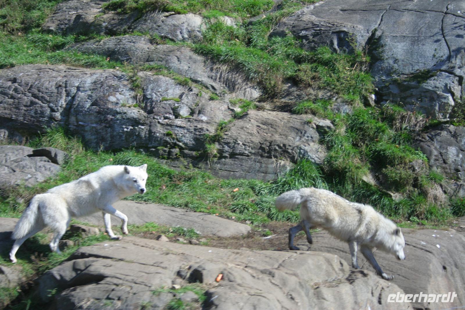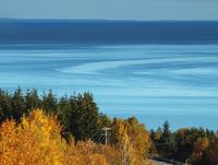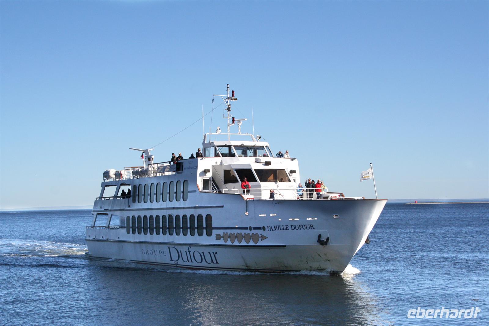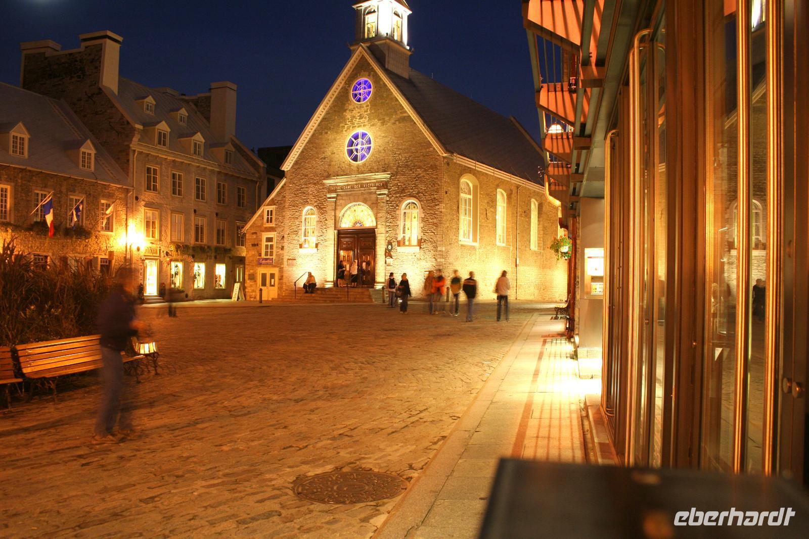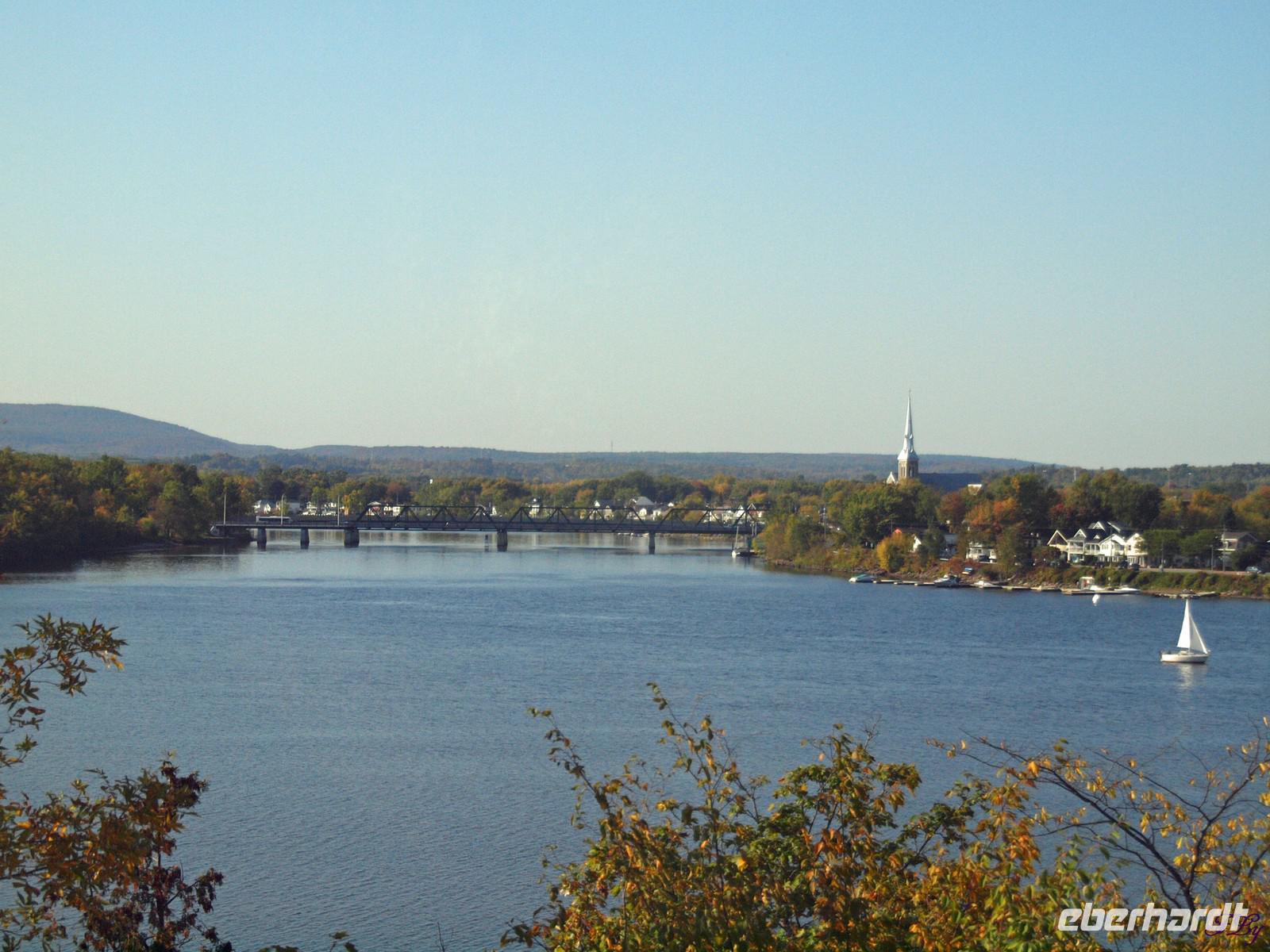8.00 Uhr Abfahrt von Quebec in Richtung La Malbaie. Wir sehen unterwegs wieder wunderschöne Laubfärbungen. Um 9.30 Uhr legen wir eine Pause an einem Informationszentrum ein, von wo man auch eine schöne Aussicht auf die Bucht von La Malbaie hat. Dann stimmt unser Fahrer Remy zu, mit uns eine alternative Route entlang der Küste des St. Lorenz Stromes zu fahren, anstatt weiter auf der Autobahn. So sehen wir noch einmal kleine Dörfer und Buchten sowie die Farben des Indian Summer. Um 11.30 Uhr legen wir einen Fotostopp an einem idyllischen See ein. Als Überraschung schenken wir einen kleinen kanadischen Whisky aus. Er ist eher mild und schmeckt uns allen gut. Wir bedanken uns bei Remy mit einem kräftigen Applaus für seine tollen Fahrkünste auf der schmalen Strecke. Wir kommen um 12.30 Uhr in St. Catherine Bay an. Hier ist die Abfahrtsstelle unserer Bootstour. Hier gibt es Toiletten und einen kleinen Souvenirshop. Unser Bus fährt weiter nach Tadoussac, wo er uns nach 3 Stunden Bootstour wieder abholt. Wir nehmen also unsere warmen Sachen und alles was wir sonst die nächsten Stunden brauchen mit. Um 13.30 Uhr kommt unser kleines Schiff und wir starten 13.45 Uhr unsere Walbeobachtungstour auf dem St.Lorenz Strom. Wir fahren aus der Bucht des Saguenay-Flusses heraus auf den St. Lorenz, wo sich warmes Süßwasser (oben) und kaltes Atlantikwasser (unten) mischen. Hier gibt es besonders viel Nahrung für die Wale. Buckelwale gibt es nur bis Ende September hier zu sehen, sie sind schon in wärmere Gewässer gezogen. Mink-Wale und die weißen Beluga-Wale leben hier dagegen das ganze Jahr über. Diese beiden Arten sehen wir von Weitem bei unserer Bootsfahrt. Wir sehen auch mehrere Finn-Wale, die man an den hohen Fontänen erkennt, die sie ausblasen. Es ist nach dem Blauwal, den man hier auch manchmal sieht, die zweitgrößte Walart. Auf dem Boot erklärt eine Sprecherin die verschiedenen Walarten und die Sichtungspunkte nach dem Uhrzeigerprinzip (z. B. Minkwal auf ein Uhr) in Französisch und Englisch. Die Schiffe sind relativ groß für etwa 100 Personen. Man kann auf 2 verschiedenen Decks stehen oder sich in der Bar bei einem Kaffee (2,25 CAD) aufwärmen und die Wale von drinnen beobachten. Toiletten gibt es an der Anfahrtsstelle und auch auf dem Schiff. Wir haben sehr schönes Wetter und flache See ohne Wellengang. Trotz der guten Temperaturen von 15 bis 20 °C ist es recht kühl durch den Seewind. Man sollte sich unbedingt warm und windgeschützt anziehen sowie Mütze und Handschuhe dabei haben. Wir waren gut vorbereitet. Nach etwa 2,5 Stunden erfolgreicher Walbeobachtung fahren wir zurück zum Hafen und von dort ein weiteres Stück die Küste entlang bis nach Tadoussa, den nördlichsten Punkt unserer Ostkanada-Reise. Hier gehen wir an Land und steigen wieder in unseren Bus. In Tadoussac machen wir einen kurzen Fotostopp an der ältesten kleinen Holzkirche Nordamerikas gleich gegenüber dem historischen Hotelkomplex, für das der kleine Ort ebenfalls bekannt ist. Mit einer Fähre setzen wir mit dem Bus über die Bucht von Tadoussac an das andere Ufer über. Von Tadoussac fahren wir nun etwa 1,5 Stunden mit dem Bus zurück bis La Malbaie, unserem heutigen Übernachtungsort direkt am St. Lorenz Strom. Um 18.15 Uhr kommen wir am Hotel „Le Petit Manoir du Casino“ an. Die Zimmer sind sehr groß und wieder mit einer kleinen Küche ausgestattet. Es gibt sogar einen künstlichen Kamin und einen Whirlpool in den Zimmern. TV, Telefon, Radiowecker, Föhn, Kosmetik, Klimaanlage und Bügeleisen gehören wie üblich hier wieder zur Ausstattung. Der Frühstücksraum befindet sich im Erdgeschoss, genauso wie ein Aufenthaltsraum mit Internetecke und Wellness-Bereich mit Whirlpools. Um 18.45 Uhr treffen wir uns alle, um zum Abendessen in einem benachbarten Hotel zu gehen. Zum Abendessen gibt es ein 4-Gang-Menü mit Vorspeise, Suppe, Hauptgericht (Lachs, Steak, Hähnchen oder Meeresfrüchte) und Dessert mit Kaffee. Der Service spricht kaum Englisch, ist aber sonst sehr freundlich. Es dauert nur alles ein wenig lang, was wir bisher nicht von den Kanadiern gewöhnt sind. Das Essen ist sehr gut. Wir sind erst gegen 21.15 Uhr fertig mit dem Dessert und dem Bezahlen der Getränke, dann laufen wir zurück zu unserem Hotel. Von der vielen Seeluft sind wir heute alle ziemlich müde. Gute Nacht! Dienstag, 11.10.2011