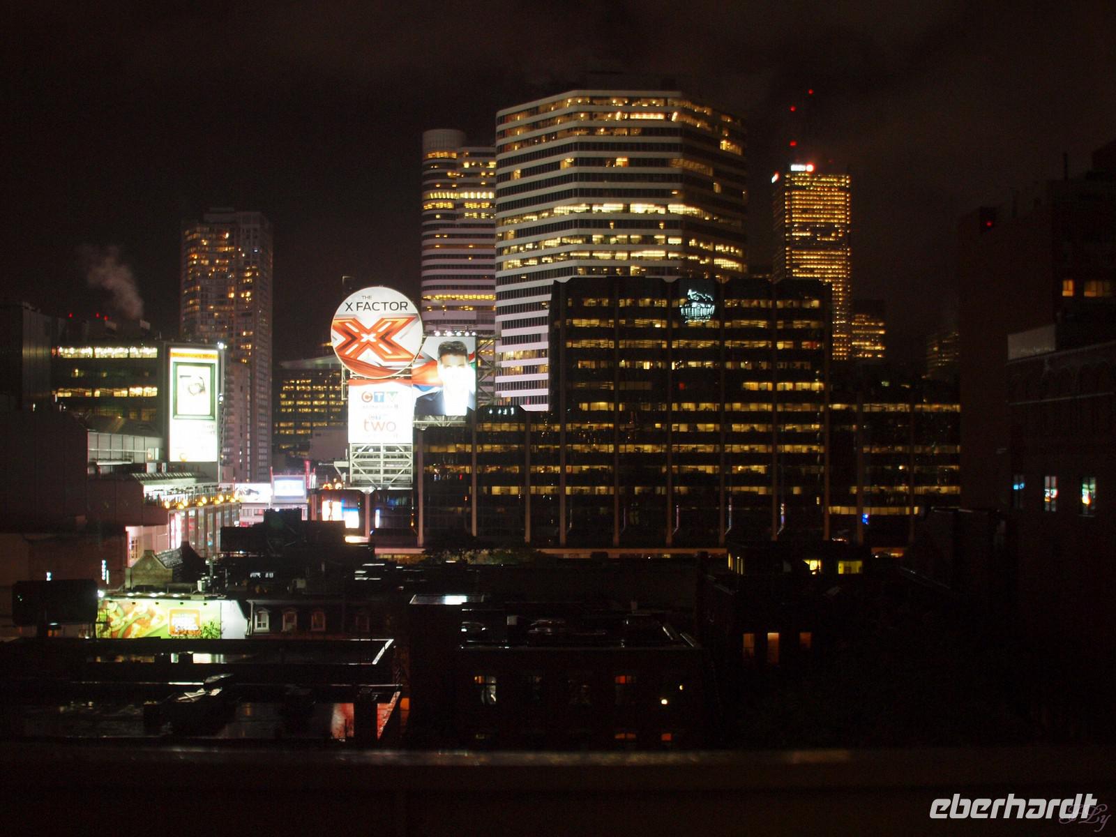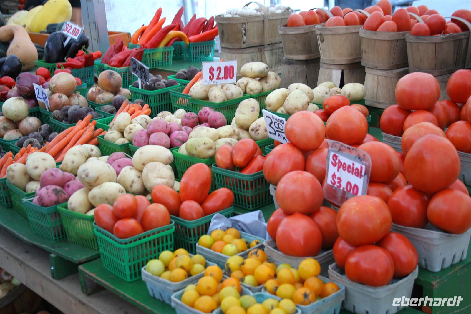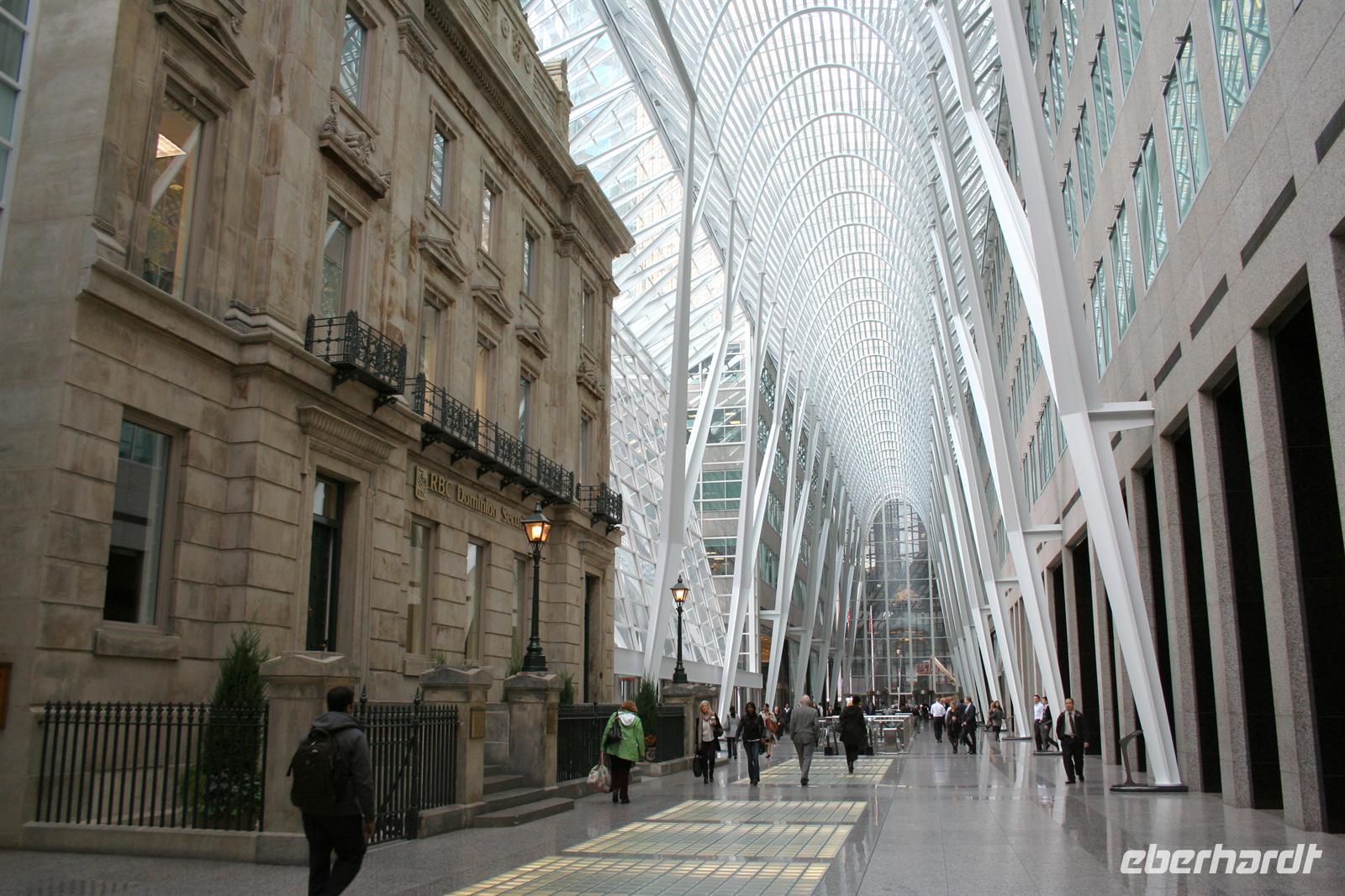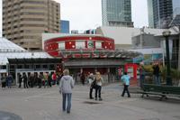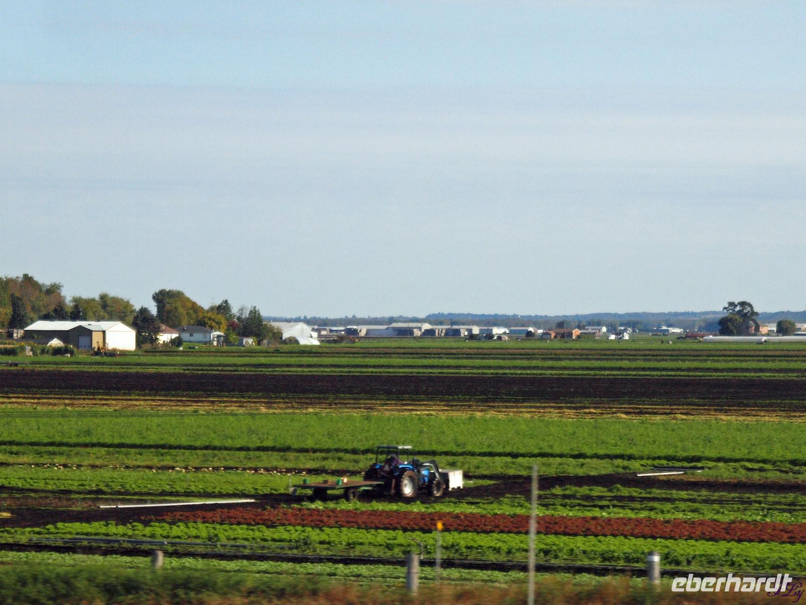 Am Montag Morgen, es ist der 3. Oktober - Tag der Deutschen Einheit - treffen wir uns um 7.00 Uhr im Flughafen Dresden. Weitere Gäste fliegen von Berlin oder von Leipzig nach Frankfurt/Main oder reisen mit der Bahn direkt zum Flughafen Frankfurt an.Nach einem Frühstück im Flughafen geht es los mit unserem Lufthansa-Flug nach Frankfurt. Wir kommen pünktlich um 9.30 Uhr in Frankfurt an. Da wir 4 Stunden Aufenthaltszeit haben, lassen wir uns Zeit, um vom Terminal A zum Terminal B zu laufen. Die Wege sind wie üblich lang, aber gut ausgeschildert. Das genaue Abfluggate nach Toronto ist noch nicht bekannt gegeben. Wir müssen daher noch einmal das Gate wechseln, nachdem ich beim Service Center nachgefragt habe, von welchem Gate unser Flug startet. Die Berliner Gäste und die Frankfurter Gäste hatten schon das richte Gate und so treffen wir uns ca. 1 Stunde vor Abflug endlich am Gate B43. Alle sind gut angekommen.Unser Flug nach Toronto startet pünktlich um 14.00 Uhr. Der Flug dauert etwa 8,5 Stunden. An Bord gibt es ein warmes Abendessen und noch mal einen warmen Snack etwa eine Stunde vor der Landung. Im Flugzeug werden auch die Zollformulare ausgeteilt, die wir mit Hilfe unserer Eberhardt-Vorlage problemlos ausfüllen. Man muss das Formular bei Ankunft im Flughafen bei der Passkontrolle zeigen und abgeben, wenn man den Transferbereich mit den Koffern verlässt. An der Passkontrolle gibt es einen Stempel und teilweise werden auch Fragen gestellt: Warum sind Sie hier? Wie lange sind Sie hier? Haben Sie Lebensmittel dabei? Nach der Kontrolle geht man hinunter zum Gepäckband. Wir warten bis alle ihren Koffer haben und verlassen gemeinsam den Transferbereich. Hier erwartet uns Reiseleiterin Brigitta Gamm. Wer möchte, kann hier in der Eingangshalle an einem Kiosk auch noch Geld tauschen. Bei uns hatten das schon alle zu Hause erledigt. Wir gehen gemeinsam zum Busparkplatz, wo unser Fahrer Remy mit unserem modernen Reisebus wartet. Gegen 18.00 Uhr verlassen wir den Flughafen mit etwas Verspätung.Die Fahrt zum Hotel „Delta Chelsea" in der Innenstadt von Toronto dauert etwa 30 Minuten. Brigitta erklärt im Bus den weiteren Ablauf des Tages und holt die Zimmerschlüssel. Ich kaufe bei Remy für jeden eine Flasche Wasser für je 1 CAD und verteile sie unterdessen im Bus. Dann checken wir im Hotel ein. Das Hotel liegt an der Gerrard Street und der Einkaufsstraße Yong Street, nur 5 Minuten vom Eaton Center, Torontos bekanntestem Einkaufscenter. Da wir verspätet ankamen, verschieben wir das Abendessen im Hotelrestaurant „Bb33" auf 19.30 Uhr. Es gibt ein feines 3-Gang-Menü mit je drei Vor- und Hauptspeisen zur Wahl: Suppe oder Salat, Chinesische Wokpfanne, Lachs oder Hähnchen sowie ein leckeres Dessert mit Kaffee oder Tee. Tafelwasser ist inklusive, ein Bier kostet 6-7 CAD, ein Softdrink 3,60 CAD. Trinkgeld und Tax sind bereits inkludiert. Es schmeckt alles prima!Nach dem Essen unternehmen wir noch einen kleinen Spaziergang mit Brigitta. Mit einigen trinke ich noch einen Absacker in der Hotelbar „Elmstreet Lounge". Alle sind geschafft und wir gehen 22.30 Uhr auf die Zimmer. Die Zimmer sind geräumig und ausgestattet mit Wanne/WC, Föhn, Bügeleisen, Kosmetikartikeln, TV, Radiowecker, Telefon und Klimaanlage.Dienstag, 04.10.2011