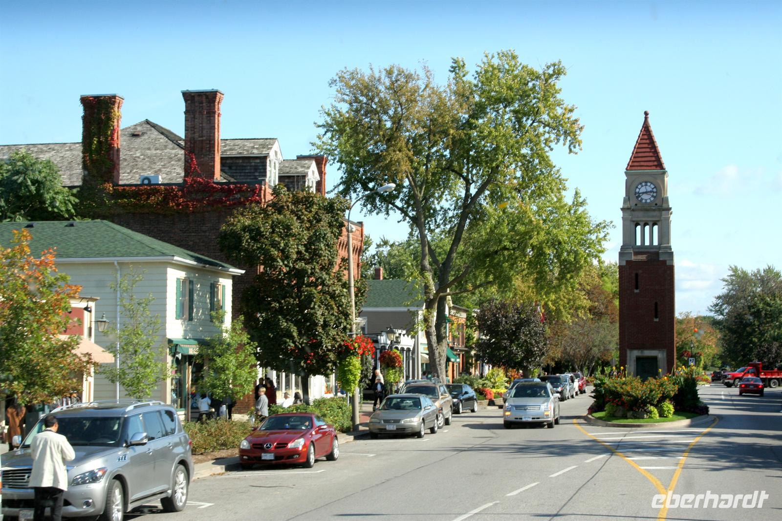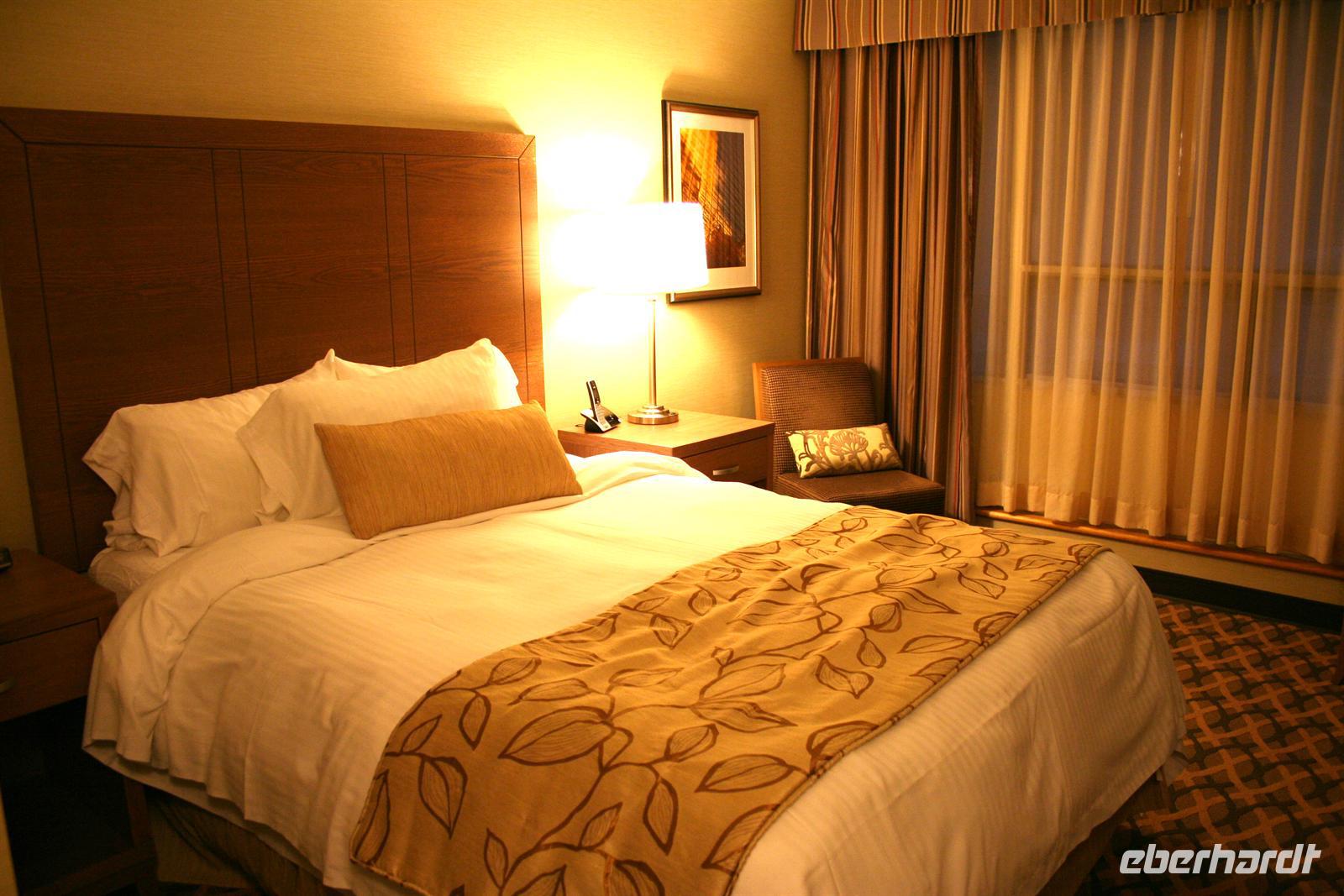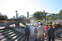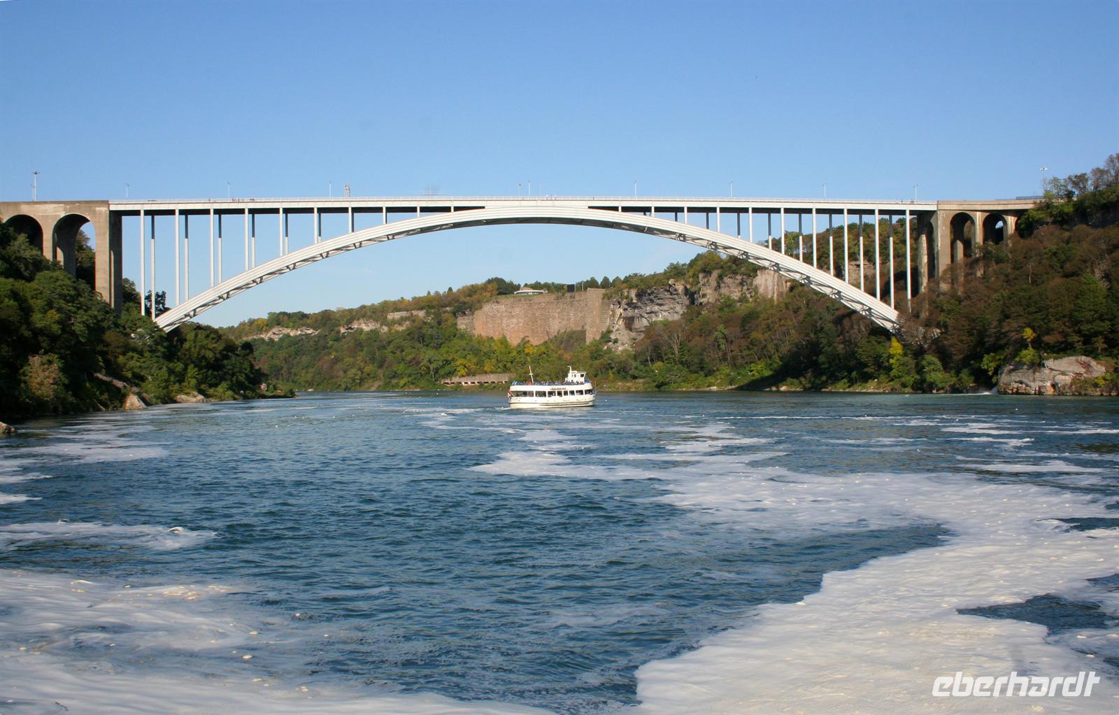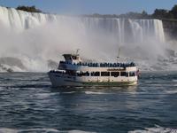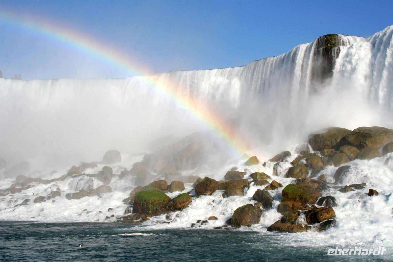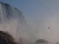 Weckruf um 6.30 Uhr. Aufgrund der Zeitverschiebung mehr oder weniger gut ausgeschlafen, treffen wir uns zwischen 7.00 und 7.30 Uhr im Hotelrestaurant zum Frühstück. Die Räume sind nicht so groß, sodass wir teilweise 10 Minuten warten müssen, bis wir nach und nach vom Personal platziert werden. Es ist günstig, etwas zeitlich verteilt zu erscheinen. Das Frühstücksbuffet ist sehr gut und hat für jeden Geschmack etwas zu bieten. Um 8.30 Uhr treffen wir uns zur Abfahrt am Bus. Eine Stadtrundfahrt in Toronto steht auf dem Programm. Wir fahren zunächst in Richtung Ontariosee und CN Tower. Auf dem Weg legen wir einen Fotostopp am Bügeleisen-Haus (Flatiron) und an der Hall of Fame am Brookfield Place ein. Hier bestaunen wir die moderne Architektur aus Glas und Stahl, die einem Wald und einem Kirchenschiff nachempfunden ist.Weiter geht es zum CN Tower. Mit 553 Metern ist der Fernsehturm von Toronto eines der höchsten freistehenden Gebäude der Welt. Brigitta besorgt die Karten und wir fahren nach kurzer Wartezeit mit dem Fahrstuhl hinauf zu den Aussichtsplattformen. Der Himmel klart nach und nach auf und wir bestaunen Toronto und den Ontariosee von oben. Bis zu den Niagara-Fällen kann man heute allerdings nicht schauen. Ein Stück im Inneren ist mit Glasboden versehen, der den Blick nach unten freigibt. Nichts für Menschen mit Höhenangst ;-), aber sonst sehr beeindruckend. Im Untergeschoss gibt es einen Souvenirladen, in dem man auch Postkarten und Modelle vom CN Tower kaufen kann. Die Umsatzsteuer kommt bei den im Laden angegebenen Preisen übrigens immer noch dazu.Dann geht unsere Rundfahrt weiter. Wir sehen das alte und das neue Rathaus und das Parlamentsgebäude. Am Hafen Center legen wir gegen 13.00 Uhr eine kleine Pause zum Einkaufen im Supermarkt und zur Benutzung der Toiletten ein. Die Toilettennutzung ist in Kanada übrigens immer kostenfrei.Schließlich verlassen wir Toronto und machen uns auf den Weg zu den Niagara-Fällen, die etwa 120 Kilometer entfernt liegen. Gegen 15.00 Uhr erreichen wir den hübschen Ort Niagara on the Lake, in dem die Zeit stehen geblieben zu sein scheint. Zeit für einen Bummel haben wir hier leider nicht. Wir legen einen Fotostopp an den Stromschnellen und der 180 Grad Kurve des Niagara-Flusses ein, bevor wir Niagara um 15.45 Uhr erreichen. Wir gehen hinunter zur Anlegestelle der „Maid of the Mist". Hier werden wir mit blauen Regencapes ausgestattet und um 16.15 Uhr beginnt unsere Bootsfahrt an den Niagara-Fällen. Die Boote fahren alle 15 Minuten ab. Die Bootsfahrt dauert etwa eine halbe Stunde. Wir fahren zuerst an den amerikanischen Wasserfällen vorbei, die sich sehr gut fotografieren lassen, weil hier die Gischt nicht so sprüht. Dann geht es hinein in den Horseshoe-Wasserfall der kanadischen Seite. Hier sollte man seine Kamera unbedingt vor dem Spitzwasser schützen und sie unter das Regencape nehmen! Teilweise spritzt das Wasser sehr stark von allen Seiten. Die Bootsfahrt ist ein tolles Erlebnis, das man auf keinen Fall versäumen sollte! Die Regencapes kann man als Andenken behalten. Nach der Bootsfahrt gehen wir etwa 1,5 Kilometer an der Promenade oberhalb der Fälle entlang und nutzen die herrlichen Fotomotive. Am Ende des Fußweges erwartet uns 17.45 Uhr der Bus und wir fahren zum Hotel „Holiday Inn", welches sich gleich neben dem Skylon Tower und dem Imax-Kino befindet. Wir checken ein, machen uns kurz frisch und treffen uns 18.15 Uhr schon wieder, um zum Abendessen im Skylon Tower zu fahren. Den Rückweg gehen wir später zu Fuß. Nachdem Brigitta uns angemeldet hat, geht es nach 10 Minuten Wartezeit mit dem Fahrstuhl hinauf zum Restaurant. Hier sind schon zwei große Tische für uns vorbereitet. Es gibt ein Buffet mit leckeren Salaten, Meeresfrüchten, warmen Speisen und Desserts. Tafelwasser und Kaffee sind wie immer inklusive. Ein Bier kostet 7 CAD, ein Glas kanadischer Hauswein 10 CAD. Von hier oben hat man einen tollen Blick auf die Niagara-Fälle, die farbig beleuchtet werden, sobald die Dunkelheit einsetzt. Wir wurden so platziert, dass wir direkt auf die Fälle schauen konnten, das war toll. Der Service ist freundlich und schnell, das Essen kam super an.Unten im Skylon Tower gibt es Souvenirläden, die auch abends noch geöffnet haben. Gegen 20.30 Uhr gingen wir zurück zum Hotel. Wer will, kann natürlich auch individuell noch einmal zum Wasserfall gehen (ca. 10 Minuten vom Skylon Tower).Die Zimmer im „Holiday Inn by the Falls" sind sehr geräumig und ausgestattet mit Wanne/WC, Föhn, Bügeleisen, Kosmetikartikeln, TV, Radiowecker, Telefon und Klimaanlage. Im Erdgeschoss gibt es auch einen Pool, den man als Hotelgast kostenfrei benutzen kann.Mittwoch, 05.10.2011