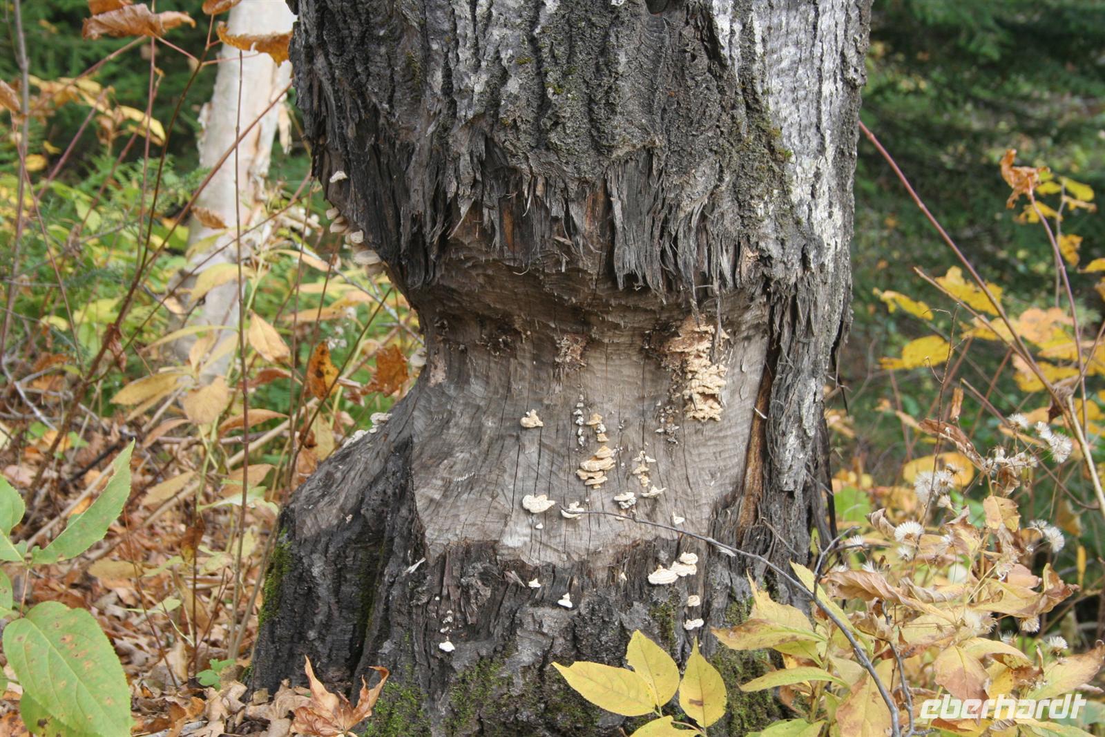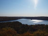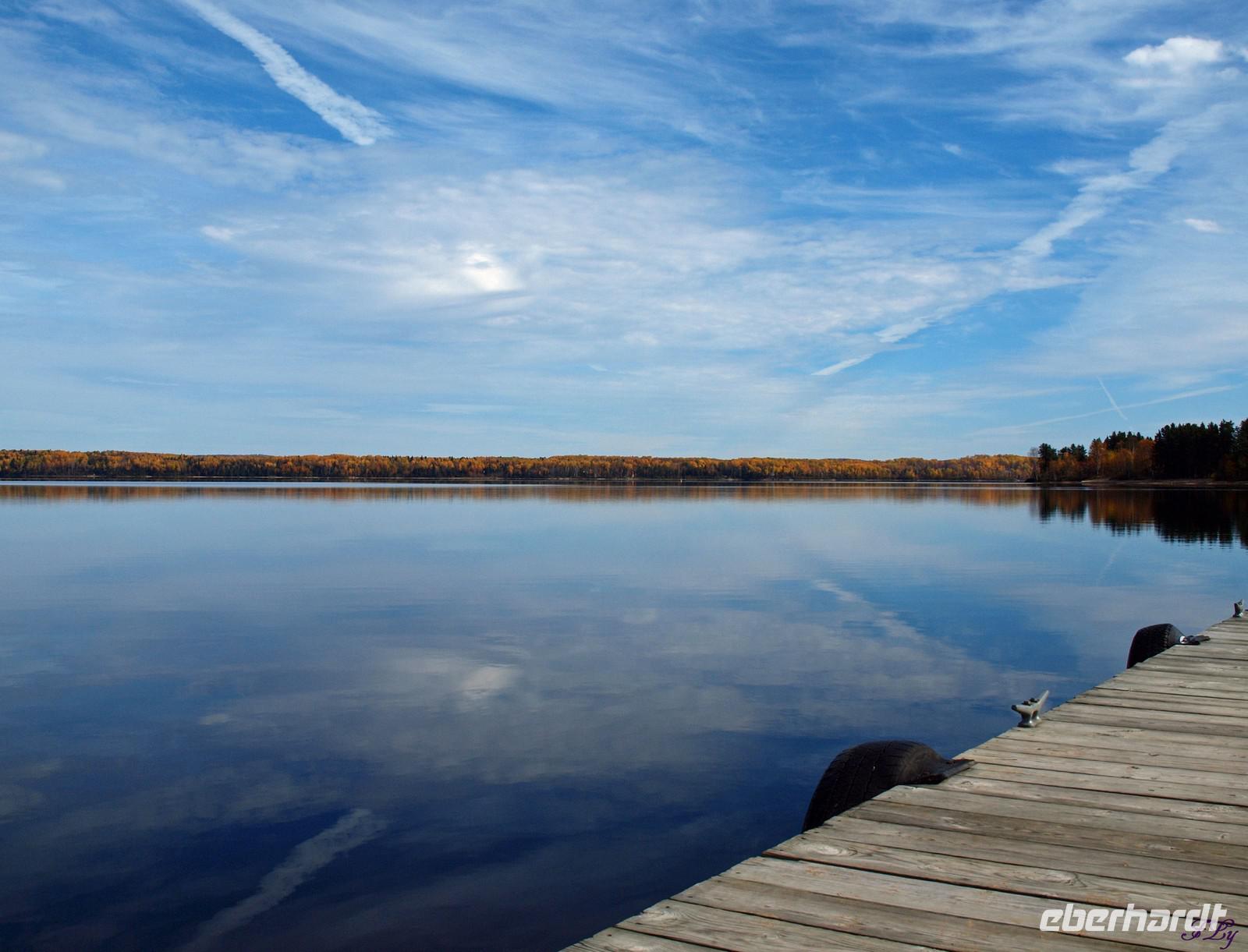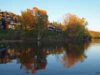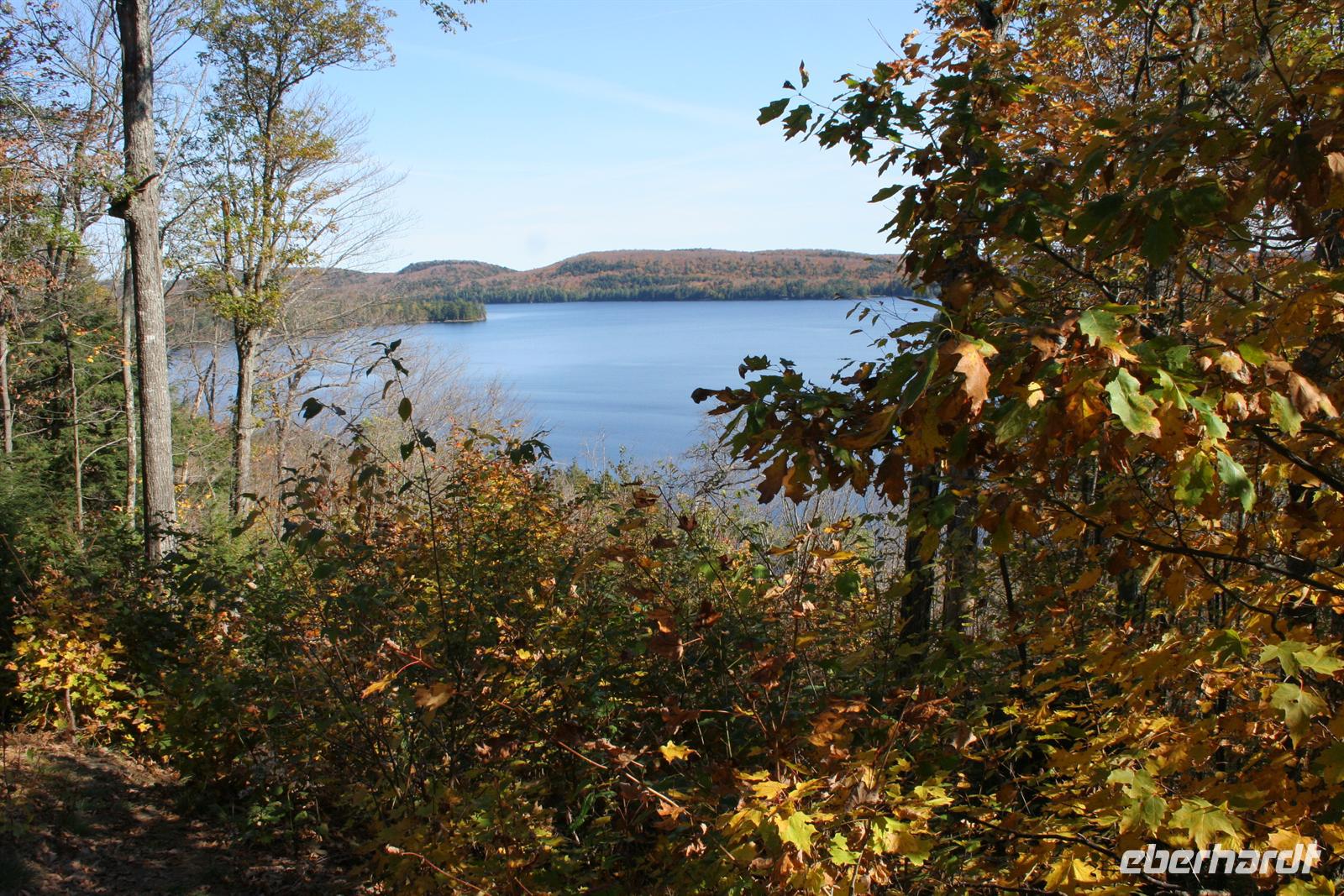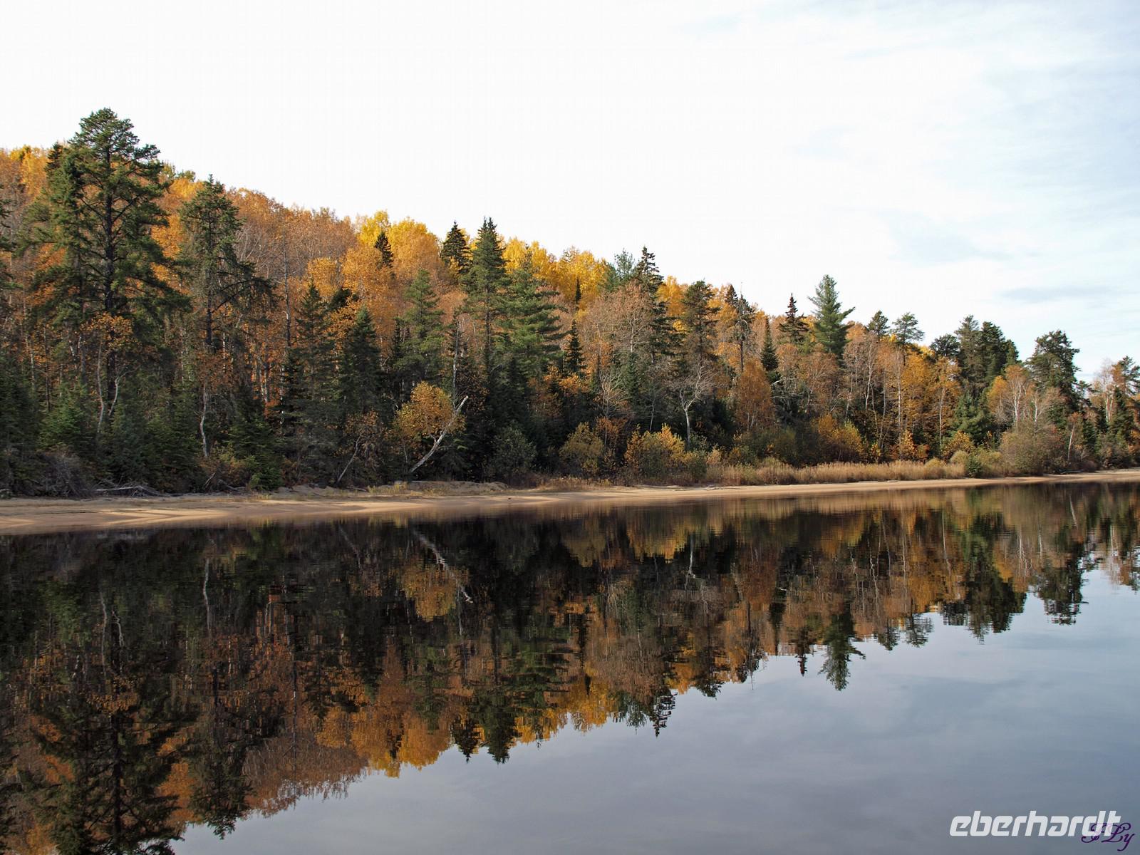 Heute verbringen wir einen ganzen Tag am Lac Taureau. Aufstehen und Frühstück im Hotelrestaurant nach individueller Zeit. Es gibt ein Frühstücksbuffet, der Kaffee wird am Platz serviert. Wer möchte, kann sich an der Theke ein frisches Omelett zubereiten lassen. Sehr zu empfehlen sind die hausgemachten Marmeladen. Um 9.30 Uhr treffen wir uns in der Lobby zu einer Wanderung mit Reiseleiterin Brigitta. Die Wanderung führt durch den Wald und am See entlang. Sie ist je nach Strecke 2 bis 3 Stunden lang. Es geht meist gerade Strecken entlang, am Anfang gibt es jedoch auch ein paar kleine Steigungen. Brigitta zeigt uns einen verlassenen Biberbau und etwas weiter einen noch bewohnten Biberbau und frisch umgenagte Bäume. Der Biber selbst lässt sich allerdings nicht sehen. Wir kommen auch an einem Strand des Lac Taureau vorbei. Das Wetter ist schön, am Morgen etwas bewölkt und etwa 6 °C, gegen Mittag wird es aber immer wärmer und sonniger. Nach etwa 3 Stunden Wanderung kommen wir wieder am Hotel an.Im Bistro im Untergeschoss kann man eine Kleinigkeit zum Mittag essen. Es gibt Salate, Burger, Pizza oder Sandwiches (Preise: 8 bis 13 CAD). Es gibt eine Speisekarte bei der Bedienung, sie serviert dann an den Tisch. Ich verabrede mich mit einigen Gästen zu einer individuellen Kanutour. Im Bootshaus des Hotels erhalten wir Schwimmwesten, Boote und Paddel. Wir sind 5 Personen und nehmen ein 3-Mann-Kanu (einfaches Paddel) und ein 2-Mann-Kajak (doppelseitiges Paddel). Um die Boote ins tiefere Wasser zu bekommen, müssen zwei von uns die Schuhe ausziehen und barfuß ins Wasser. Es geht aber ganz gut und wir schaffen es alle trocken ins Boot zu kommen. Der See ist spiegelglatt und es ist herrlich, die Ruhe und die Natur zu genießen.Wer möchte, kann das Schwimmbad und die Sauna kostenlos nutzen und es gibt auch einen Wellness-Bereich. Eine einstündige Rücken-Nacken-Massage kostet beispielsweise 80 CAD plus Steuer (ca. 92 CAD). Man kann bar oder mit Kreditkarte auf die Zimmernummer bezahlen. Man muss ein kleines Gesundheitsformular (in Englisch) ausfüllen. Ich helfe dabei, es ist kein Problem. Einige Gäste entspannen auf den Sonnenliegen auf der Terrasse oder nutzen ihren Balkon am Zimmer. Am Nachmittag starten unsere gebuchten Bootsfahrten auf dem Lac Taureau um 15.00 bzw. um 16.00 Uhr. Je 10-12 Personen passen auf das kleine Motorboot. Die Seitenwände sind mit durchsichtigen Planen geschlossen, sodass man nicht so schnell friert. Dennoch sollte man sich warm anziehen, weil die Seeluft doch ein bisschen kühl sein kann. Wir fahren je eine Stunde auf dem See und sehen einen großen Biberdamm. Brigitta erklärt die Entstehung des Sees und welche Tiere und Menschen hier leben. Etwa 70 Kilometer nordwestlich gibt es ein Indianerreservat, in dem etwa 2000 einheimische Indianer leben. Für Touristen ist es allerdings nicht erschlossen. Um 17.00 Uhr ist die zweite Gruppe fertig mit der Bootsfahrt. Bis zum Abendessen um 19.00 Uhr genießen alle noch einmal die freie Zeit. Donnerstag, 13.10.2011