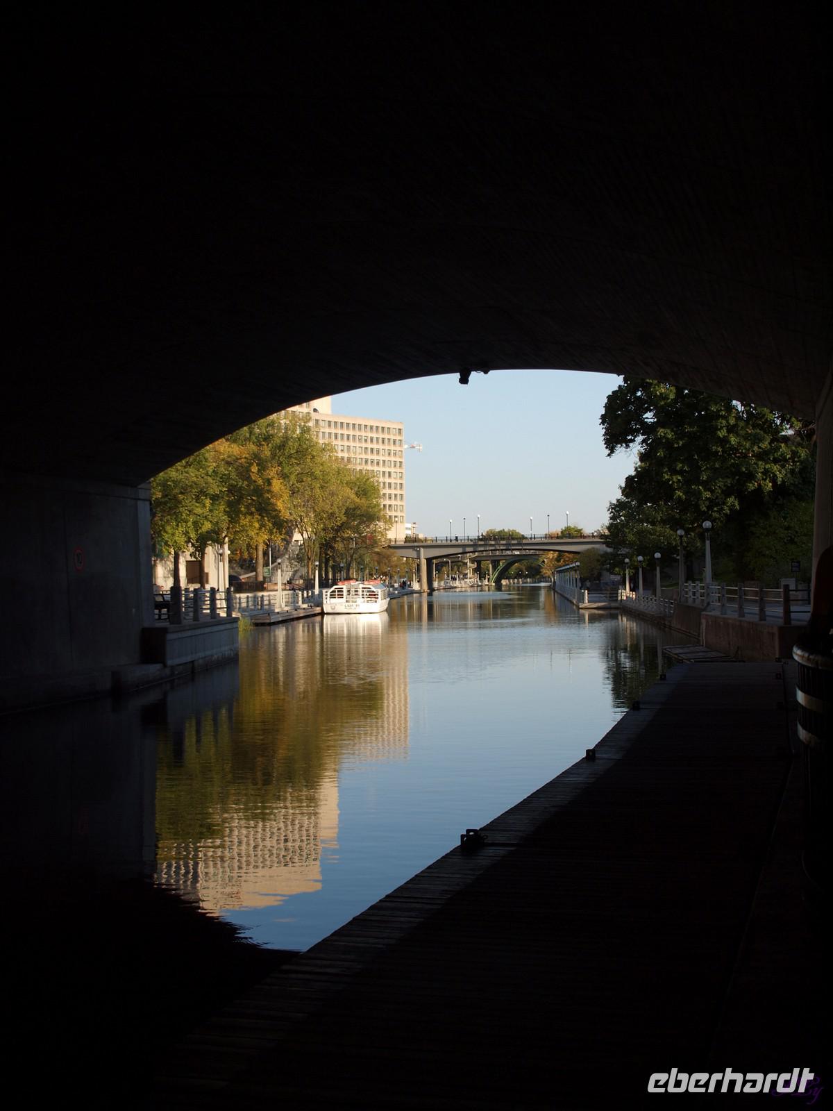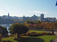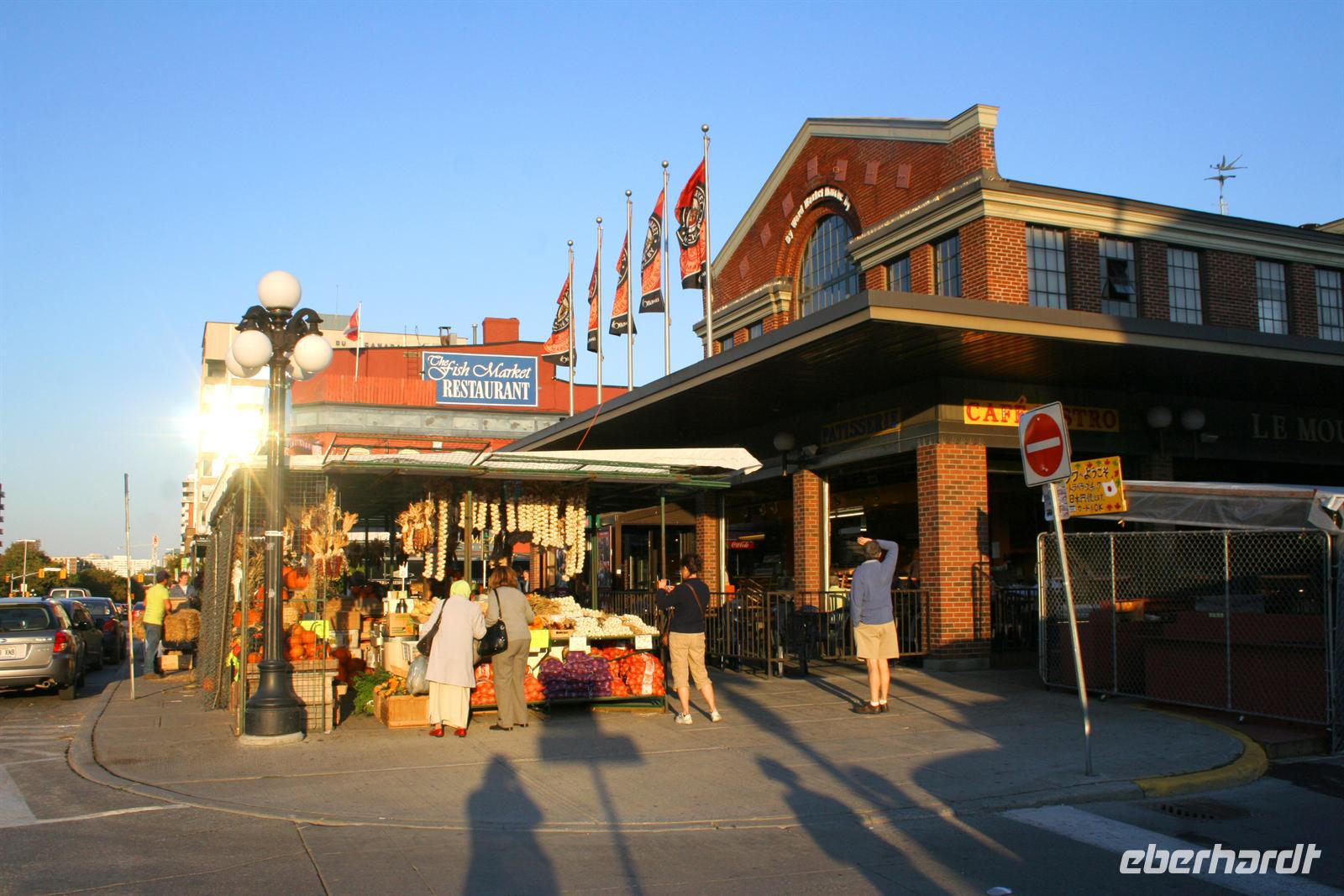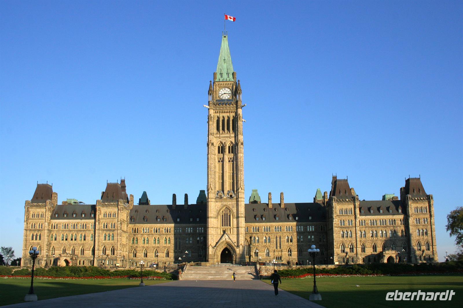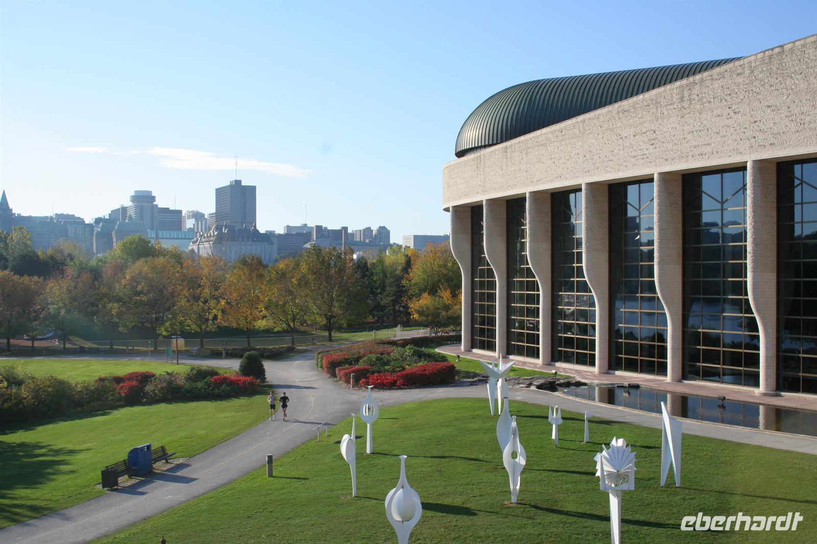 Freitag, 07.10.2011 Algonquin-Nationalpark - Logging Trail - Ottawa Am Freitag müssen wir etwas eher los, denn wir haben eine lange Fahrtstrecke von 420 Kilometern vor uns. Weckruf ist daher um 6.00 Uhr, Frühstück und 7.00 und Abfahrt um 8.00 Uhr. Heute erkunden wir den östlichen Teil des Algonquin-Parks. Wir fahren zunächst etwa eine Stunde zum Algonquin-Besucherzentrum. Hier gibt es eine kleine Aussichtsplattform, einen Souvenirshop und ein Museum zur Geschichte und zur Tierwelt im Algonquin-Park. Man sieht, wie der der Biber seinen Bau baut, wie es in den Seen unter Wasser aussieht und verschiedene ausgestopfte Tiere wie den Schwarzbär, den Wolf und den Elch. Hier gibt es auch Toilettenmöglichkeit) Nach einer halben Stunde geht es ca. 20 Minuten weiter zum Holzfäller-Museum mit Rundwanderweg „Logging Trail“. Hier sehen wir uns einen kurzen Film über die Geschichte der Holzfäller an (nur in Englisch) und spazieren eine knappe Stunde den Logging Trail entlang. Brigitta erklärt uns Wissenswertes zu den einzelnen Stationen. Wir sehen die Unterkünfte der Holzfäller, die Pferdeställe, die Gerätschaften und Maschinen bis hin zu einem kleinen Dampfschiff (Alligator genannt), einer Dampflokomotive und moderneren Autos. Für einen CAD bekommt man auch eine kleine Broschüre, in der in Englisch alles mit Illustrationen und Text erläutert ist. 11.30 Uhr Weierfahrt in Richtung Ottawa. Unterwegs legen wir eine Kaffeepause bei Tim Hortons ein (Muffins, Sandwich und Burger). Gegen 15.00 Uhr kommen wir in Ottawa an und beginnen unsere Stadtrundfahrt. An der Mündung des Rideau-Flusses in den Ottawa-Fluss legen wir einen Fotostopp an dem kleinen Wasserfall ein (Rideau = Vorhang/Gardine). Vorbei am Kunstmuseum, dem Rathaus und dem By Ward Markt erreichen wir um 16.30 Uhr unser Hotel „Cartier Place“ in der Stadt. Wir verabreden uns für 17.00 Uhr in der Lobby zu einem Bummel in die Stadt. Die meisten Gäste gehen in kleinen Grüppchen allein los, ich gehe mit 6 Gästen los. Da der ATM Automat im Hotel nicht funktioniert, suchen wir uns in der Innenstadt eine Bank und ich helfe allen dort beim Geld abheben per Kreditkarte. Wir bummeln über den By Ward Markt, der 18.00 Uhr allerdings schließt. Rundherum gibt es eine Unmenge an Geschäften, Bars und Restaurants. An den Marktständen kann man frisches Obst und Gemüse kaufen, es gibt wohl auch 2 Stände mit Ahornprodukten. Nebenan ist ein großes Kaufhaus der Hudson Bay Company, das bis 20 oder 21 Uhr geöffnet ist. Wir kehren zum Abendessen (7 Personen) in das Fischrestaurant „The Fishmarket“ ein. Wir bekommen einen Tisch im Obergeschoss. Es gibt beispielsweise Pasta mit Lachs, Paella, Hähnchen mit Kartoffelecken oder auch Steak. Die Preise variieren zwischen 15 und 25 CAD pro Gericht. Alles ist sehr lecker und es klappt auch, dass wir letztlich alle getrennt bezahlen. Nach dem Abendessen spazieren wir zurück zum Hotel (ca. 15 Minuten), wo wir gegen 21.00 Uhr ankommen. Die Zimmer sind eher Appartements mit Schlafzimmer, Wohnzimmer, Bad und Küche. Die Küche ist voll ausgestattet mit Kühlschrank, Geschirr, Geschirrspüler, Mikrowelle, Herd und Wasserkocher. Das Bad verfügt über Wanne, Dusche, WC, Duschgel und Föhn. Es gibt auch wieder TV, Telefon, Radiowecker und Bügeleisen. Im Erdgeschoss rechts neben der Rezeption ist das Hotelrestaurant, hier gibt es auch das Frühstück am nächsten Morgen. Stadtpläne kann man an der Rezeption bekommen.