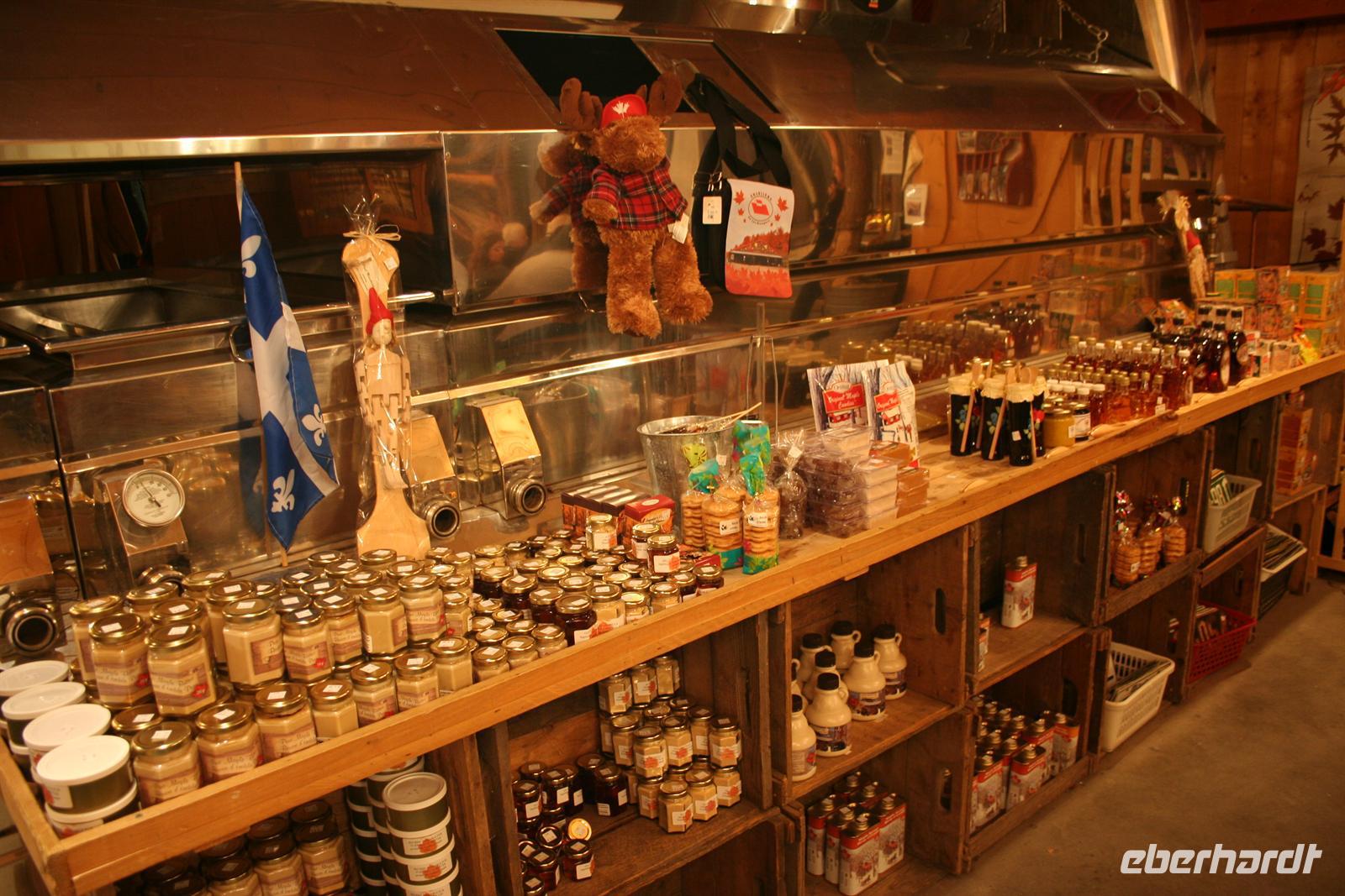 Wir fahren zurück in Richtung Quebec und dann in nördliche Richtung wieder hinaus aufs Land. Hier besuchen wir eine Ahornsirup-Farm, die hierzulande als Sugar House oder Sugar Shack bezeichnet werden und typisch sind für Ostkanada. In einem kleinen Ausstellungsraum wird die Herstellung des Ahornsirups erläutert und Brigitta erzählt uns alles Wissenswerte dazu. Natürlich kann man hier auch alle Ahornsirup- bzw. Ahornzucker-Produkte kaufen. Man kann in bar oder per Kreditkarte bezahlen und viele nehmen sich etwas für zu Hause mit. Um 19.00 Uhr sind wir zum Abendessen im großen urigen Bauernhaus angemeldet. Eine Zwei-Mann-Band spielt Live-Musik und man darf mit den typischen Holzlöffeln mit musizieren. Es sind drei oder vier Reisegruppen da (auch von den Kreuzfahrtschiffen), die jetzt gemeinsam essen. Es gibt verschiedene Speisen, die alle mit Ahornsirup gemacht wurden und die an die Tische gebracht werden: Schweinebraten, Kartoffeln, Bohnen, Speck und zum Nachtisch natürlich Pfannkuchen mit Ahornsirup. Wer möchte, kann auch den typischen Mix aus Rotwein, Whisky und Ahornsirup trinken (5 CAD pro Glas). Bier und Wein kann man natürlich ebenfalls bestellen. Die Musiker fordern nach den Hauptspeisen zu einem Gesellschaftstanz auf. Nach dem Essen gibt es draußen noch ene süße Ahornsirup-Überraschung: Wir dürfen uns im Kunstschnee einen Lolli aus Ahornsirup drehen. Gegen 21.30 Uhr treten wir die Rückfahrt zum Hotel in Quebec an. Das war ein sehr erlebnisreicher Tag! Montag, 10.10.2011