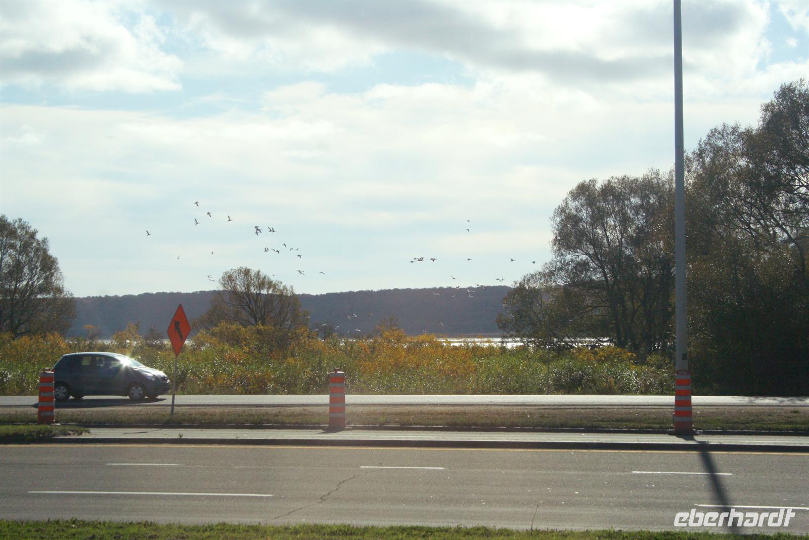 Gegen 12.30 Uhr treten wir die Rückfahrt zum Hotel mit der U-Bahn an. Zurück in der Innenstadt bleibt noch Zeit für einen kleinen Bummel. Um 16.00 Uhr holen wir alle unser Gepäck in Brigittas Zimmer ab und laden es in den Bus. 16.15 Uhr geht es los zum Flughafen Montreal. Es sind zwar nur 25 Kilometer, aber es ist immer viel Verkehr auf der Schnellstraße und es ist Berufsverkehr. Daher fahren wir etwas eher los als ursprünglich geplant.