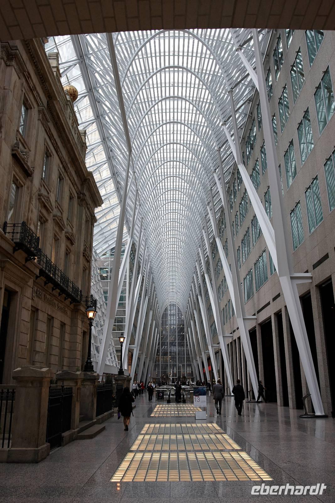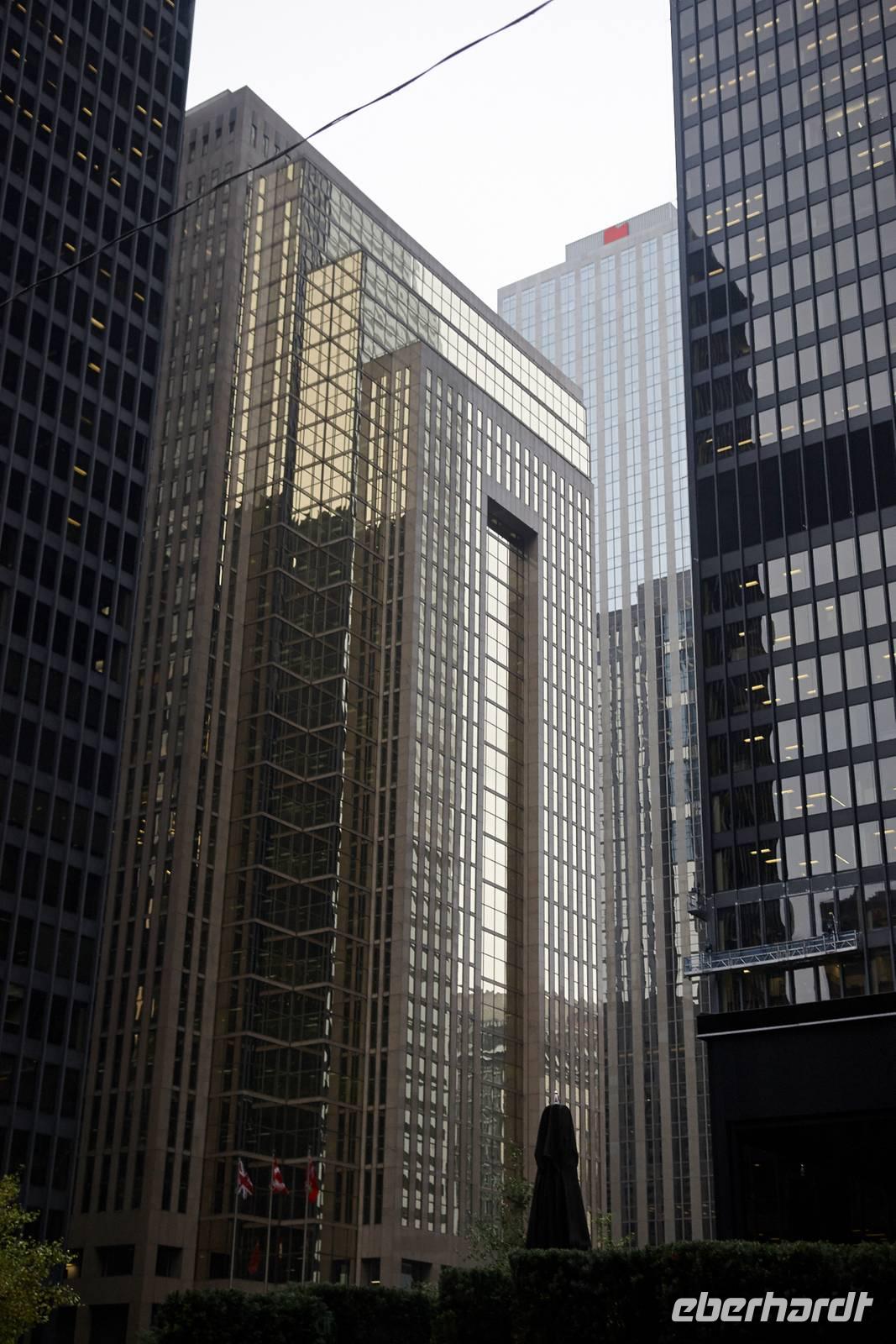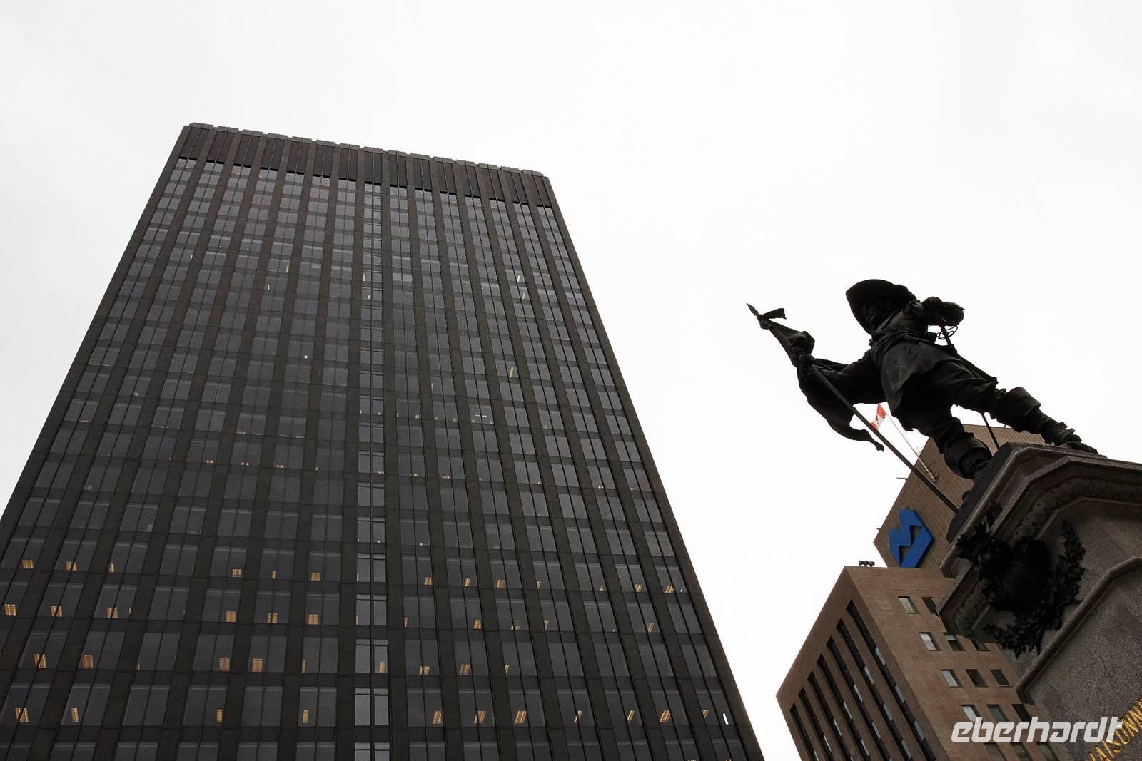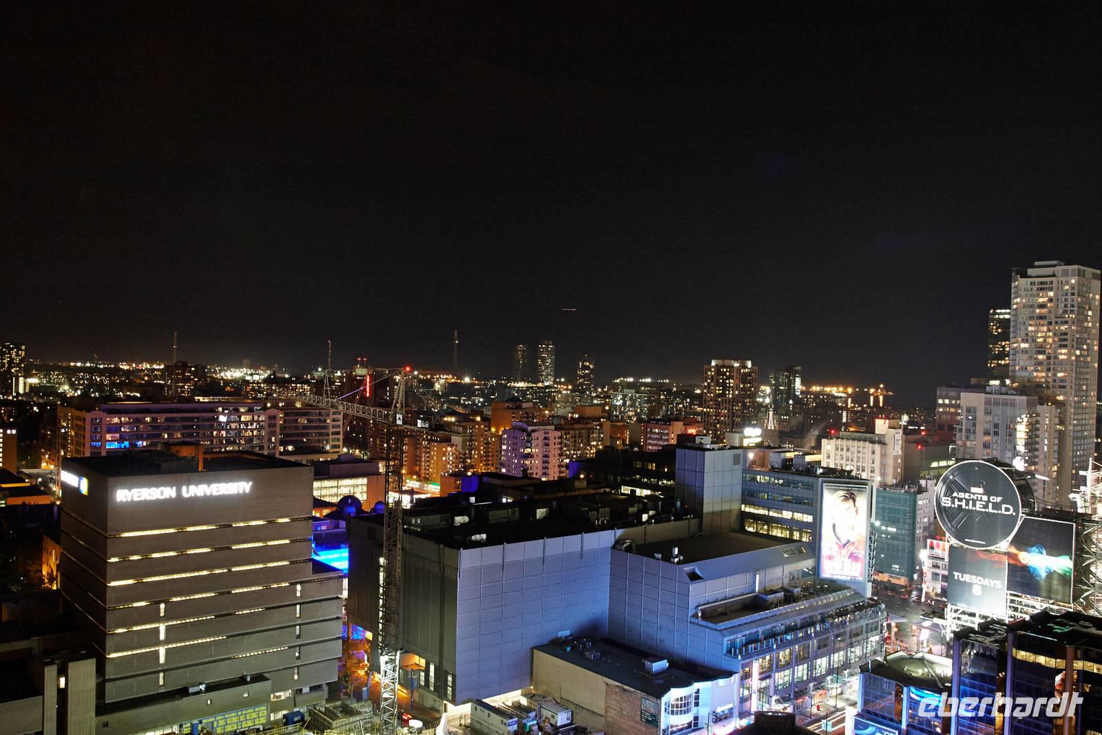 Mit leichter Verspätung startet unser voll ausgebuchter Airbus der Lufthansa zu einem ruhigen Flug über den Atlantik. Da wir mit der Sonne reisen geht diese für uns heute einmal nicht unter. Acht Flugstunden später ist noch einmal Ausdauer an der Einreisekontrolle gefordert. Das Gepäck ist dann schnell eingesammelt und am Ausgang wartet auch schon unsere Reiseleiterin Brigitta auf uns. Mit dem Bus geht es nun in die Innenstadt von Toronto. Auf dem Weg zum Hotel berichtet uns Brigitta schon einiges über die Stadt und den Ablauf der nächsten Tage. Nach dem Checkin im Hotel können wir uns alle kurz frisch machen uns treffen uns anschließend zum ersten gemeinsamen Abendessen. Wer trotz des langen und anstrengenden Tages noch etwas Energie hatte spazierte mit uns noch eine kleine Runde um das nahe gelegene Eaton-Center.