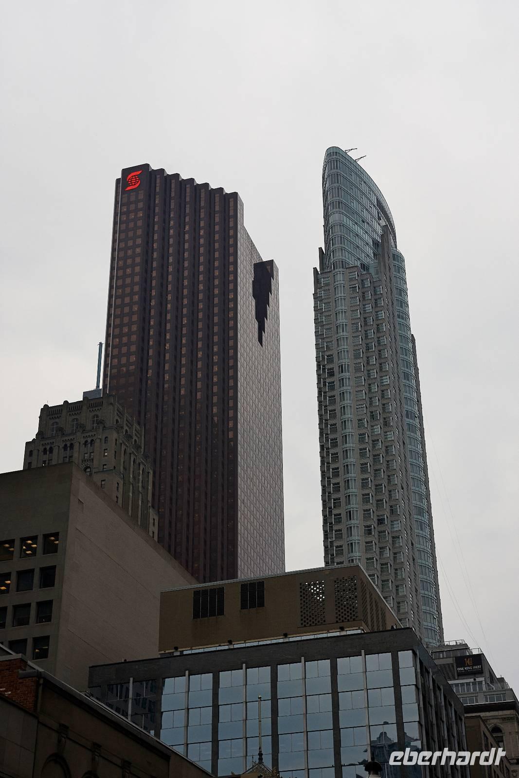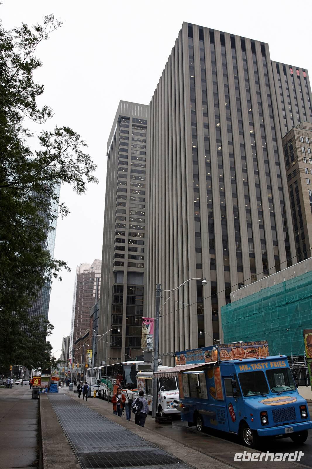 Unser zweiter Reisetag begann mit einem typisch amerikanischen Frühstück im Hotel. Anschließend machten wir uns auf zur Stadtrundfahrt durch die Metropole Toronto. Das Wetter war an diesem morgen noch nicht ganz auf unserer Seite - aber dies sollte sich bald ändern. Während der Rundfahrt erklärte uns Brigitta viel Wissenswertes zur Geschichte und zum Leben in der Stadt. Auf Grund zahlreicher Baustellen und Einbahnstraßen dürfen wir einige Straßen doppelt bestaunen