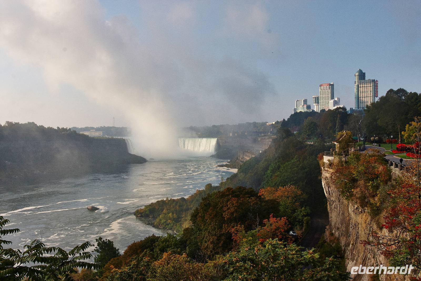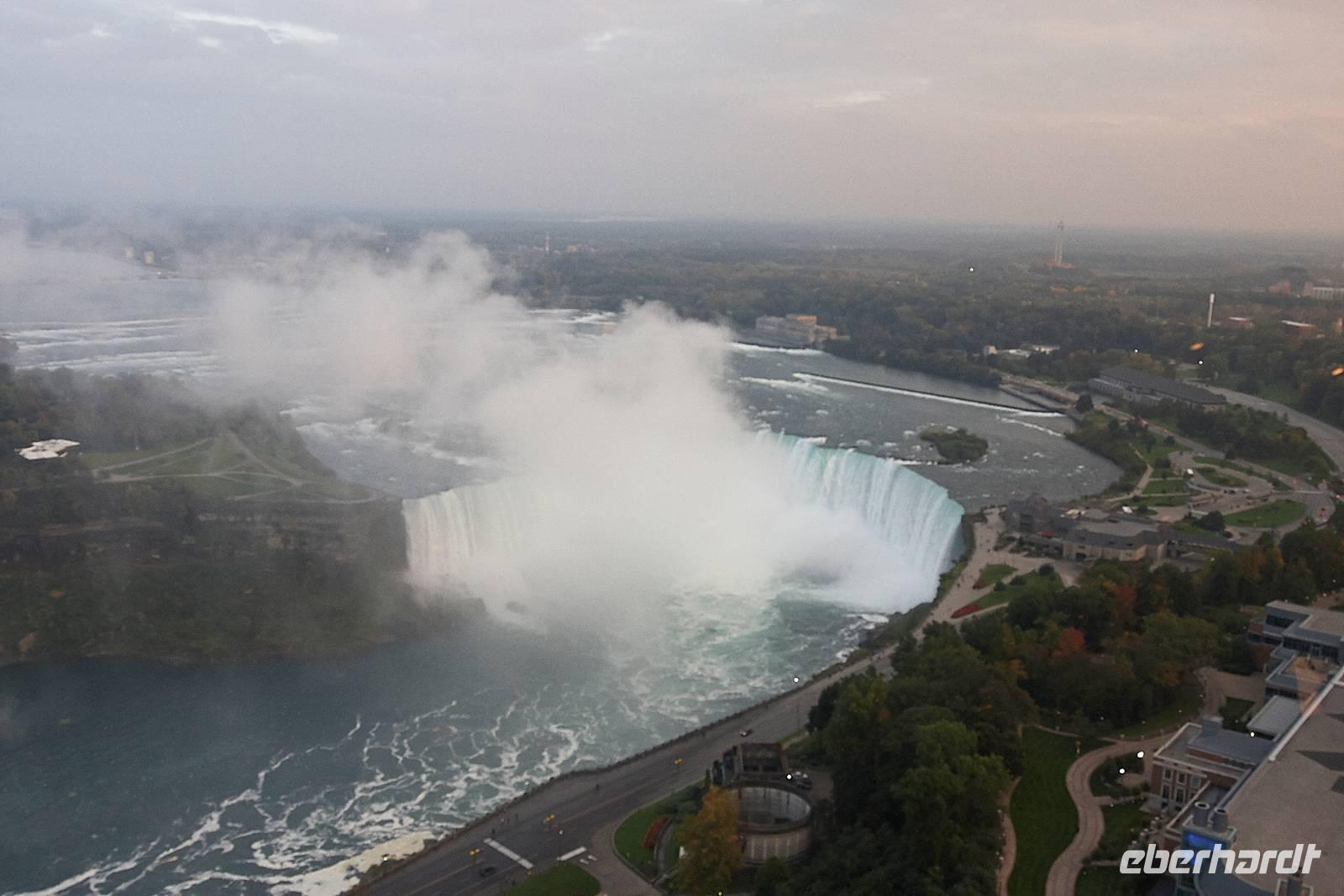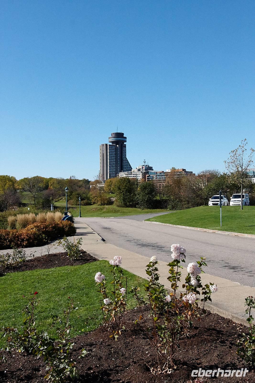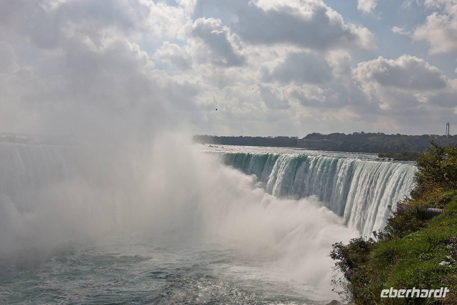 Auf unserem Weg zu den Niagara-Fällen machten wir noch einen kurzen Fotostopp am riesigen E-Werk, welches Kanada und die USA mit Strom versorgt und am sog. Whirlpool - einer 90°-Kurve des Niagara-Flusses. Weiter auf dem Niagara Parkway konnten wir schon einmal einen Blick auf die Fälle und die umgebende Landschaft werfen bevor wir zum Hotel fuhren.