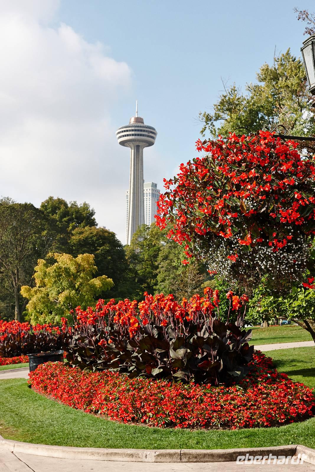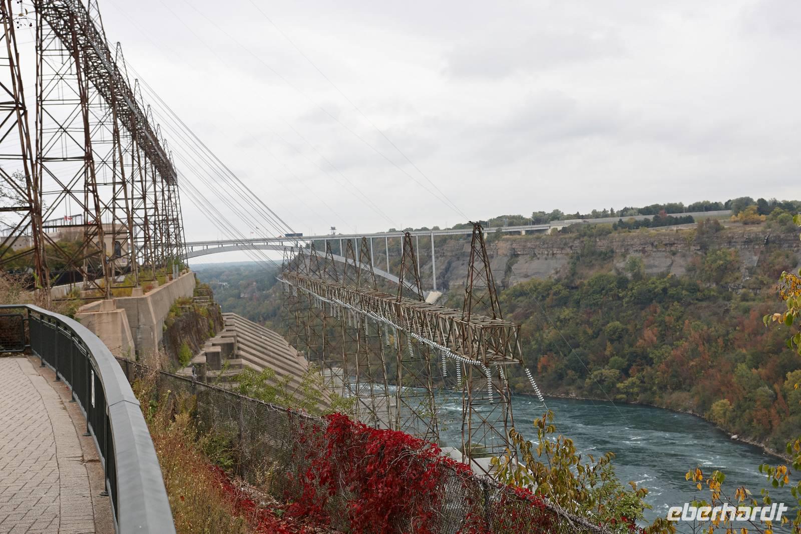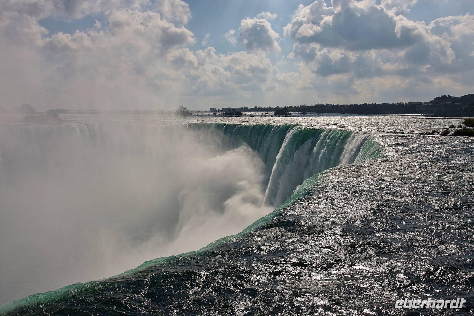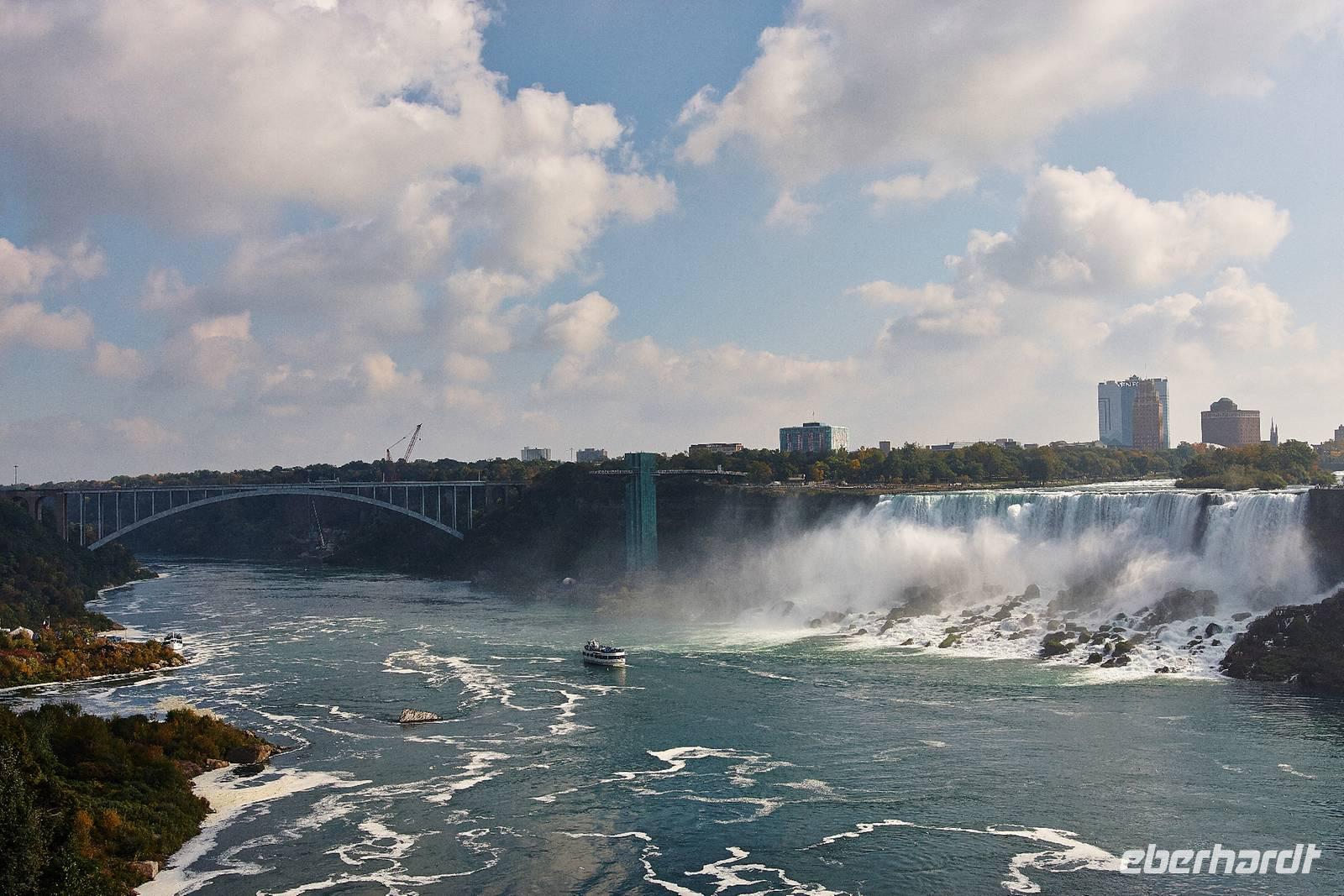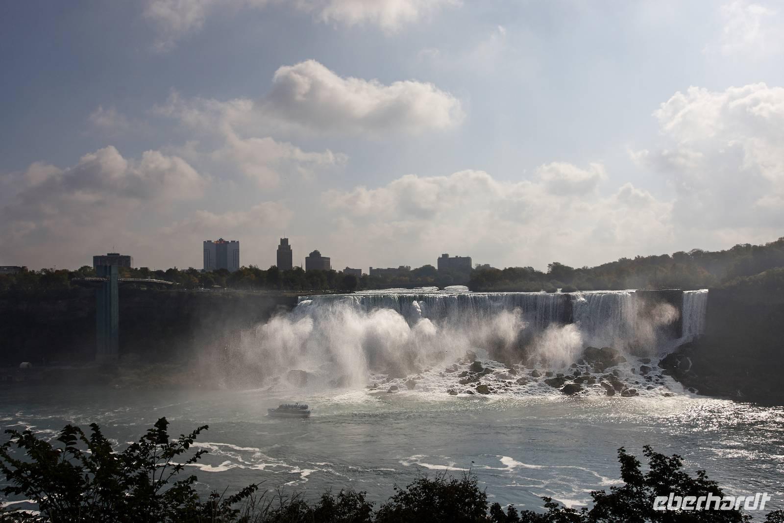 Auf unserem Weg zu den Niagara-Fällen machten wir noch einen kurzen Fotostopp am riesigen E-Werk, welches Kanada und die USA mit Strom versorgt und am sog. Whirlpool - einer 90°-Kurve des Niagara-Flusses. Weiter auf dem Niagara Parkway konnten wir schon einmal einen Blick auf die Fälle und die umgebende Landschaft werfen bevor wir zum Hotel fuhren.
