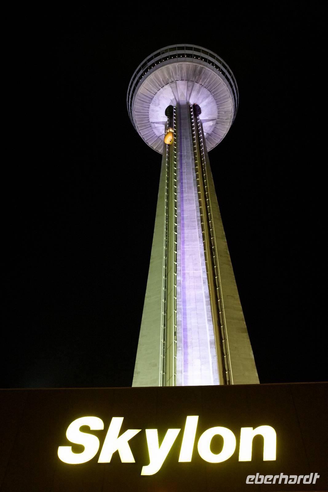 Am Abend spazierten wir zum Skylon Tower und genossen ein Abendessen im Aussichtsrestaurant in 158m Höhe. Hier hatten wir einen tollen Blick auf die Fälle und später auf die beleuchtete Stadt. Nach dem Essen machten sich einige von uns auf den Weg die bunt angestrahlten Fälle am Abend zu bestaunen.