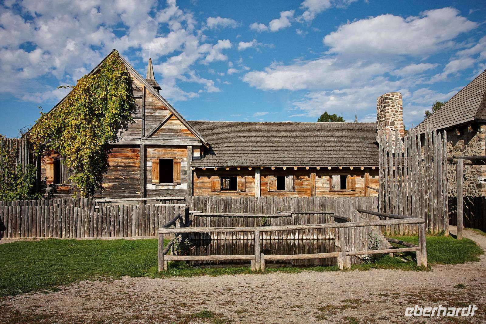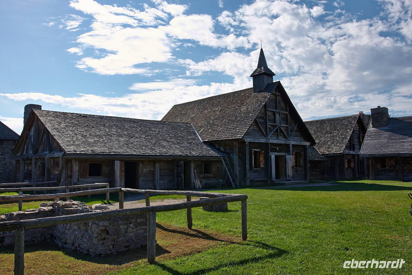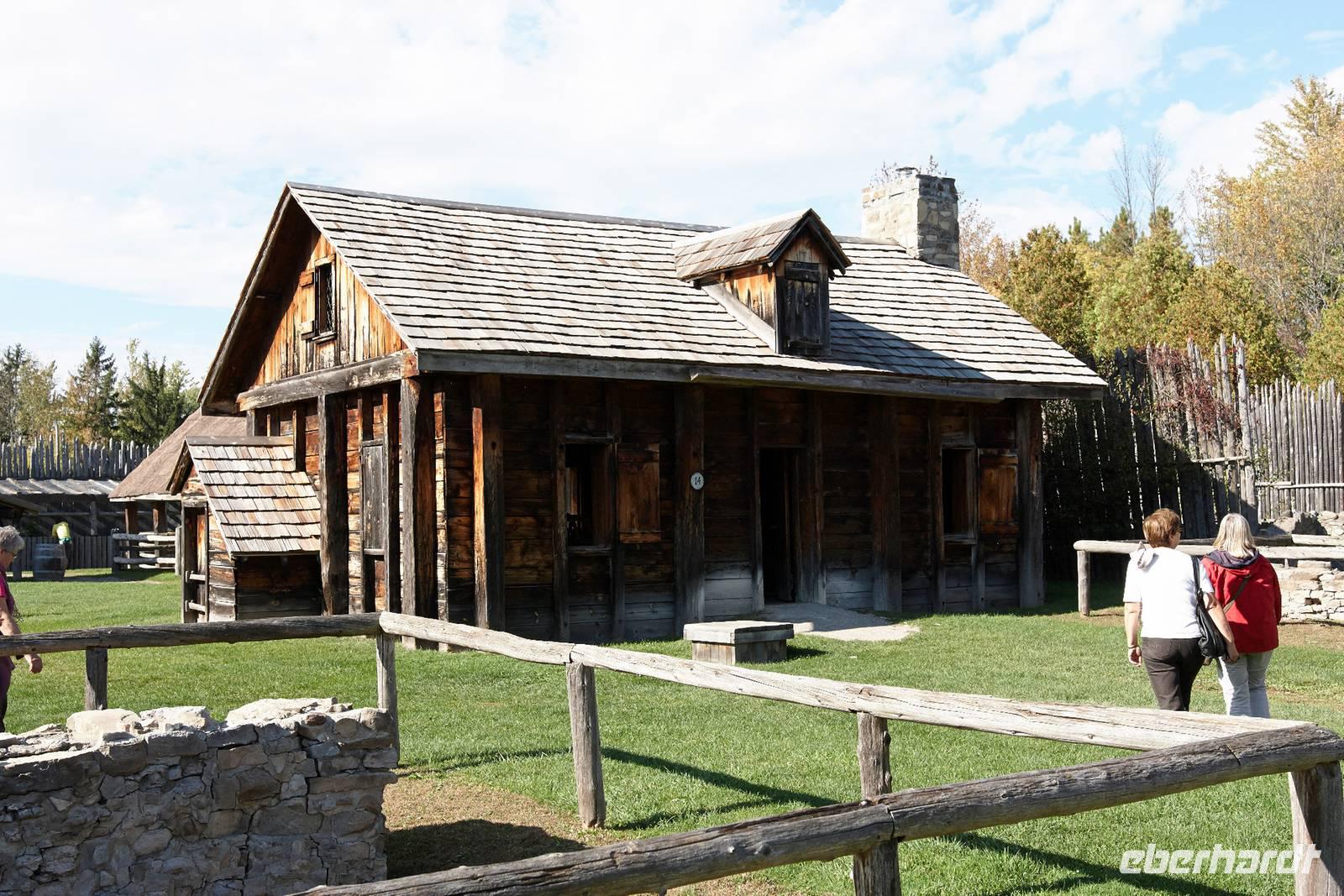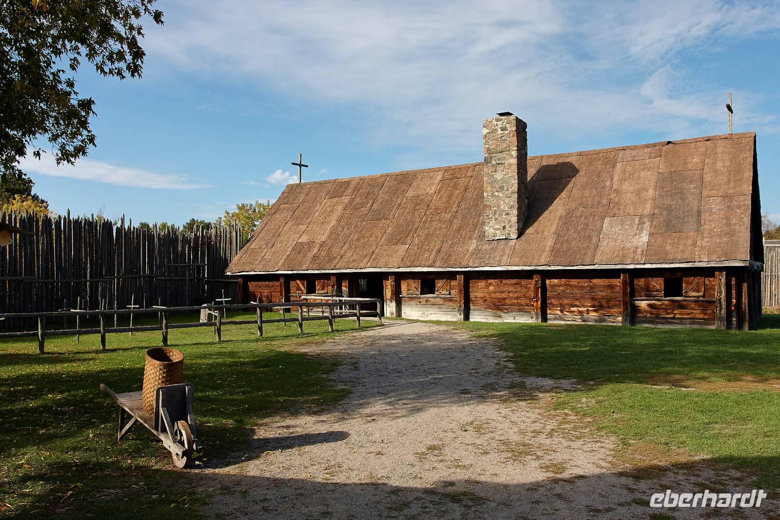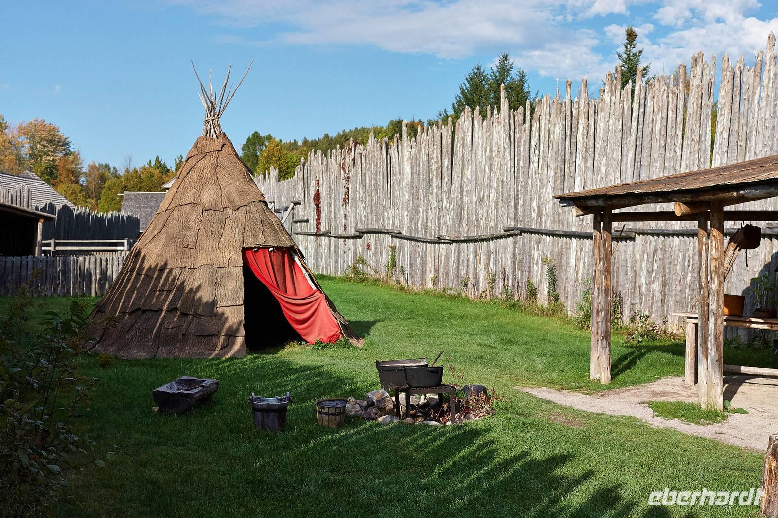 Weiter ging unsere Reise in die Muskoka-Region über Ontarios beschauliche Landstraßen. Wir erreichen das Museumsdorf "Sainte-Marie Among The Hurons" und können uns erst einmal bei einem leckeren Mittagessen stärken. Anschließend führte uns Susanne durch das Dorf und erklärte uns viel zur Geschichte der Jesuiten und den Indianerstämmen Kanadas. Ein kleiner Film über den Versuch der Franzosen die Indianer zum Christentum zu bekehren rundete die Führung ab.