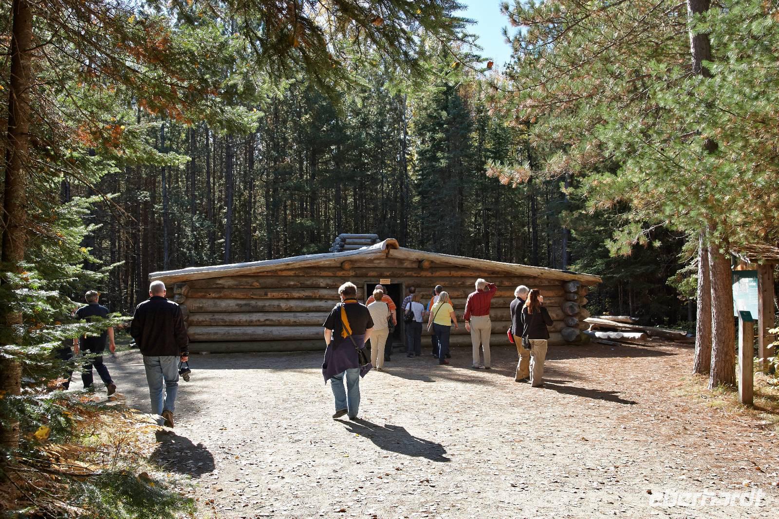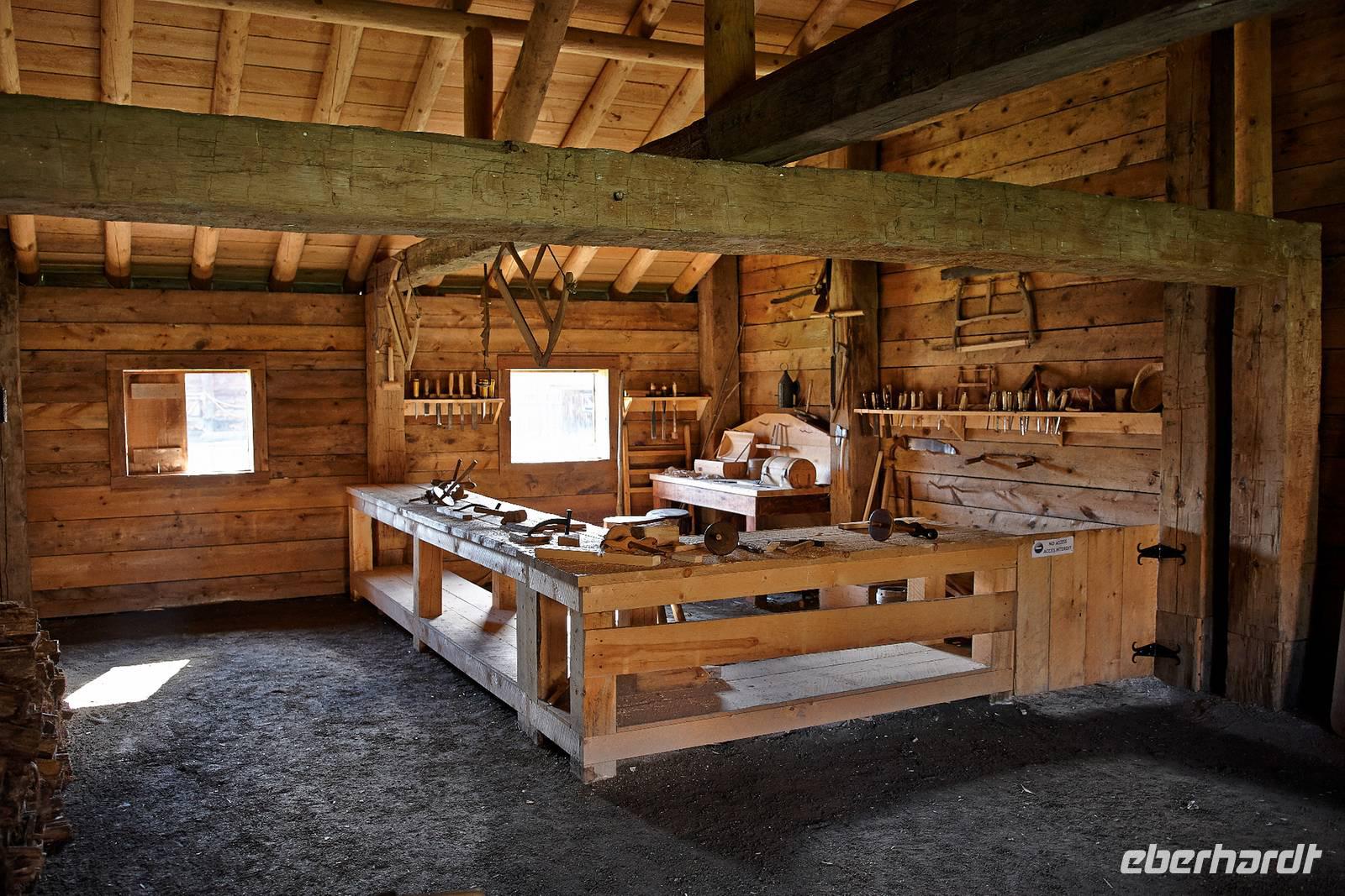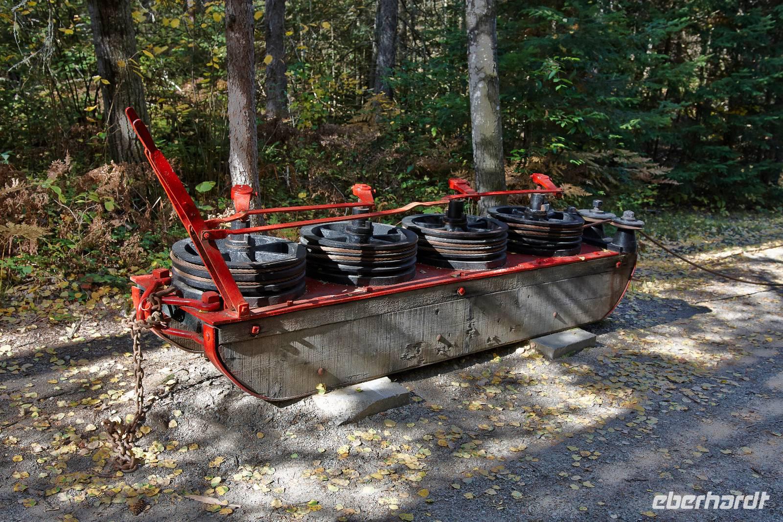 Im Anschluss besuchten wir das Holzfällermuseum. Bei einem Rundgang durch den Wald sahen wir die traditionellen Behausungen und Werkzeuge der Holzfäller. Brigitta wusste auch hier einiges zu berichten. Während des Rundganges konnten wir sogar eine trinkende Elchkuh am See erspähen.