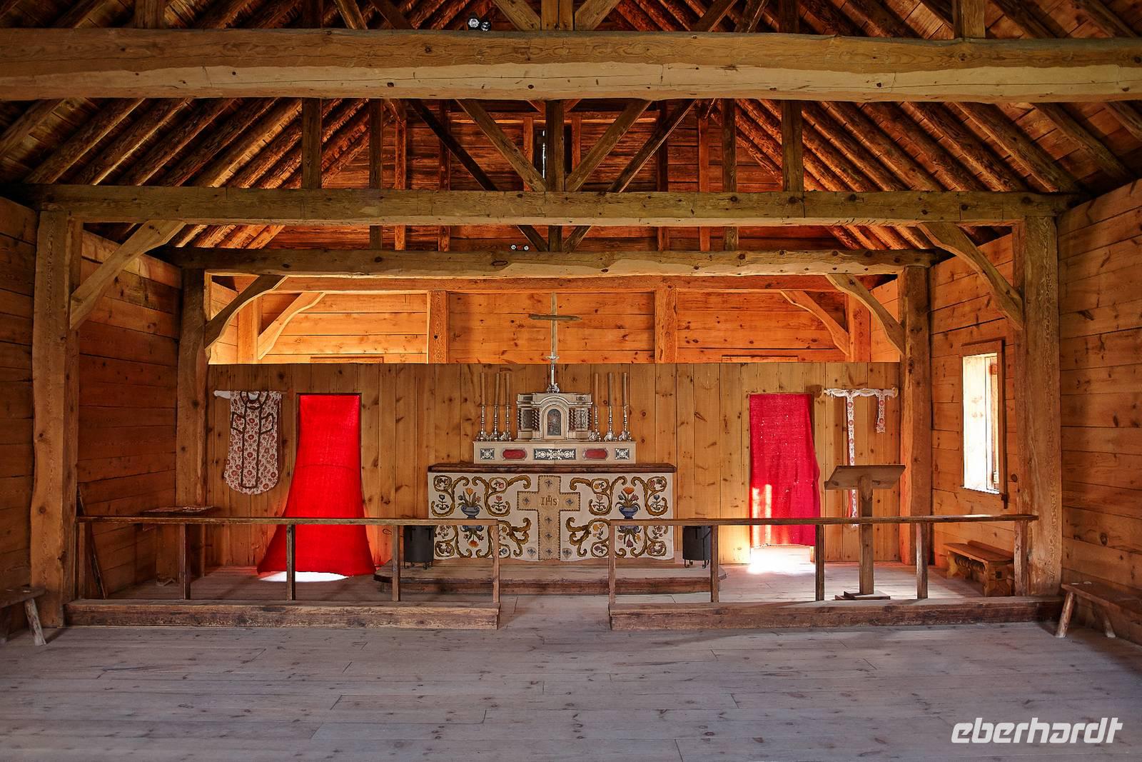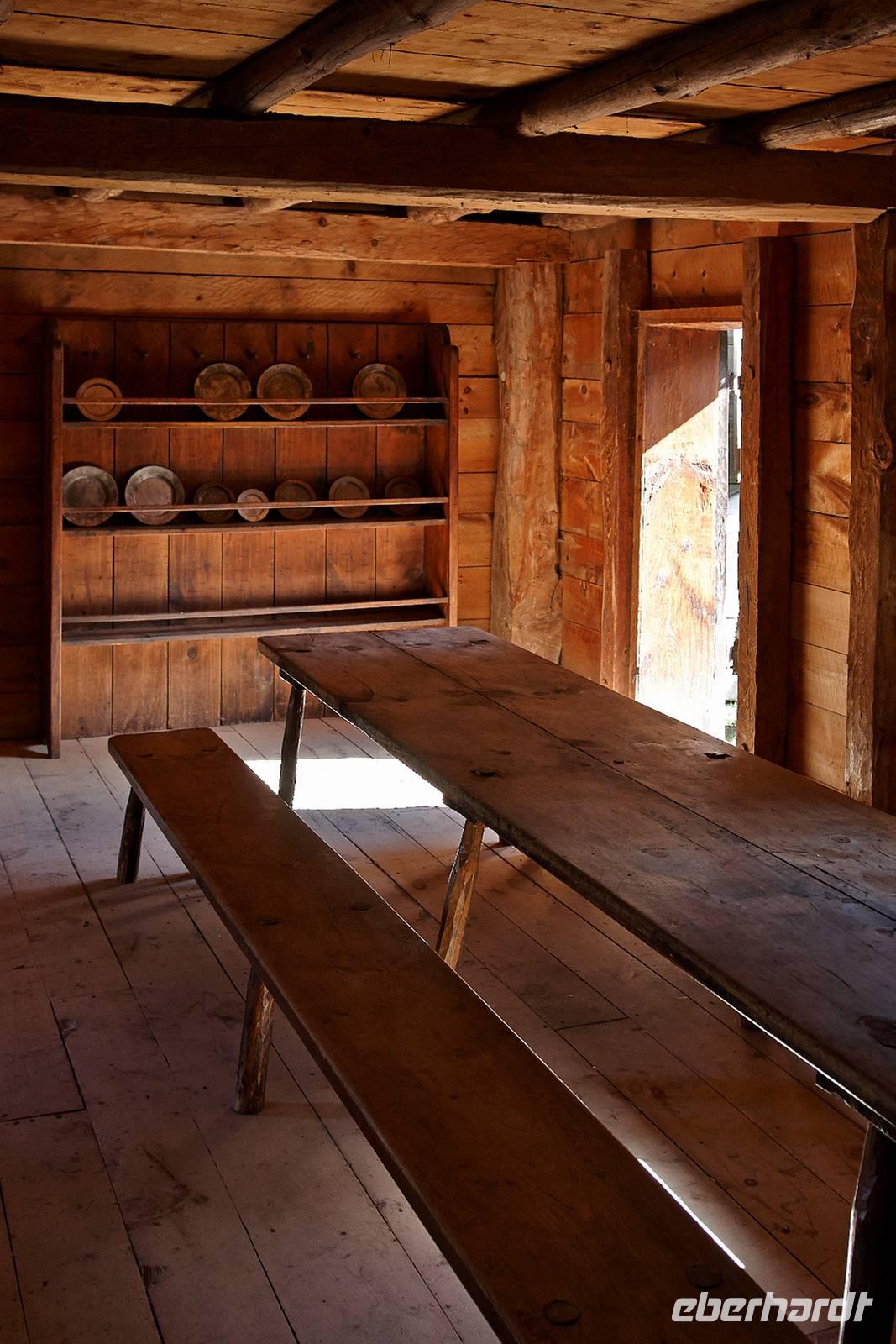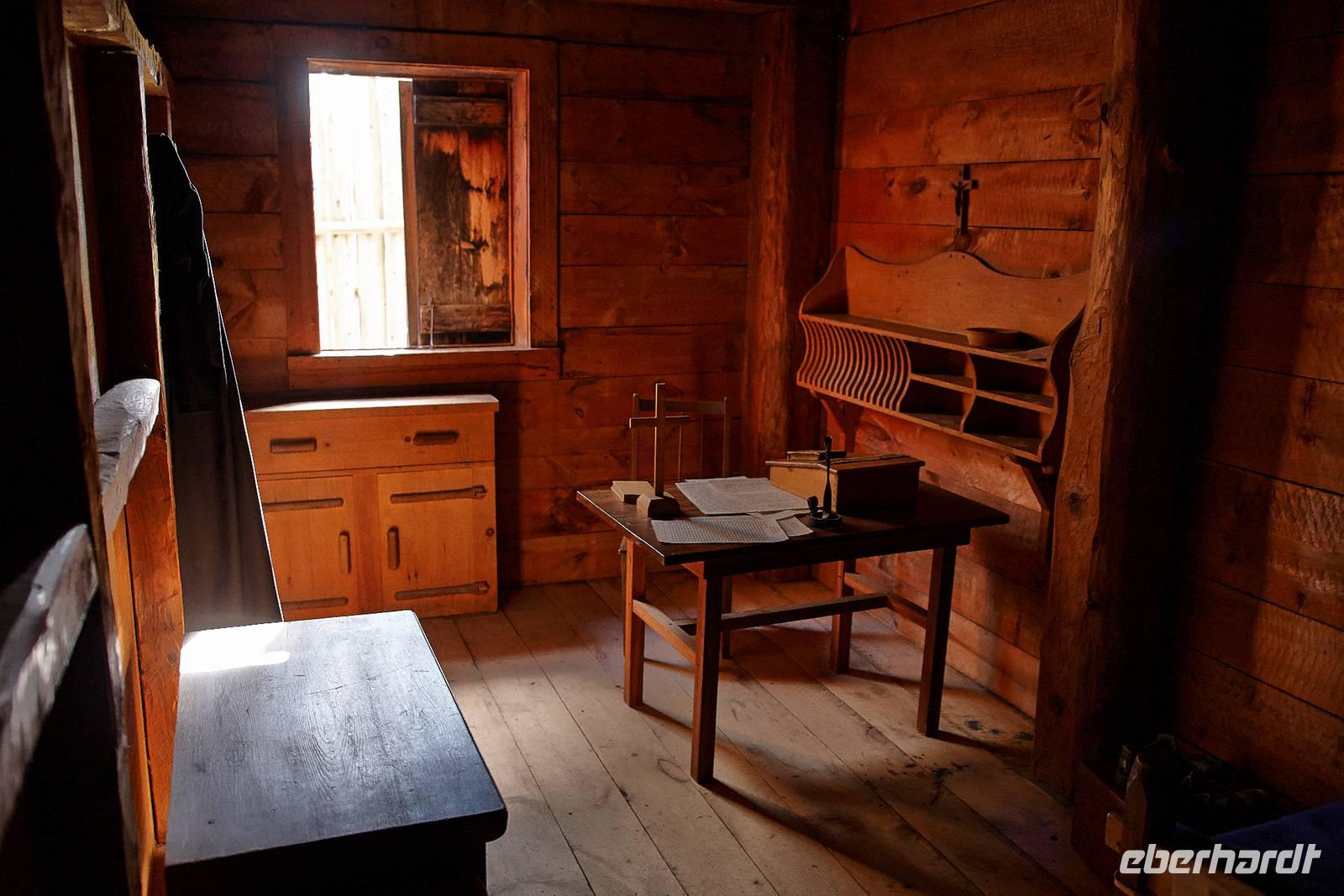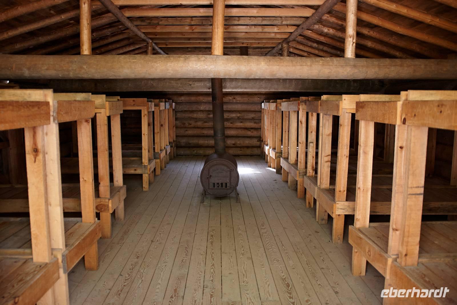 Im Anschluss besuchten wir das Holzfällermuseum. Bei einem Rundgang durch den Wald sahen wir die traditionellen Behausungen und Werkzeuge der Holzfäller. Brigitta wusste auch hier einiges zu berichten. Während des Rundganges konnten wir sogar eine trinkende Elchkuh am See erspähen.