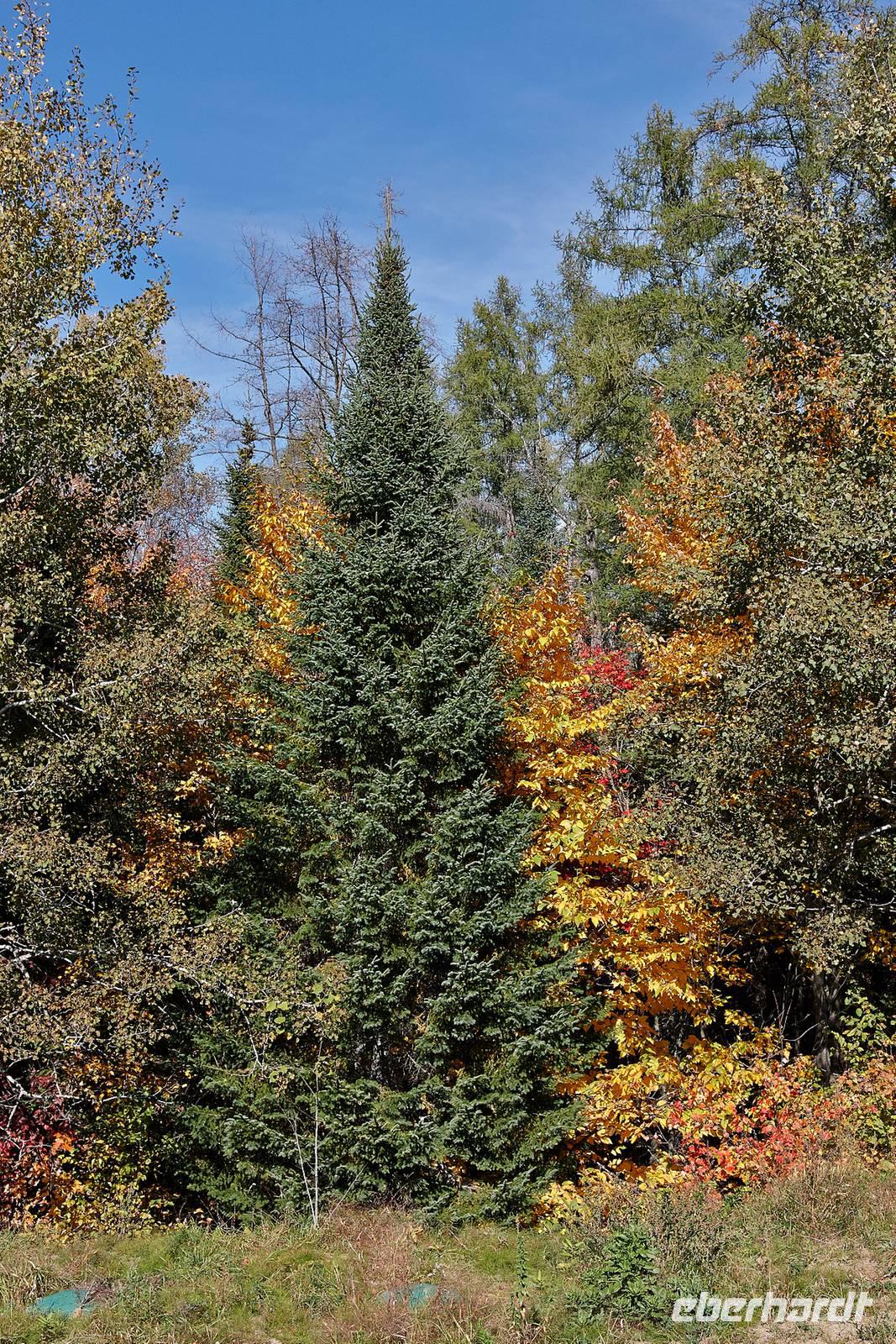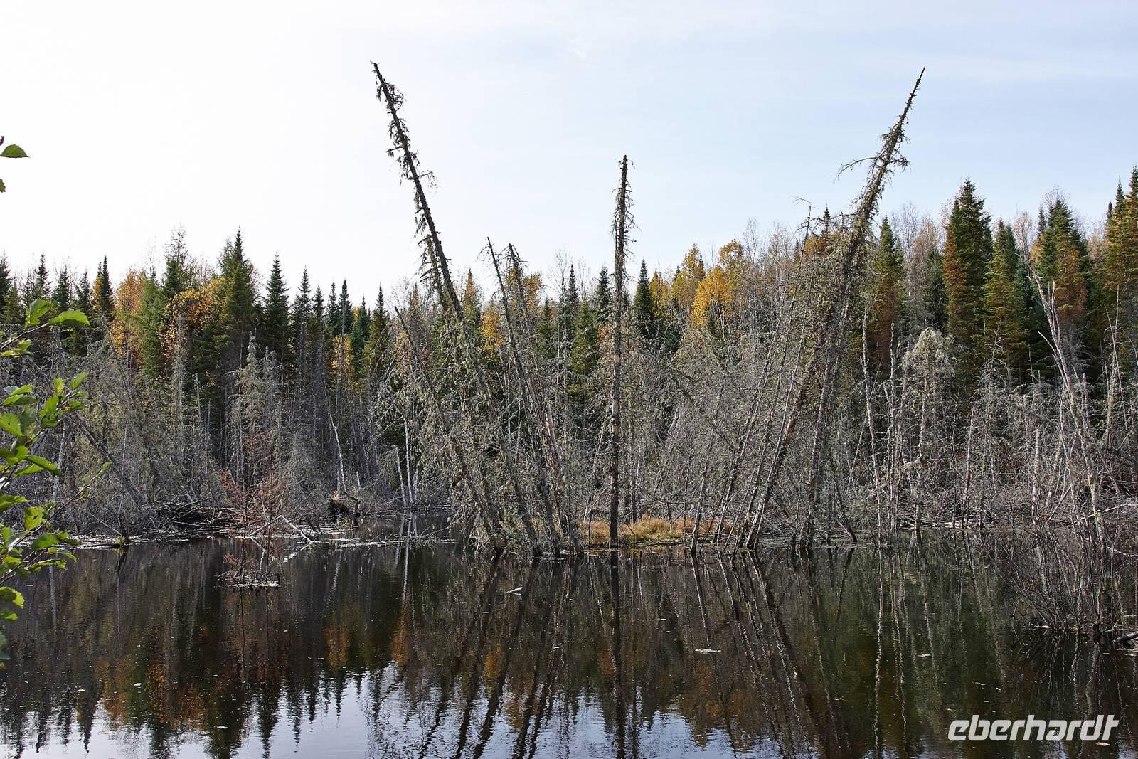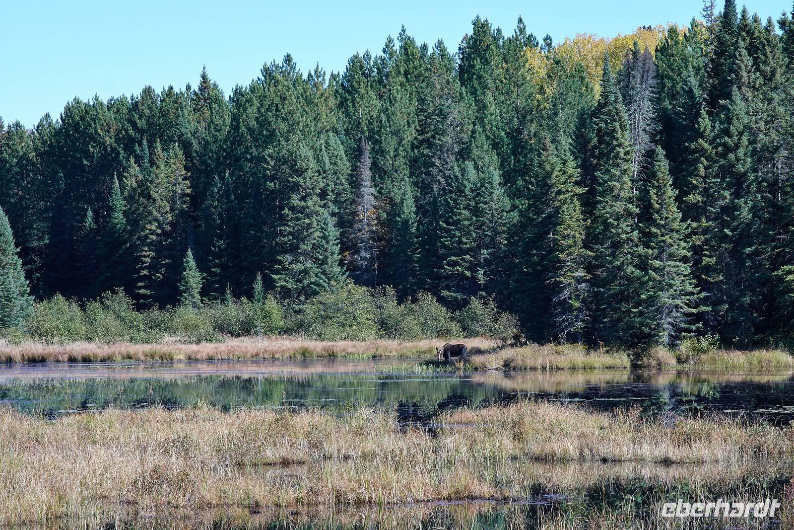 Den heutigen Tag verbrachten wir in den wunderschön gefärbten Wäldern Kanadas. Zuerst fuhren wir zum Ochstongue Lake und