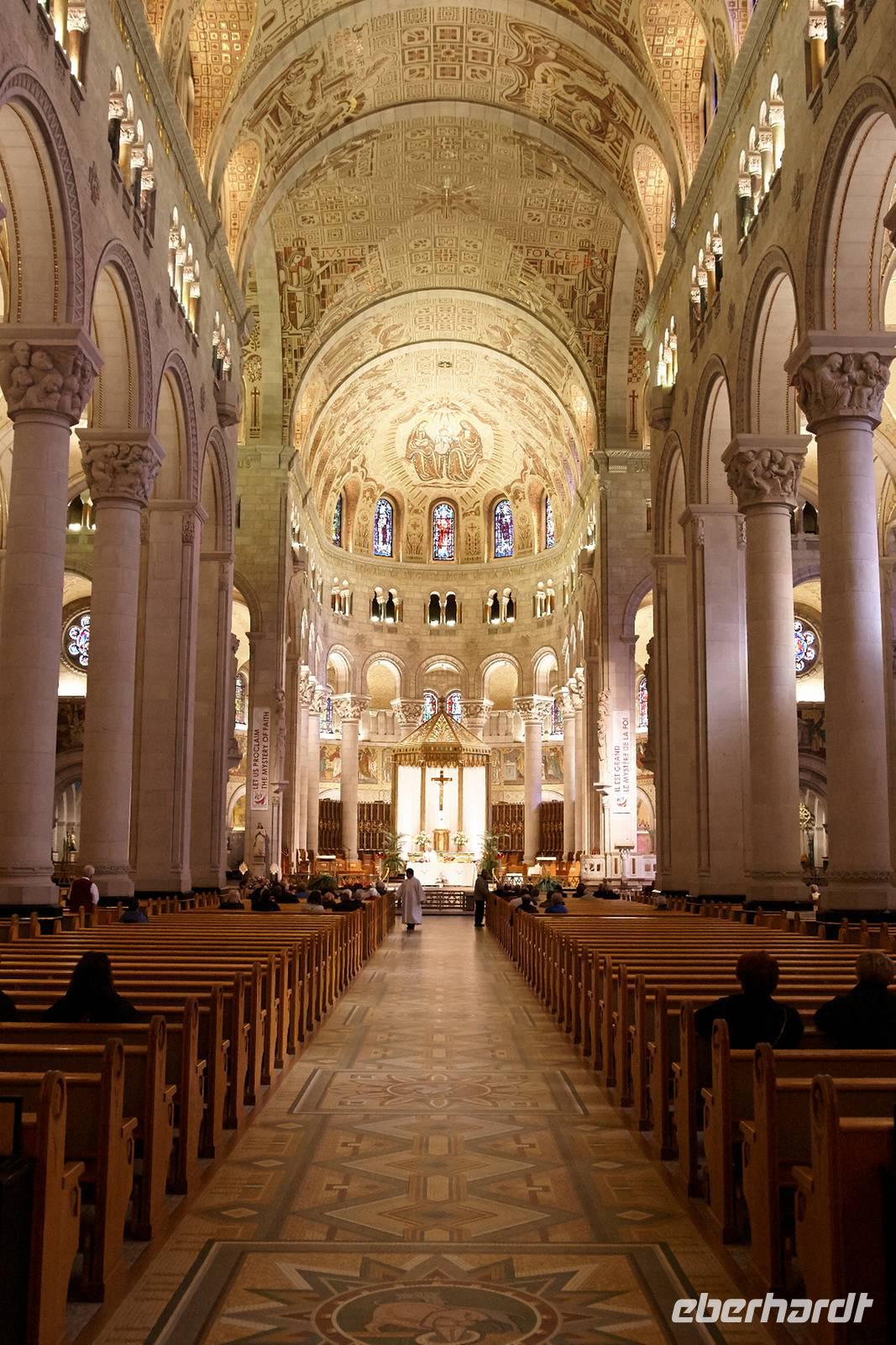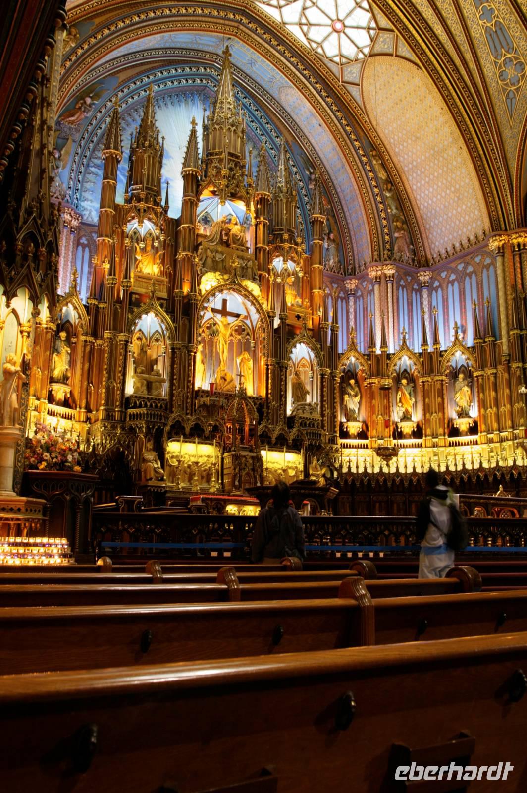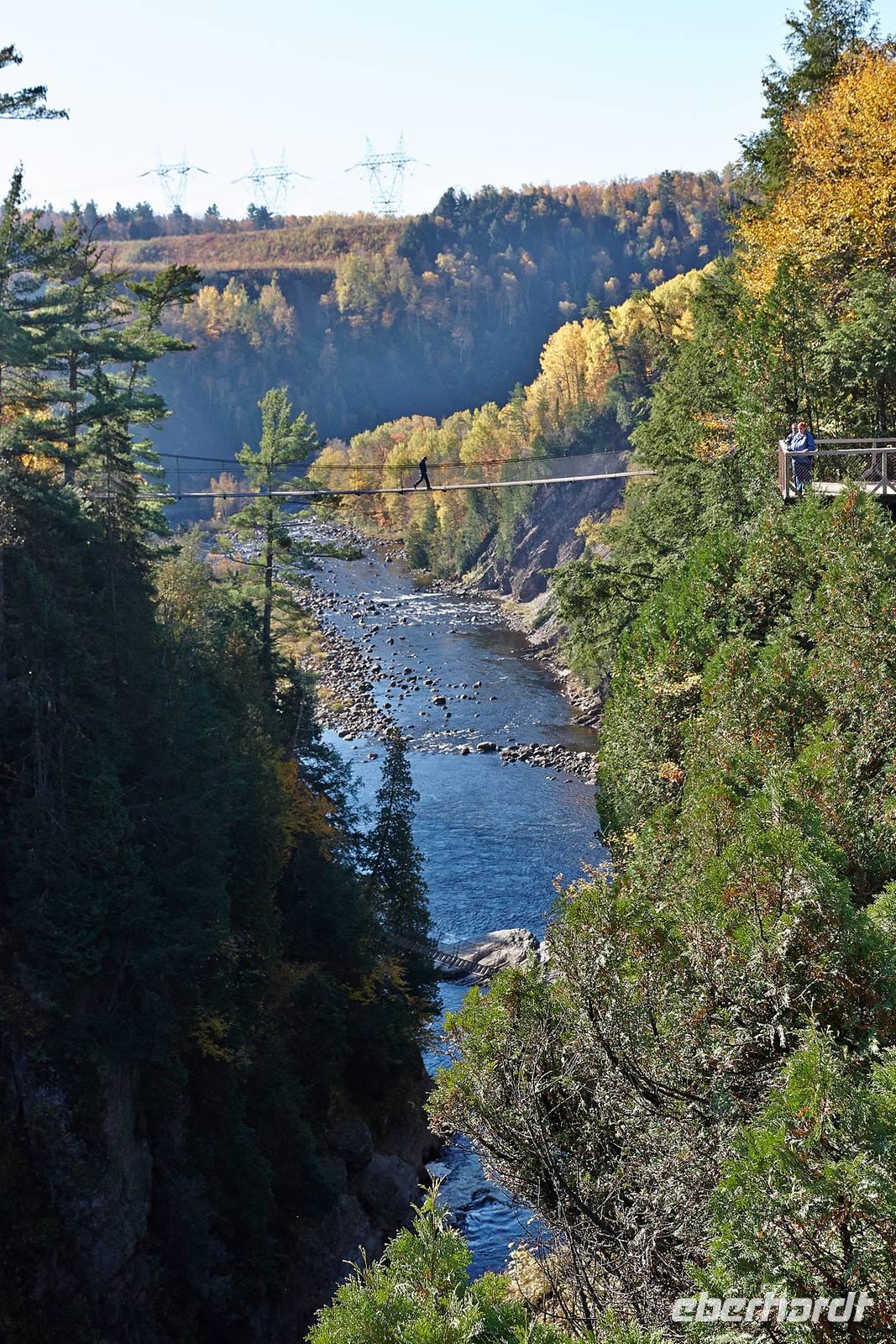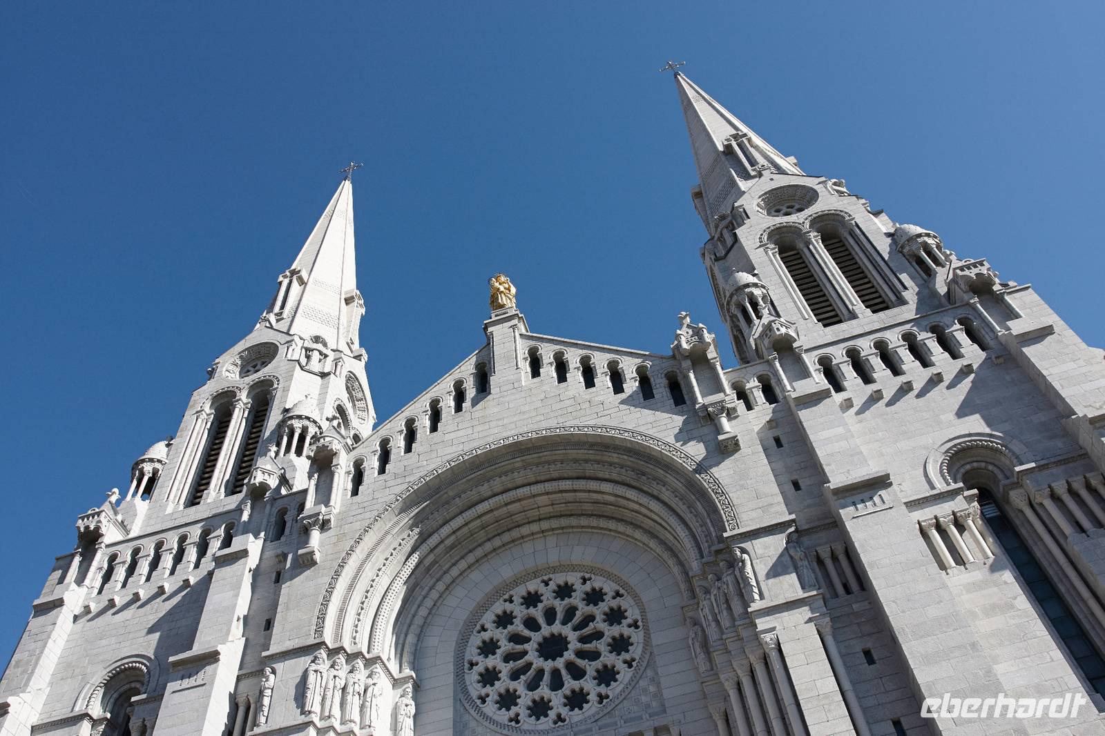 Auf unserem Weg zurück nach Quebec hielten wir an diesem Morgen noch am St. Anne Canyon. Bei einer Wanderung rings um den Wasserfall über Hängebrücken und Treppen hatten wir noch einmal tolle Eindrücke von der Ursprünglichkeit des Landes und faszinierende Aussichten. Der wichtigste Wallfahrtsort Nordamerikas stand auch noch auf unserem Programm: die riesige Basilika von Sainte-Anne de Beaupré. Zufällig durften wir hier auch gleich an einer Messe teilhaben.