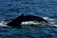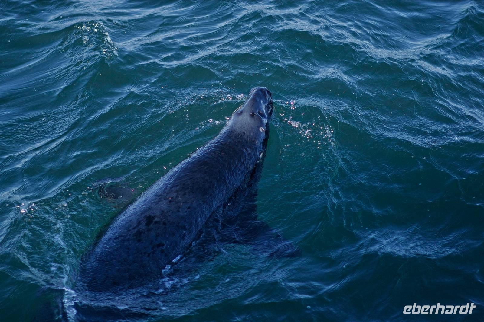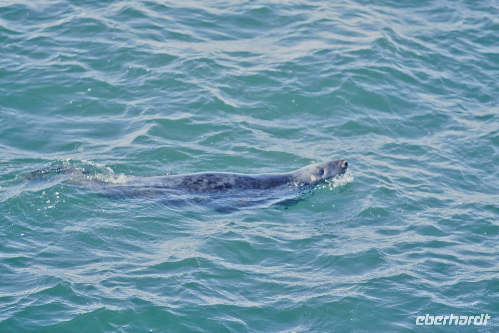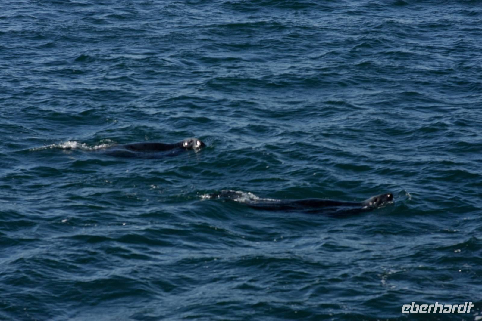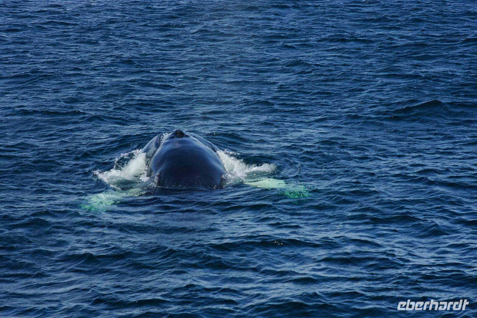 Ein Highlight unserer Reise stand für heut auf dem Programm: die Walbeobachtung in der Bucht vor Percé. Dafür mussten wir erst einmal mit der Fähre in das Städtchen Tadoussac übersetzen. Bis unser Ausflugsschiff anlegte war noch etwas Zeit um den nördlichsten Ort auf unserer Tour zu erkunden und sich etwas aufzuwärmen, denn hier war es schon wesentlich kälter als wir es in den letzten Tagen gewohnt waren. Dann ging es auch bald los und unser Schiff legte ab - zu unserem Glück waren heut nur wenig andere Gäste dabei und wir konnten uns frei auf den Decks bewegen und Ausschau halten. Es dauerte nicht lang und wir sahen auch schon den ersten Kandidaten - Minkwal, oder Zwergwal umkreise unser Schiff. Alle lauerten hinter der Kamera auf den bewussten Moment in dem er auftaucht um Luft zu holen. Einige gute Fotos haben wir auch dabei auch bekommen. Auch die typische Bewegung der Schwanzflosse beim Abtauchen konnten wir festhalten. Kurze Zeit später konnten wir in der Ferne eine große Fontäne sehen. Die Schiffsbesatzung war sich auch gleich sicher: das muss ein großer sein! Als wir näher kamen sahen wir das es ein Finnwal war...mit bis zu 25 Metern länge das zweitgrößte lebende Tier der Erde. Leider war dieser nicht ganz so aktiv wie die Kleineren. Immer wieder konnten wir das Auf- und Abtauchen der Minkys beobachten. Auf dem Rückweg umlagerte eine große Robbenfamilie unser Schiff. Diese waren sehr aktiv und boten noch tolle Motive.