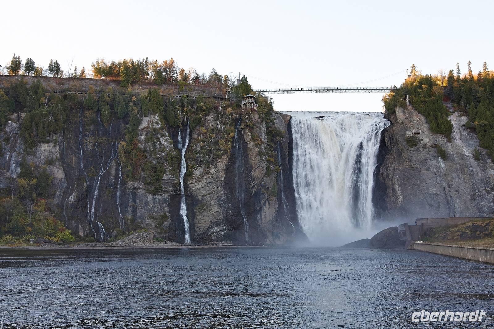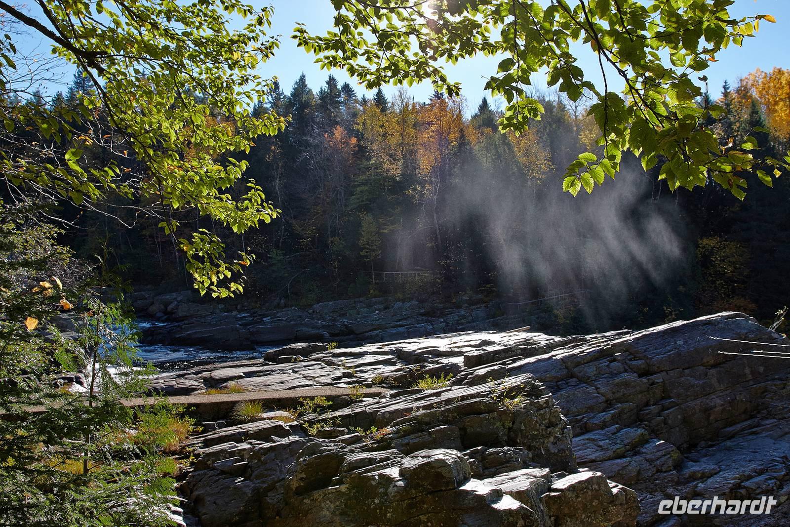 Doch nun stand noch einmal ein beeindruckender Wasserfall auf dem Programm: die Montmorency-Fälle. Bei einem Spaziergang konnten wir noch einmal tolle Motive der Wassermassen einfangen. Der Abend hielt aber noch eine besonderes Essen bereit. Wir fuhren zum "Sugar Shack" - ein Familienbetrieb der den berühmten Ahornsirup herstellt und in allen möglichen Varianten verarbeitet und veredelt. Wir konnten auch noch einen Blick in die Privatsammlung von Tierpräparaten des Besitzers werfen...wie ein kleines Museum!