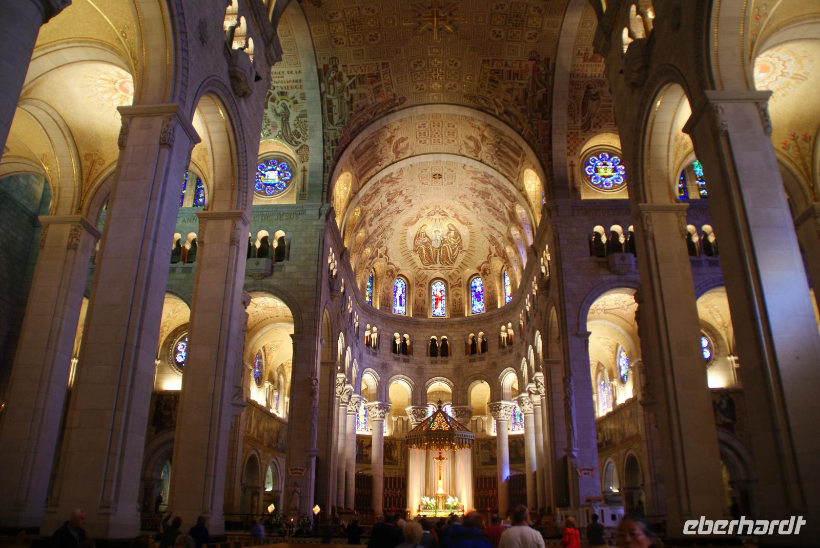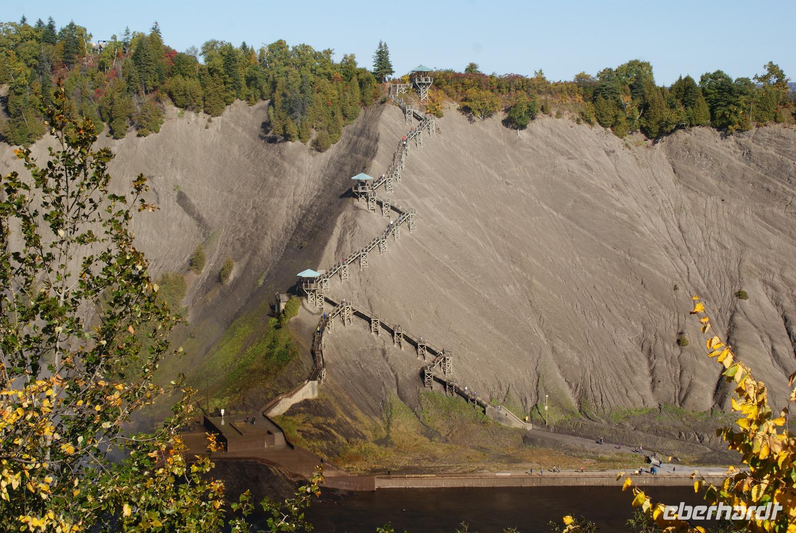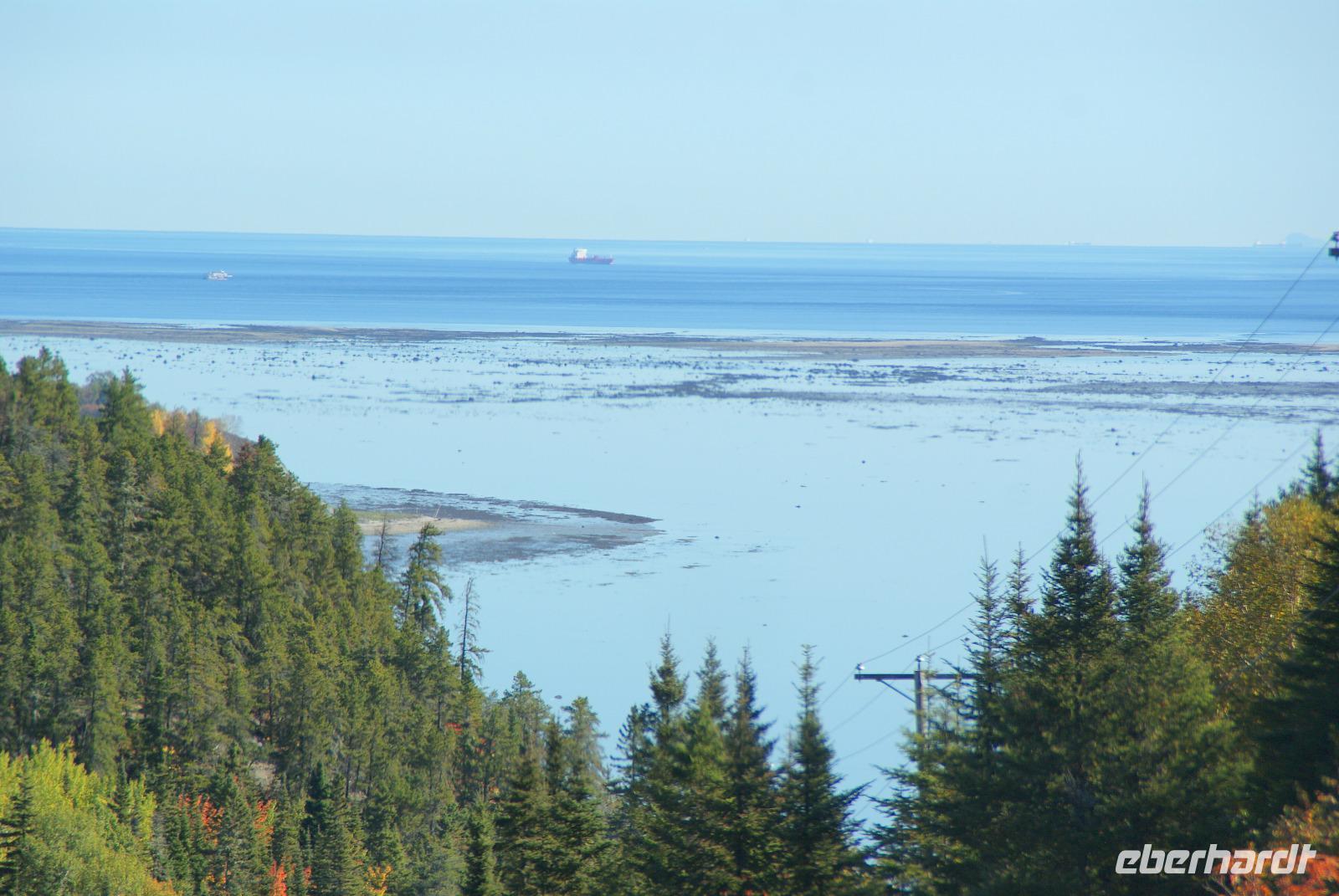 Endlich lacht die Sonne wieder! Nach einem herrlichen Frühstück mit Blick auf den See packen wir unsere Koffer und ziehen weiter. Auf zu neuen Abenteuern. Heute geht es Richtung St. Lorenz Strom und wir halten zunächst am bekannten Wallfahrtsort mit der Basilika Notre Dame du Cape und sind beeindruckt vom schönen Interieur. Bei Bilderbuchwetter fahren wir weiter durch die Provinz Quebec. Unvorstellbar, dass es in diesem riesigen Abschnitt Kanadas nur 8 Millionen Einwohner gibt. Damit für unser leibliches Wohl gesorgt ist, steuern wir bei Durchfahrt durch Quebec City eine schöne Feinkost-Markthalle an und jeder kauft, was er für das heutige geplante Picknick haben möchte. Dorle erklärt uns übrigens, dass Quebec in der Indianersprache „wo der Fluss enger wird" bedeutet... Etwas außerhalb der Stadt liegt unser nächstes Ziel „Chute Montemorency". Der beeindruckende Wasserfall ist noch um einiges höher als die berühmten Niagara Fälle. Wir bekommen viel Zeit um in Ruhe zu picknicken und jeder nach Lust und Laune den Wasserfall entweder von oben anschaut oder mit einem Großteil der Gruppe über eine Treppe nach unten wandert. Was für ein Erlebnis, zunächst über die Hängebrücke, unter uns die Wassermassen und das alles bei einem Wetter, welches schöner nicht sein kann. Was für ein Erlebnis! Voller schöner Eindrücke fahren wir weiter zu unserem heutigen Endziel, La Malbaie und checken in unser neu renoviertes Hotel ein. Wieder ist ein Tag vollbracht und wir träumen von den schönen Erlebnissen.
