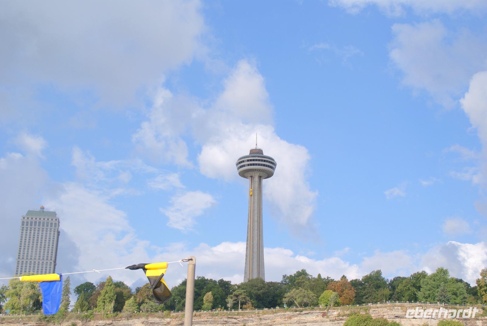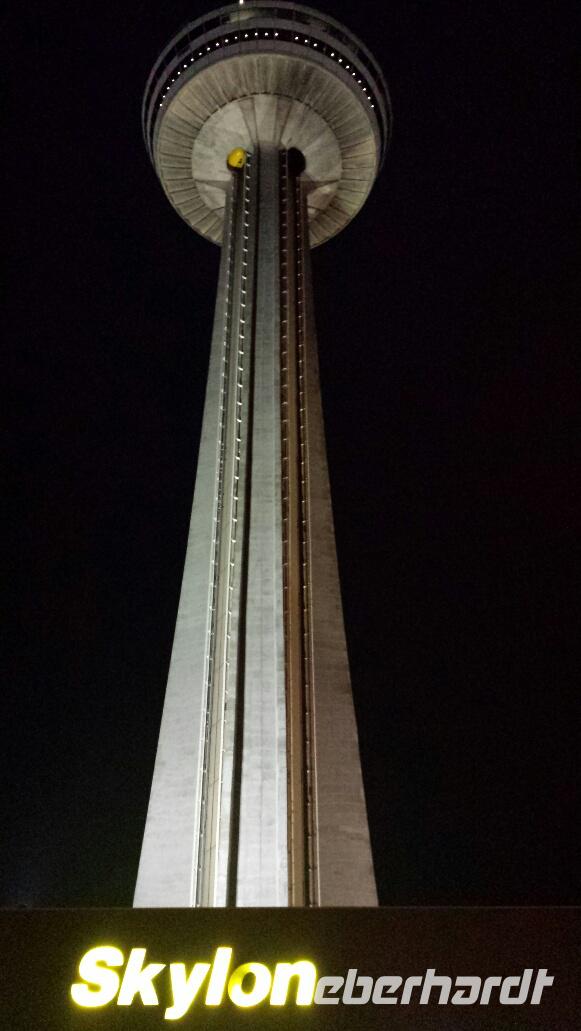 Am späten Nachmittag erreichen wir die Niagara Fälle und erhalten schon per Bus einen ersten Eindruck von den Dimensionen, die die Fälle zu bieten haben. Dorle erklärt uns, dass Niagara in der Sprache der Indianer „Donnerndes Wasser" bedeutet und wir sollen am nächsten Tag dieses Donnern aus nächster Nähe erfahren.... Abends essen wir im Skylon Tower in 160 m Höhe und haben einen grandiosen Blick auf die US und Kanadischen Fälle. Ein Wahnsinnsausblick. Nach leckerem Dinner Buffet gehen wir noch auf die Aussichtplattform über uns und einige wandern danach noch zu den Fällen, die ab 20.30 Uhr bunt beleuchtet sind. Ein tolles Erlebnis. Sicher träumen wir heute Nacht von all dem bisher Erlebten und sind gespannt, was die nächsten Tage bieten werden.