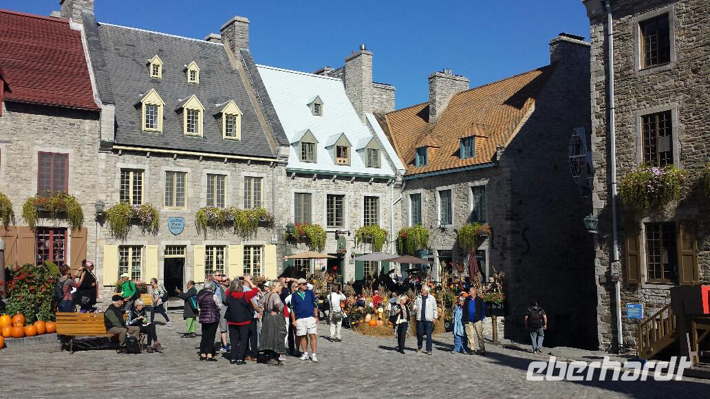 Heute heißt es Abschied nehmen vom wunderschönen Kanada. Doch wollen wir die Stunden, die uns hier in Quebec bleiben, noch bestens auskosten. So genießt jeder nach eigenem Gusto alleine oder in der Gruppe diese so besondere Stadt. Manche nehmen die Fähre auf die andere Seite nach Levis und fotografieren die Skyline Quebecs, gekrönt durch das Chateau Frontenac in all seiner Größe und Schönheit. Danach spazieren wir durch die malerischen Gassen der Altstadt, die sich hier in Ober-und Unterstadt teilt. Sind wir wirklich noch in Kanada oder doch schon in Frankreich? Am Nachmittag müssen wir nun doch Abschied nehmen und so begleiten uns Wayne, unser Busfahrer und „unsere Dorle" noch bis zum Flughafen, wo wir uns leider voneinander verabschieden müssen.