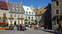 Unser heutiges Tagesziel ist die wunderschöne Stadt Quebec. Doch zunächst steuern wir den Canyon Saint Anne an und spazieren über 3 Hängebücken den Wasserfall hinunter. Was für ein Tag- blauer Himmel, keine Wolke in Sicht, der Indian Summer erweist sich die Ehre, die Natur verfärbt sich von Tag zu Tag noch mehr und wir können uns an den roten Ahornbäumen einfach nicht satt sehen. Das muss man in Natura gesehen haben. Unbeschreiblich! Hier könnten wir es noch länger aushalten, uns allen gefällt dieser wunderbare Wasserfall inmitten von herrlicher Landschaft. Weiter geht's zum beliebtesten Wallfahrtsort Nordamerikas, der Basilika Saint Anne de Beaupré. Dorle führt uns hinein und erklärt viel Interessantes, wir staunen über die prachtvollen Gemälde und bunte Fenster innerhalb. Auch von außen bietet die Basilika eine großartige Kulisse umrahmt von Herbststimmung der besonderen, kanadischen Art. Nach so schöner Wanderung und Besichtigung entscheiden wir uns für ein Picknick im Freien und genießen das tolle Wetter. Mit unseren vorab eingekauften Köstlichkeiten lassen wir uns auf den „Feldern Abrahams" oder auch dem sogenannten „Schlachtfeld" nieder und speisen köstlich. Gut gestärkt entdecken wir per Bus und per Pedes Quebec und sind alle begeistert. So eine hübsche Stadt mit viel französischem Flair, gekrönt vom Chateau Frontenac-so schön hatten wir es nicht erwartet. Da unser Hotel mehr als zentral liegt, können wir heute oder auch morgen noch so einiges zu Fuß erkunden. Abends fahren wir zur Zuckerhütte und uns allen schmeckt das zünftige, kanadische Mahl. Wir werden von einem Musikanten unterhalten und musizieren gerne mit, als Dorle die „Löffel" verteilt. Herzlichen Dank an „Frau Ilse" für die Mühe und die netten Worte, die sie im Anschluss für das Reiseteam, bestehend aus Dorle, Wayne und Susanne, im Namen aller Gäste fand. Auch das danach aufgeführte Theaterstück hat alle köstlich amüsiert! Was für ein netter Abschlussabend in rustikaler Atmosphäre. Im Anschluss erhalten wir noch interessante Einblicke in die Herstellung von Ahornsirup und staunten nicht schlecht, wie mühsam doch dessen Produktion ist. Das ein oder andere Souvenir wird noch erstanden und wir kehren voller neuer Eindrücke zurück in unser Chateau Laurier.