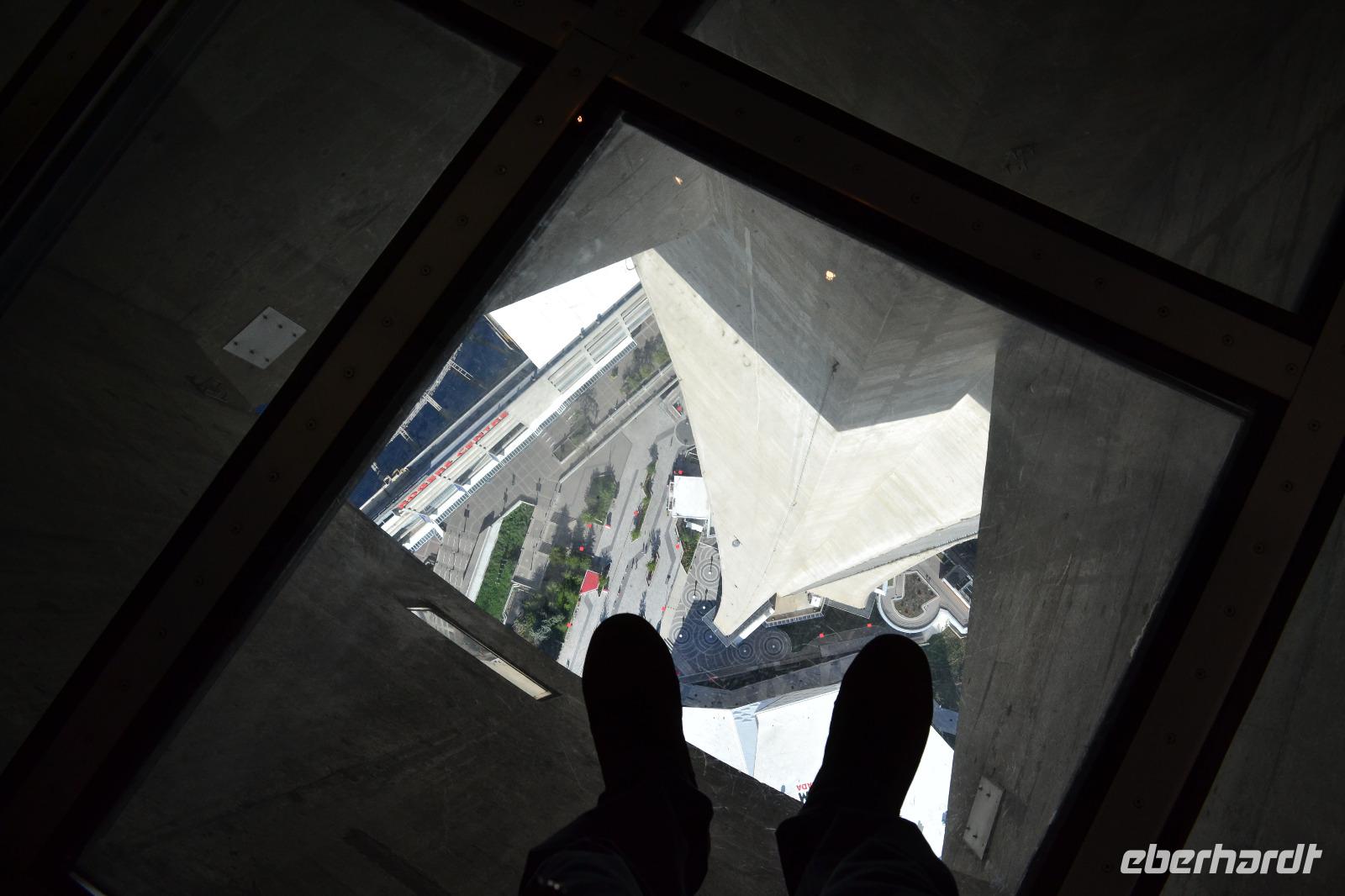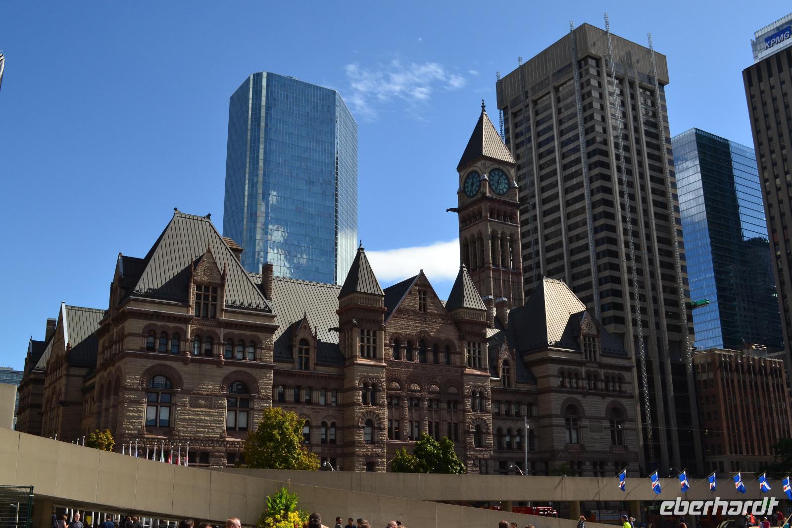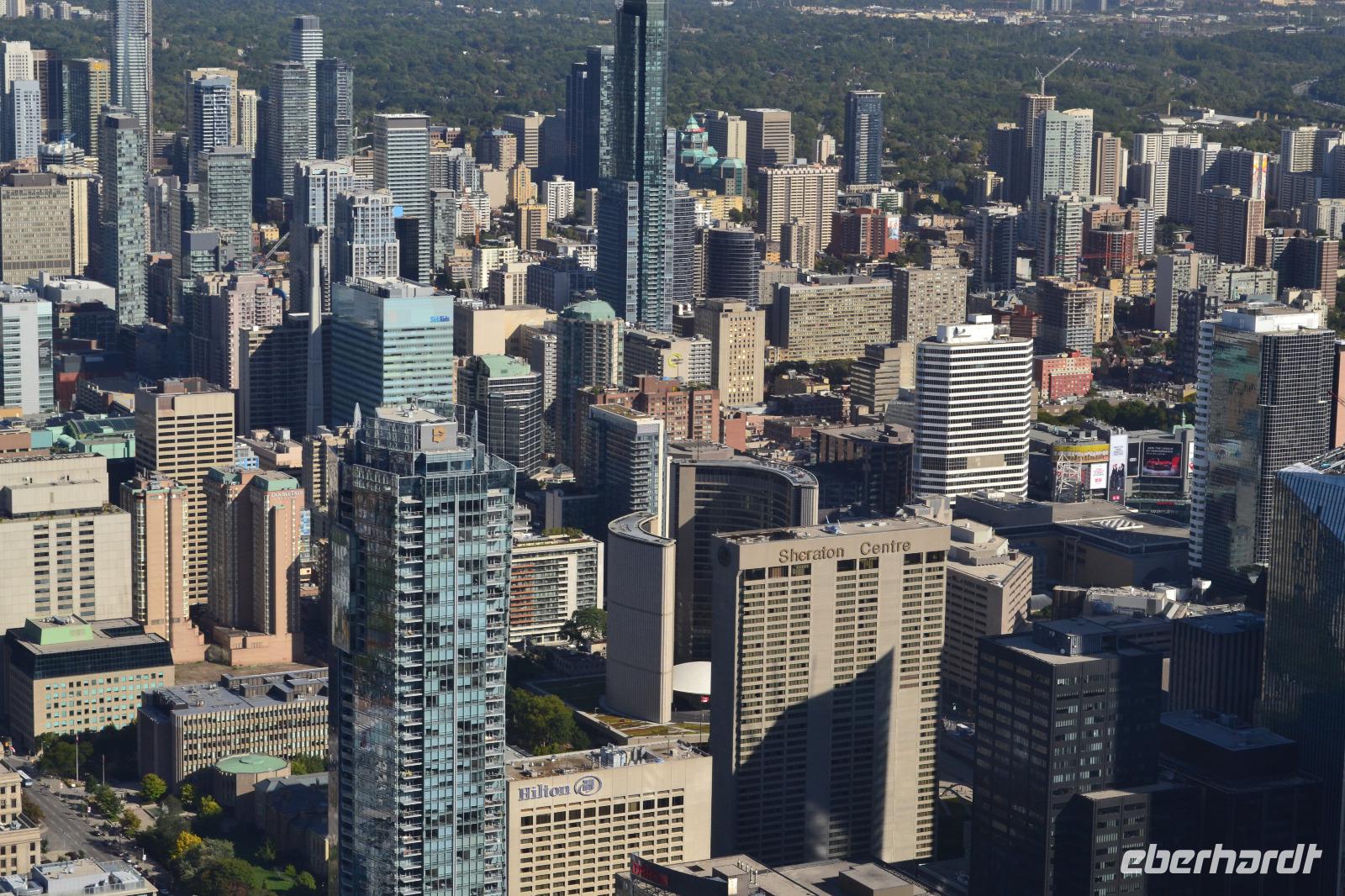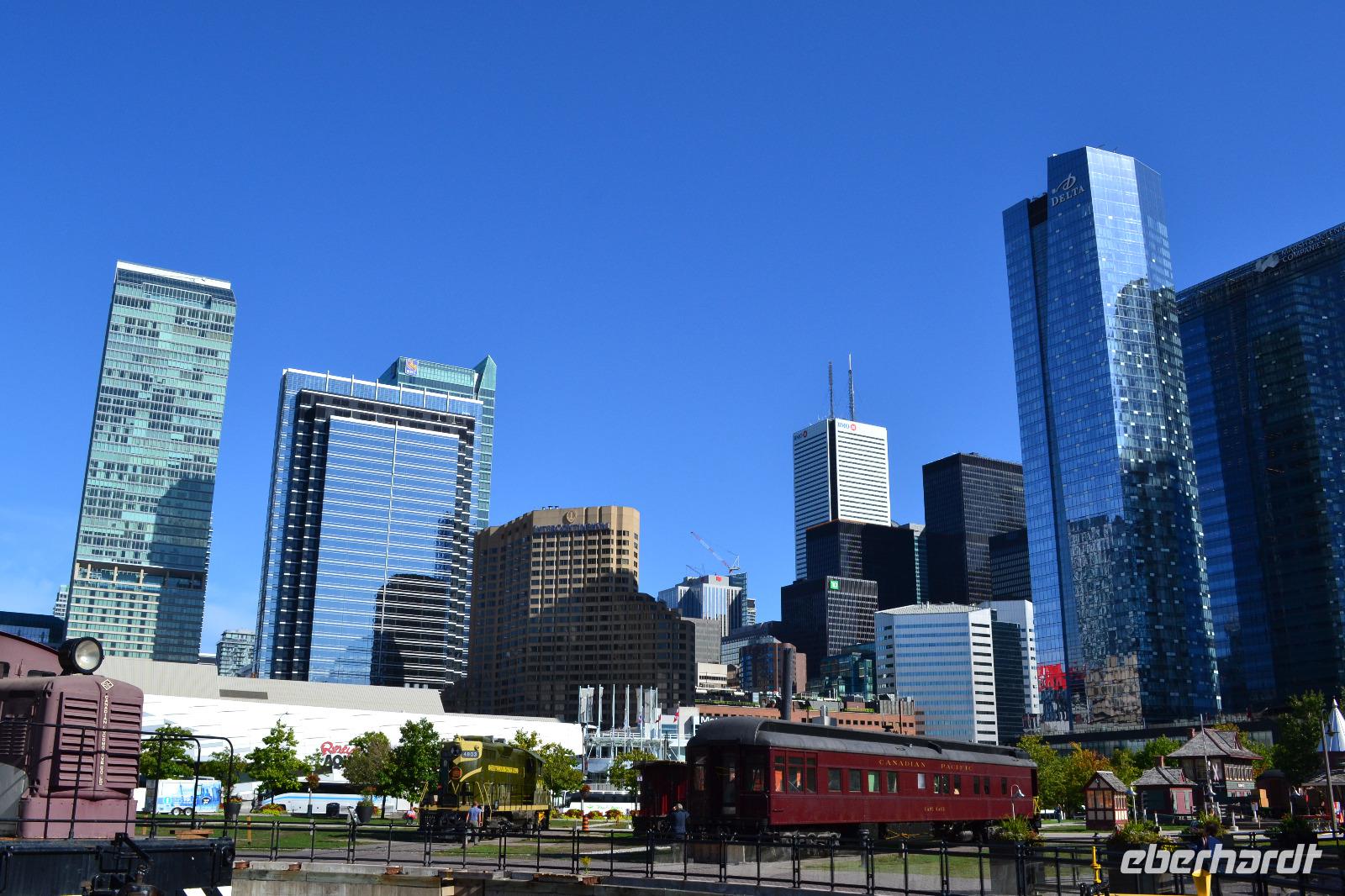 Meine Reise nach Kanada beginnt um 12:45 Uhr auf dem Flughafen Dresden. Gespannt warte ich auf die ersten Gäste, die ich auf dieser Reise begleiten darf. Nach dem Security Check stärken wir uns mit einem Baguette und warten darauf, dass es endlich losgeht. Bis Frankfurt ist es nur ein sehr kurzer Flug mit der Lufthansa. Am Abfluggate treffen nach und nach auch meine anderen Gäste mit Flügen aus Berlin und Bremen ein. Der Flug nach Toronto mit Air Canada ist schon ein kleines Highlight, denn wir fliegen mit dem Dreamliner (Boeing 787-9)! Das wohl modernste Passagierflugzeug der Welt zeichnet sich durch einen um ca. 20% geringeren Treibstoffverbrauch, eine geringe Lärmbelästigung, größere Fenster und einen größeren Stauraum aus. Pünktlich landen wir in Kanada und treffen nach der Erledigung aller Einreiseformalitäten auf unseren örtlichen Reiseleiter Peter Kargl, der erst ein paar Stunden vorher aus seiner Heimatstadt Vancouver nach Toronto eingeflogen ist. Unser Busfahrer Paul-André holt uns vom Flughafen ab und fährt uns zu unserer ersten Unterkunft, dem Chelsea Hotel, mitten im Herzen der größten kanadischen Metropole. Hier nehme ich noch kurz Kontakt zu den Gästen auf, die auf eigene Faust angereist sind bzw. das Eberhardt-Vorprogramm in New York genutzt haben. Unsere kleine Schicksalsgemeinschaft (22 Gäste, Peter, Paul und ich) ist somit komplett und voller Vorfreude fallen wir nach einem langen Tag in die großen Hotelbetten.