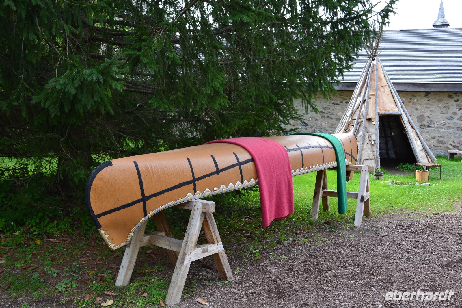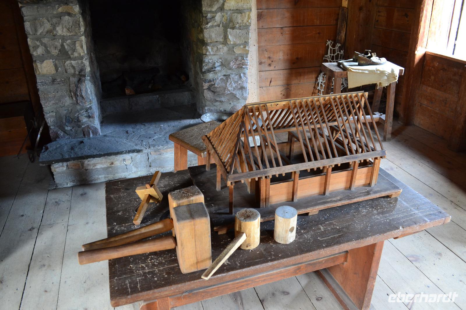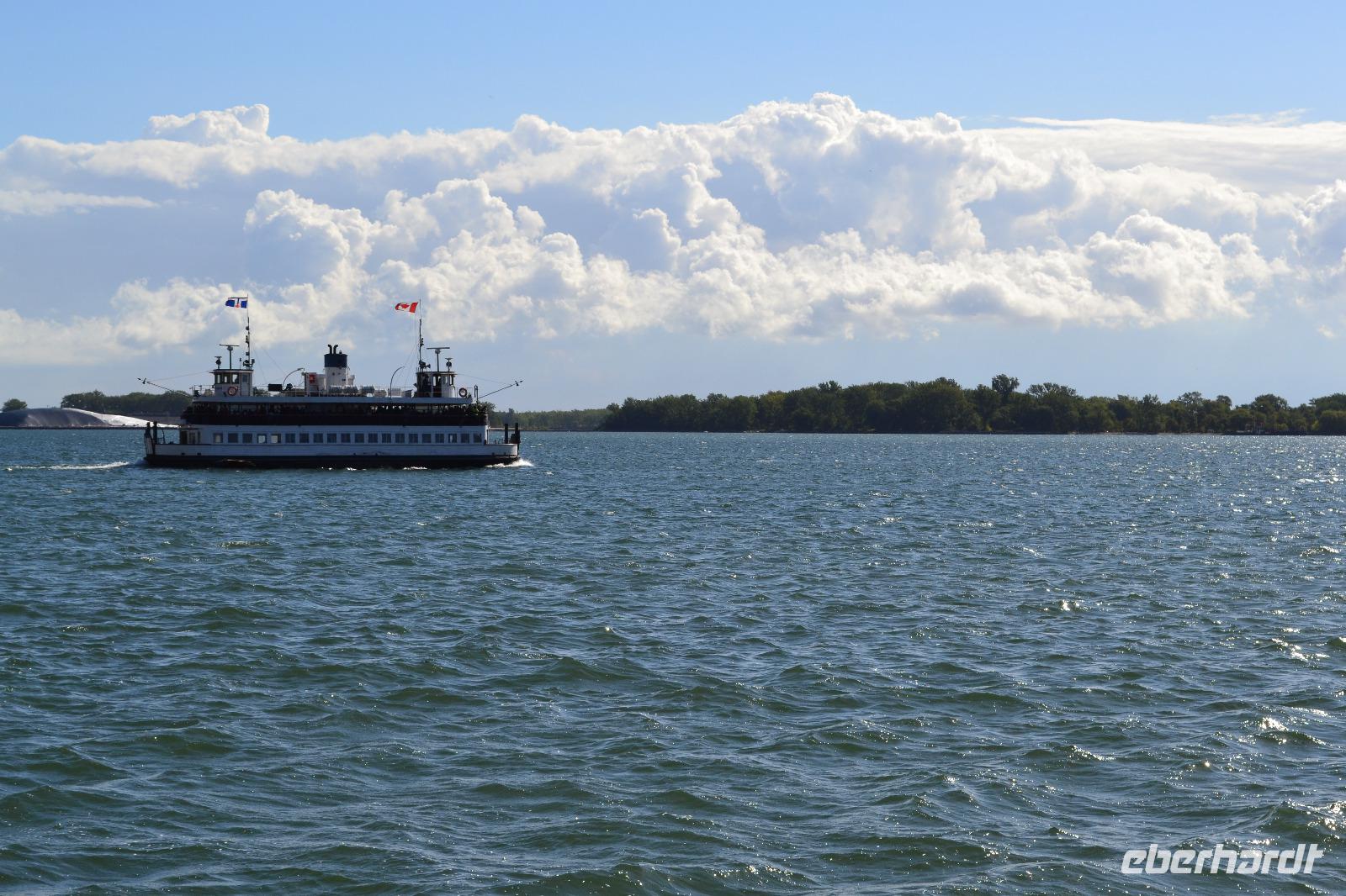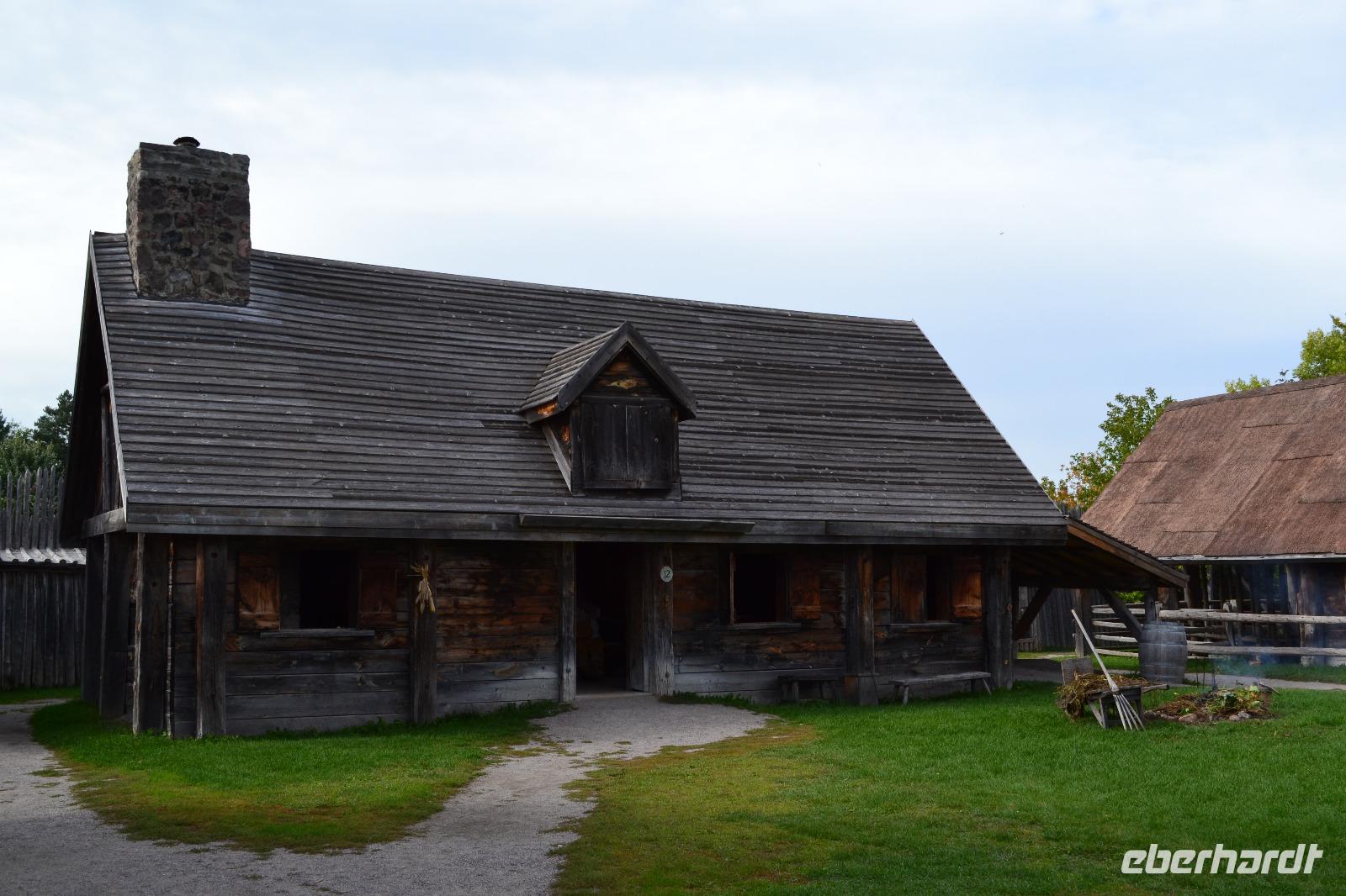 Da meine Gäste unbedingt mal so richtig nassgespritzt werden wollen, fahren wir am heutigen Morgen mit dem Boot direkt an die Niagarafälle heran. In rote Regencapes eingewickelt sehen wir aus wie die sieben Zwerge. Mir reicht allerdings eine Dusche am Tag und so verstecke ich mich hinter der Glasscheibe auf dem unteren Deck. So ist wenigstens die Kamera geschützt. Als erstes fahren wir an die amerikanischen Wasserfälle heran um eine kleine Kostprobe zu erhalten. Dann geht es in Richtung Horseshoe Falls. Das Tosen der Wassermassen wird so laut, dass ich kein Wort mehr verstehen kann. Man sieht nur noch eine weiße Wand aus Gischt. Als wir zur Anlegestelle zurückfahren, sehen wir einen wunderschönen Regenbogen. Für einen kurzen Photostopp fahren wir noch einmal mit dem Bus zu den kanadischen Fällen hinauf, und kurz nach 11 Uhr verlassen wir Niagara Falls und fahren wieder am Ufer des Lake Ontario entlang Richtung Toronto. Gern würde ich noch ein paar Tage hier verbringen und mit meinen Gästen in das bunte multikulturelle Leben dieser pulsierenden Stadt eintauchen. Jedoch sieht das Programm vor, dass wir stattdessen nach Norden abbiegen. Im Museumsdorf Sainte-Marie among the Hurons erhalten wir zunächst ein reichhaltiges Mittagessen, bevor wir eine Videopräsentation anschauen und dann durch die Anlage geführt werden. 1639 wurde von französischen Jesuiten an dieser Stelle eine Mission gegründet um das Hinterland zu erschließen und die Seelen der ortsansässigen Wendat-Indianer zu retten. Doch harte Winter und Konflikte mit den Irokesen setzten den Bewohnern schwer zu. Als der Konflikt mit den Irokesen eskalierte, musste die Mission schließlich nur zehn Jahre später wieder aufgegeben werden. Nachdem wir einen sehr anschaulichen Eindruck in das beschwerliche Leben der ersten Europäer in Kanada erhalten haben, setzen wir unsere Fahrt fort. Gegen 18 Uhr erreichen wir das Hidden Valley Resort kurz hinter Huntsville, unweit des Algonquin Provincial Parks. Das gemütliche Hotel verfügt über einen Swimmingpool, eine Sauna und ein sehr gutes Restaurant. Wir sind uns alle einig, dass wir es hier die nächsten beiden Nächte aushalten werden.